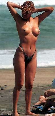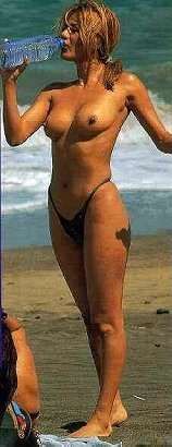 La ragazza a seno nudo che beve acqua sulla spiaggia è Ivone Reyes (foto 15-19)