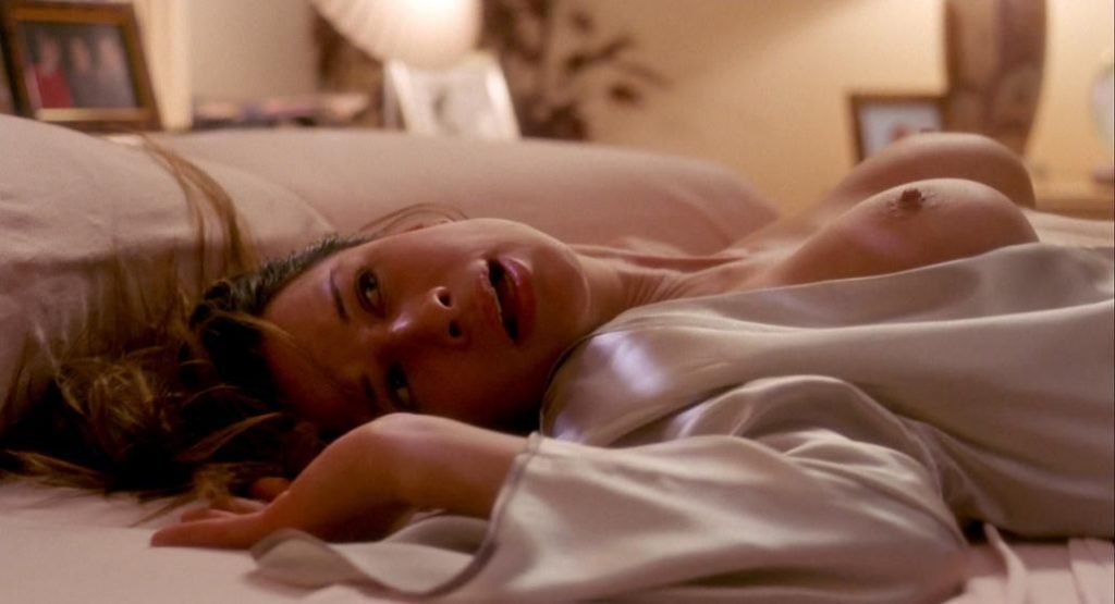 And finally, after all the intense sex video, we have this fantastic Rhona Mitra’s naked in an extended masturbation scene from her best performing movie Hollow Man. Rhona Mitra is sitting down to brush her hair after a shower, her robe hanging open, showing exposed breasts. She then stands up, and an invisible man pushes her down on her bed and attacks her. Next, we see her bare breasts again on her back. Lastly, we see Rhona curled up on the bed afterward, her robe around her waist.