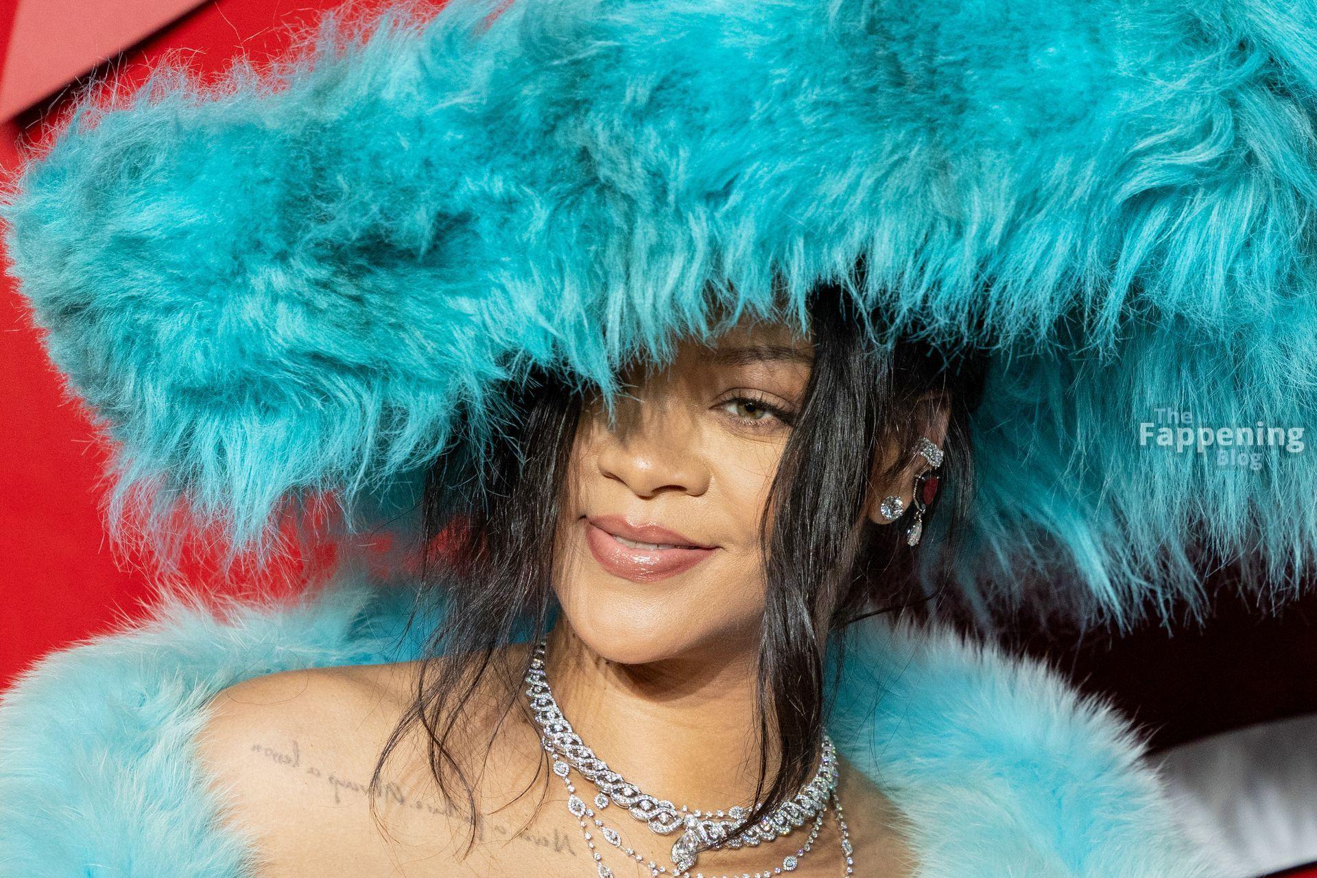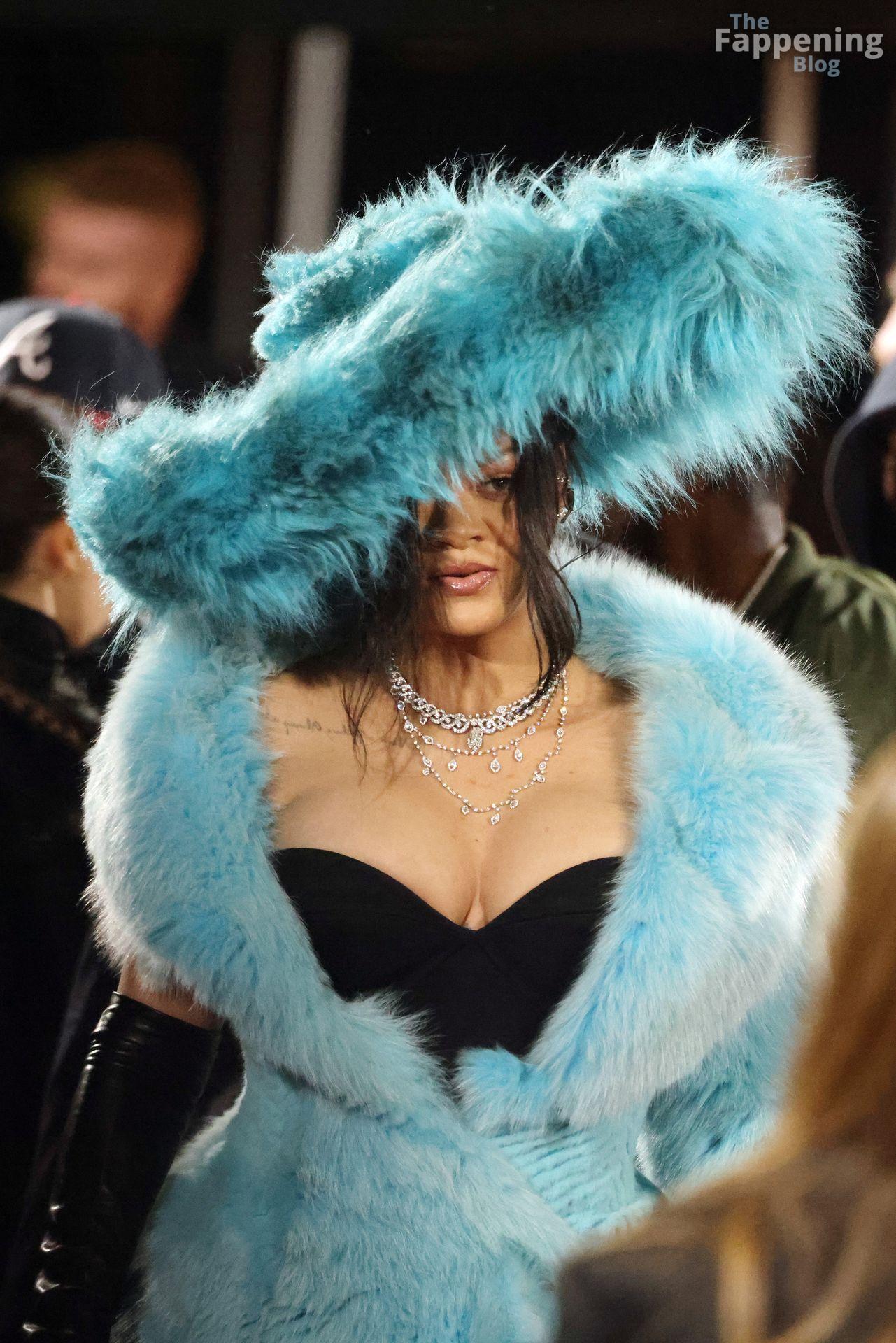 I fan di Rihanna la stanno acclamando come una ‘Cookie Monster’ dell’alta moda dopo che è apparsa ai Fashion Awards 2024 con un cappotto soffice azzurro pallido e un grande cappello.