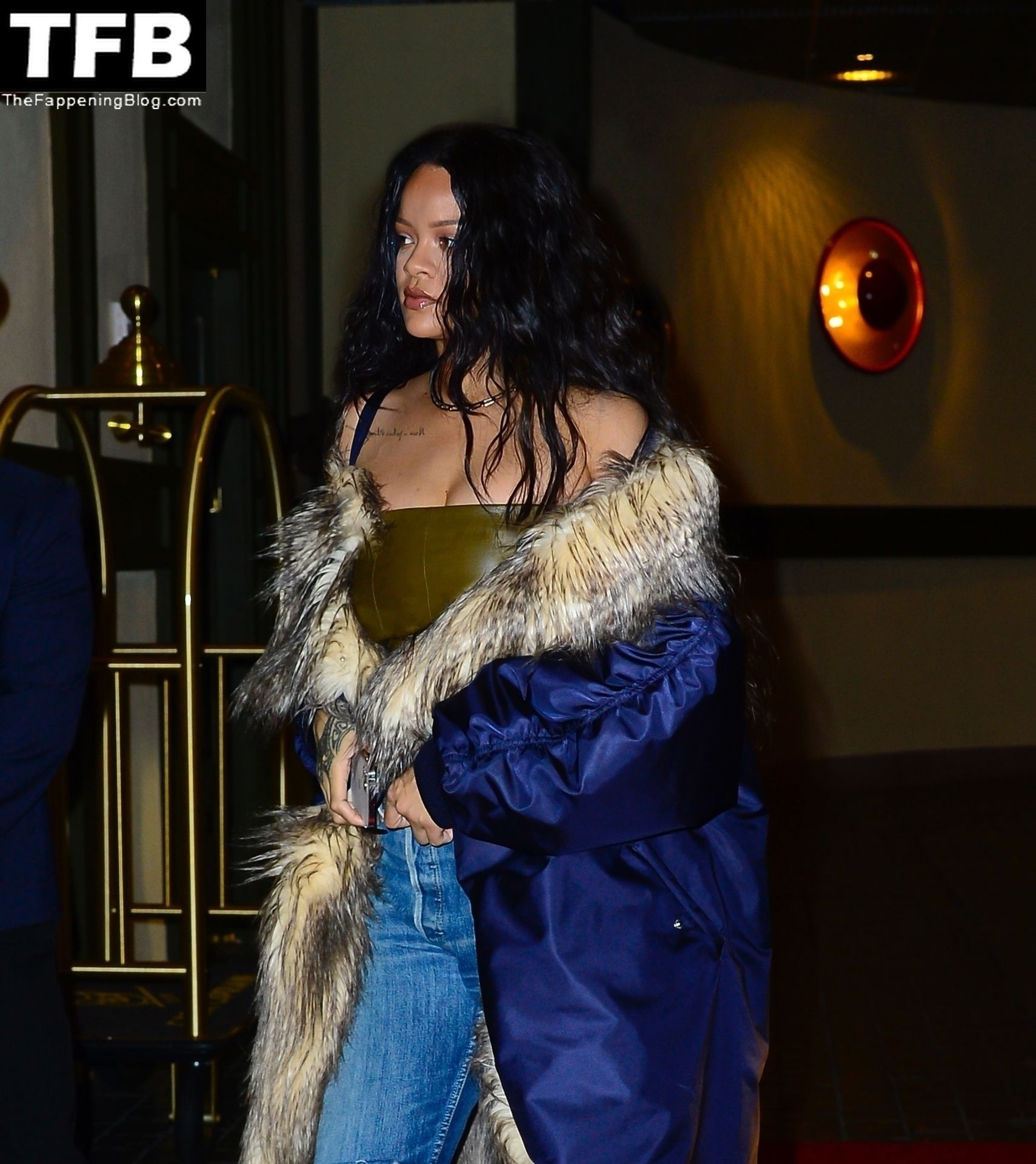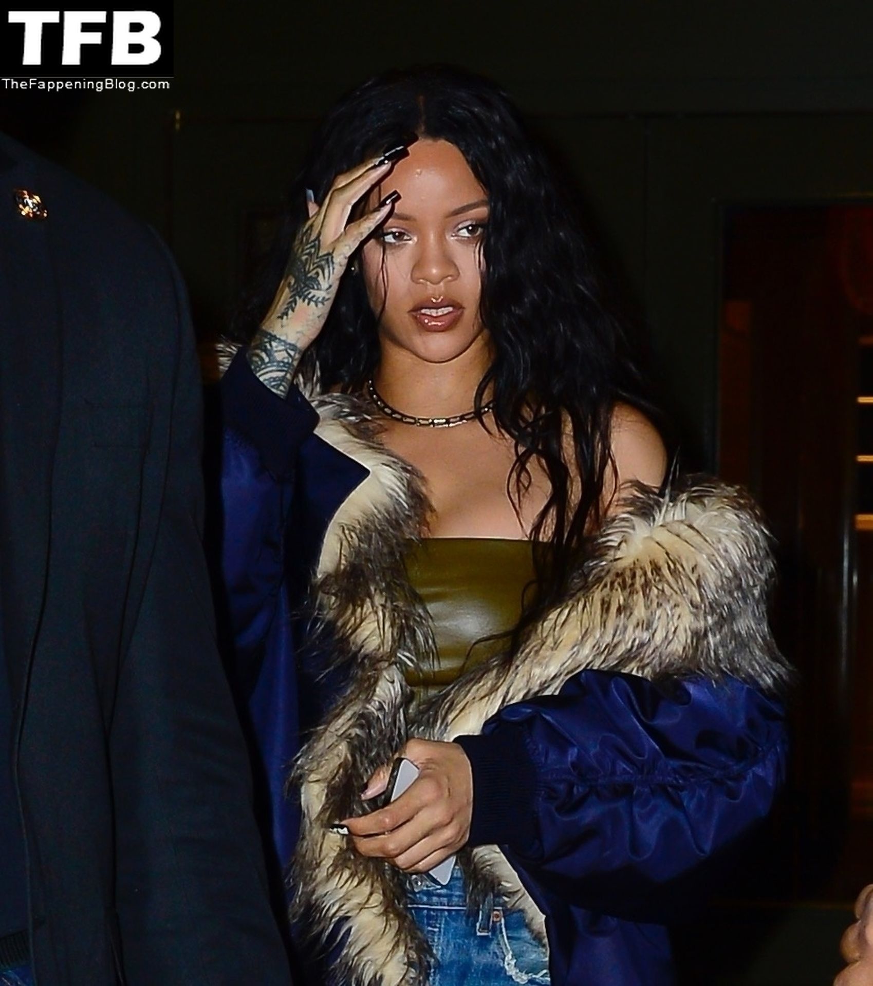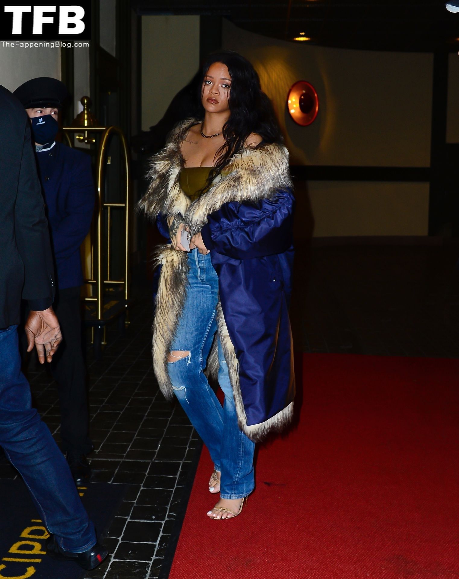 La star del Fappening Rihanna ruba la scena indossando un cappotto d’impatto abbinato a jeans mentre esce per cena a NYC prima di volare a Los Angeles, 11/04/2021.