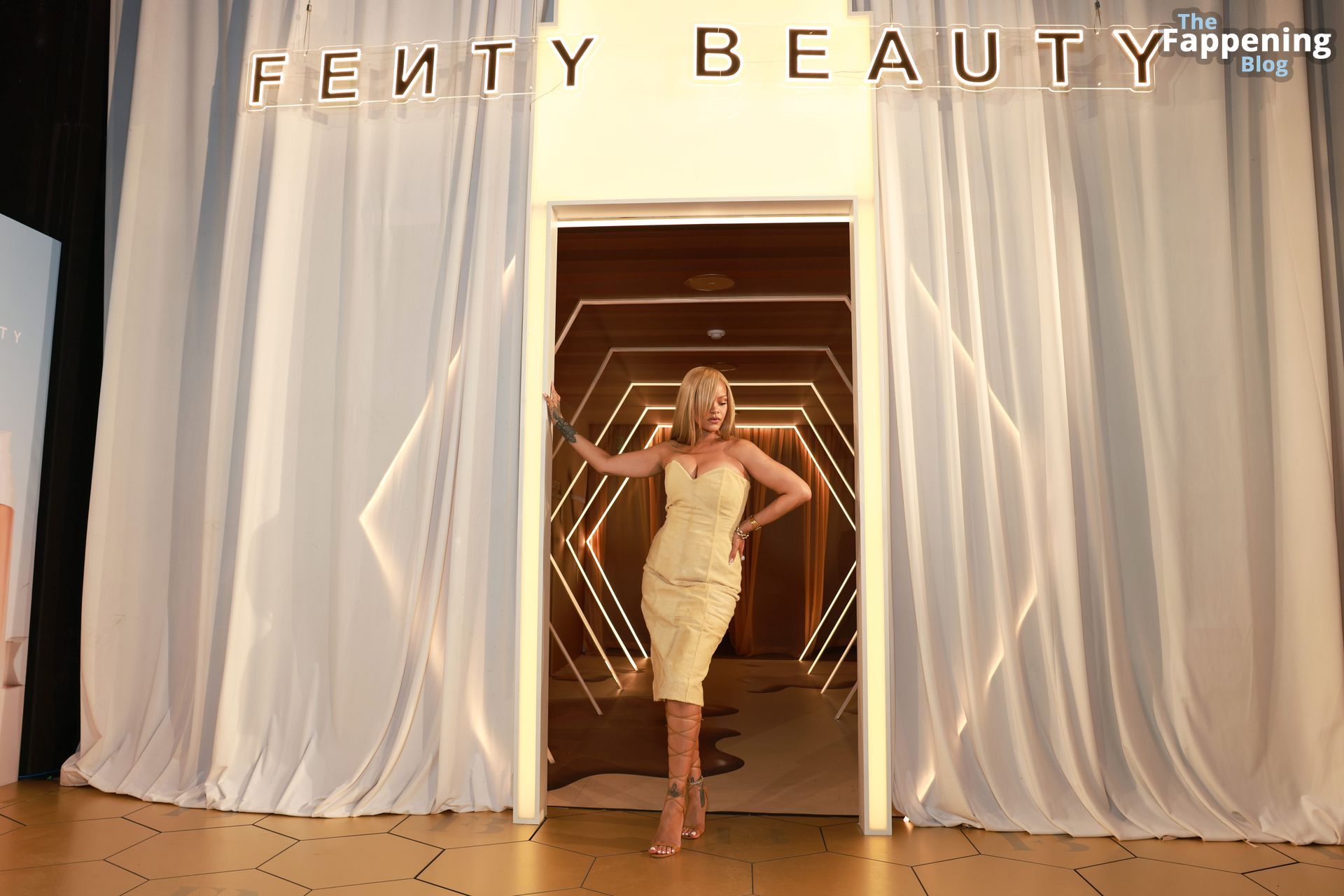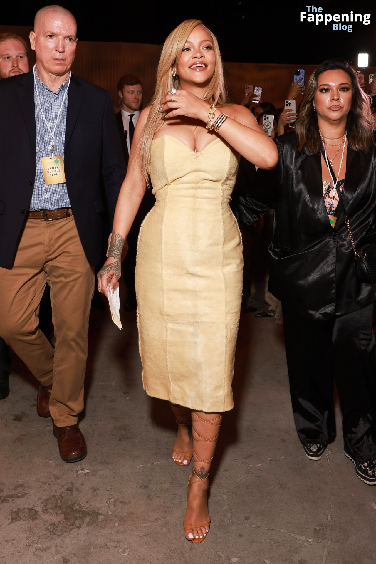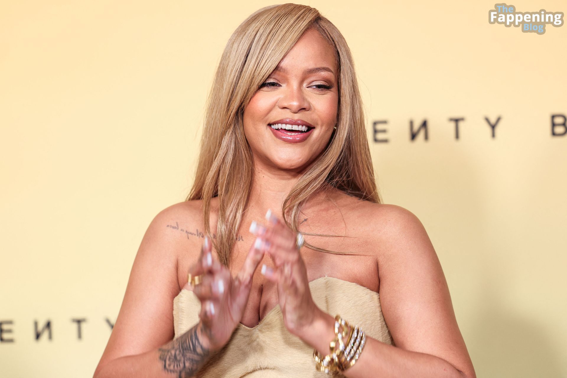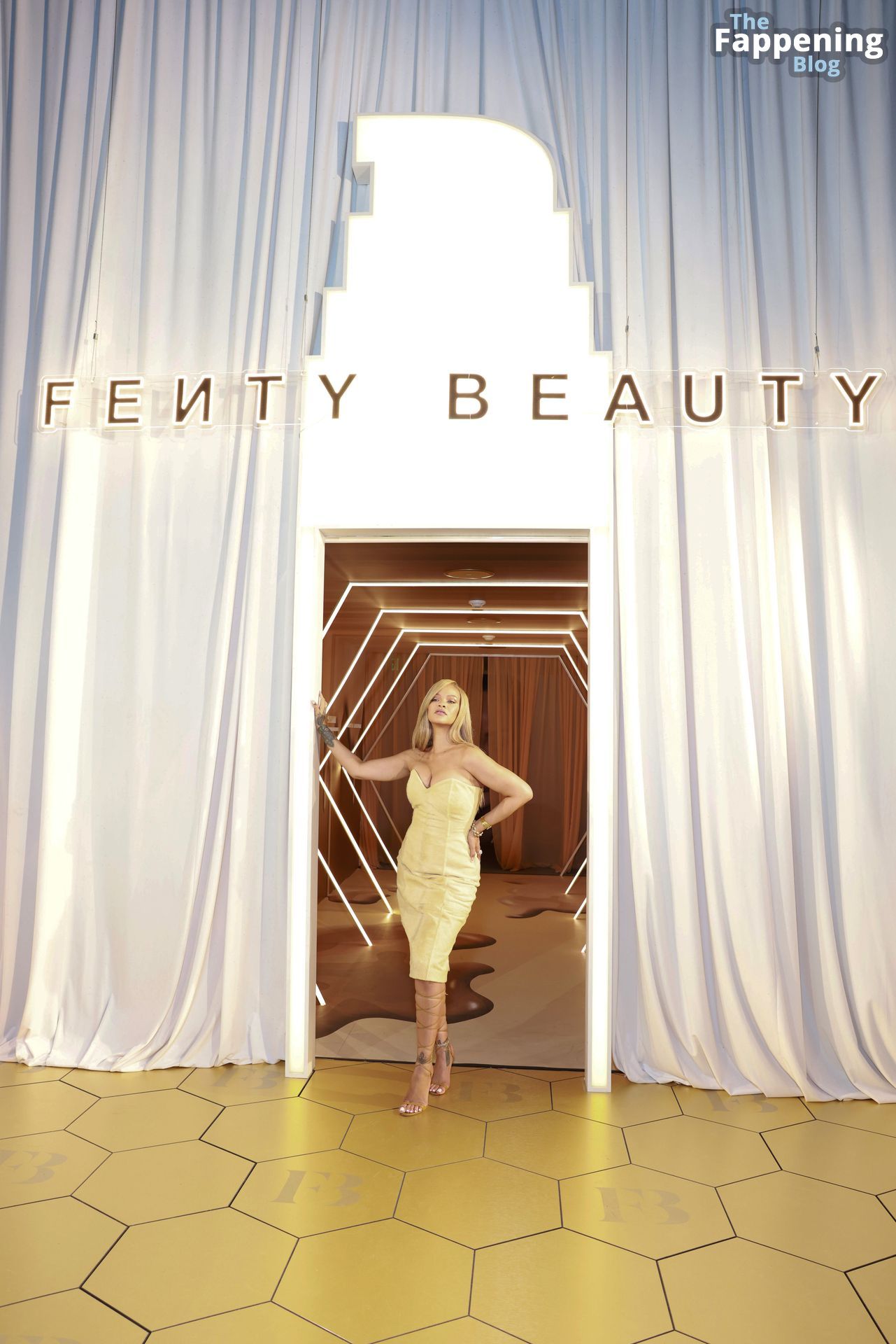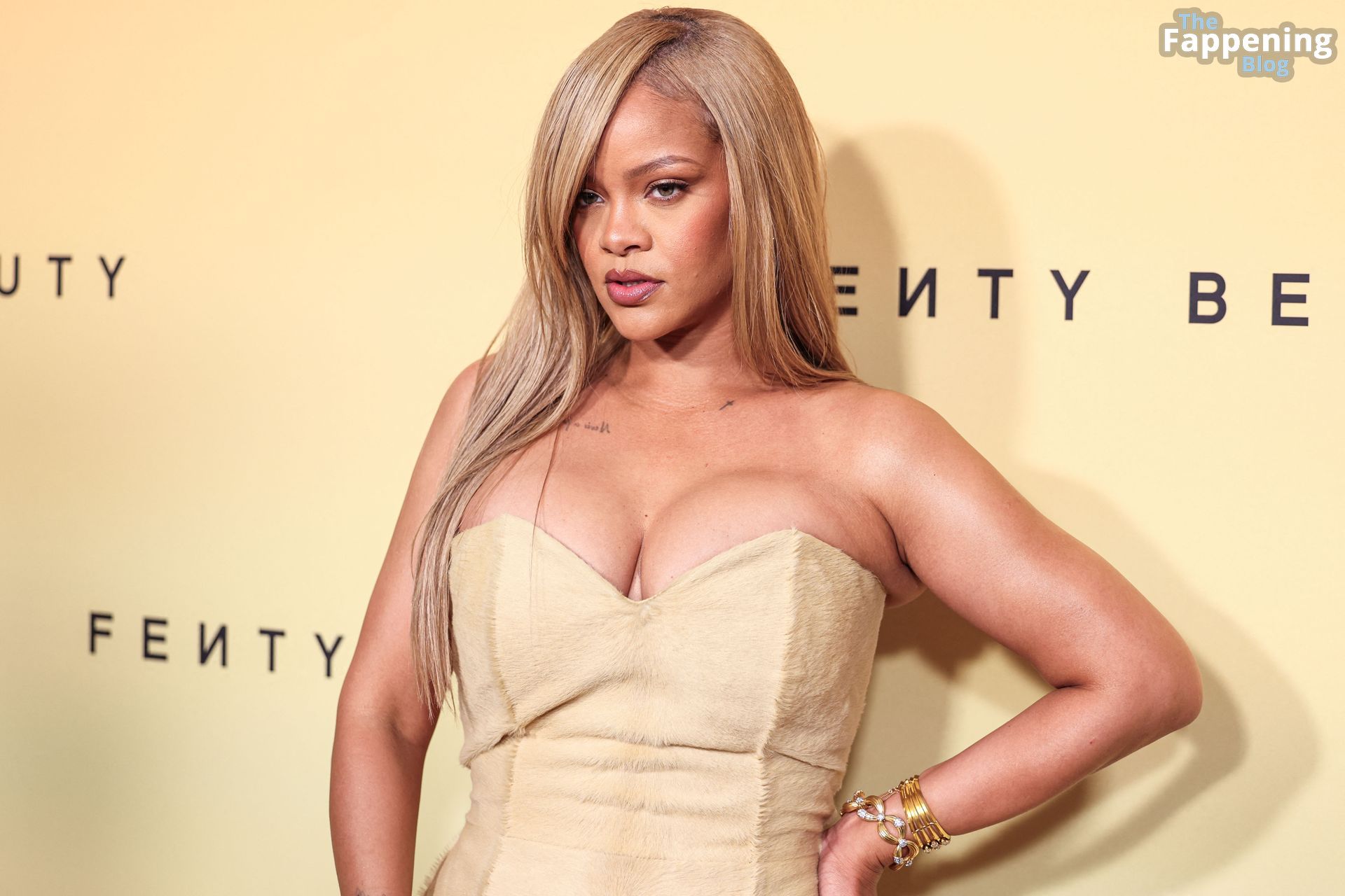 La star barbadiana dai mille talenti, Rihanna (alias Robyn Rihanna Fenty), si è presentata al lancio del Fenty Beauty Soft’Lit Foundation presso i 7th Street Studios in California il 26 aprile 2024, sfoggiando un outfit sexy.
