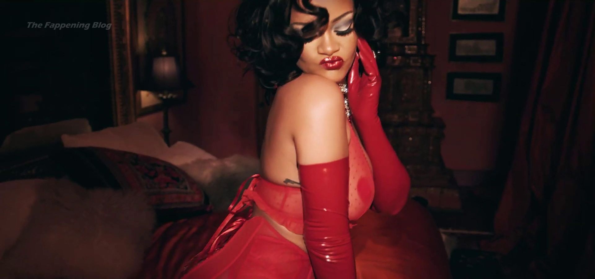 Rihanna posa con una campagna glamour per la sua collezione di San Valentino 2021 del brand Savage x Fenty. La designer di lingerie mette in mostra le sue curve con look rossi infuocati della collezione di gennaio.