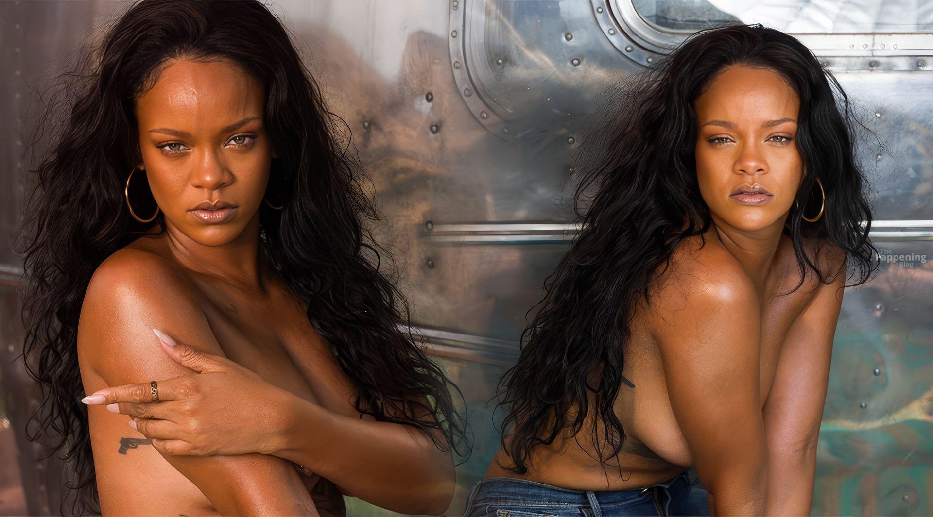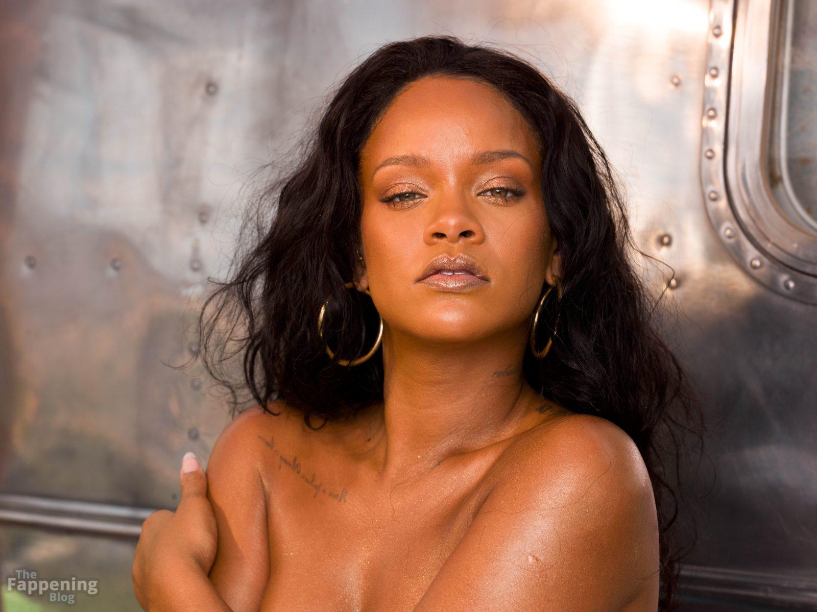 La star del Fappening Rihanna posa quasi nuda e mostra i suoi seni nudi in questi scatti hot per Fenty Beauty.