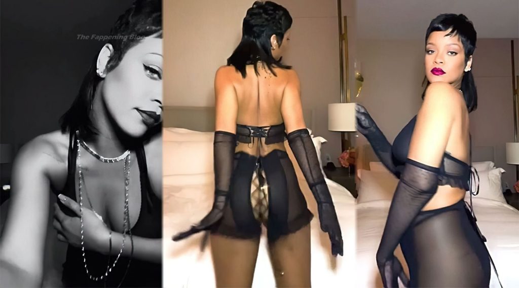 Cantante e The Fappening Rihanna mostra il suo corpo stupendo indossando lingerie erotica trasparente nel video Cupid Day Countdown per la collezione di San Valentino Savage X Fenty (2021).