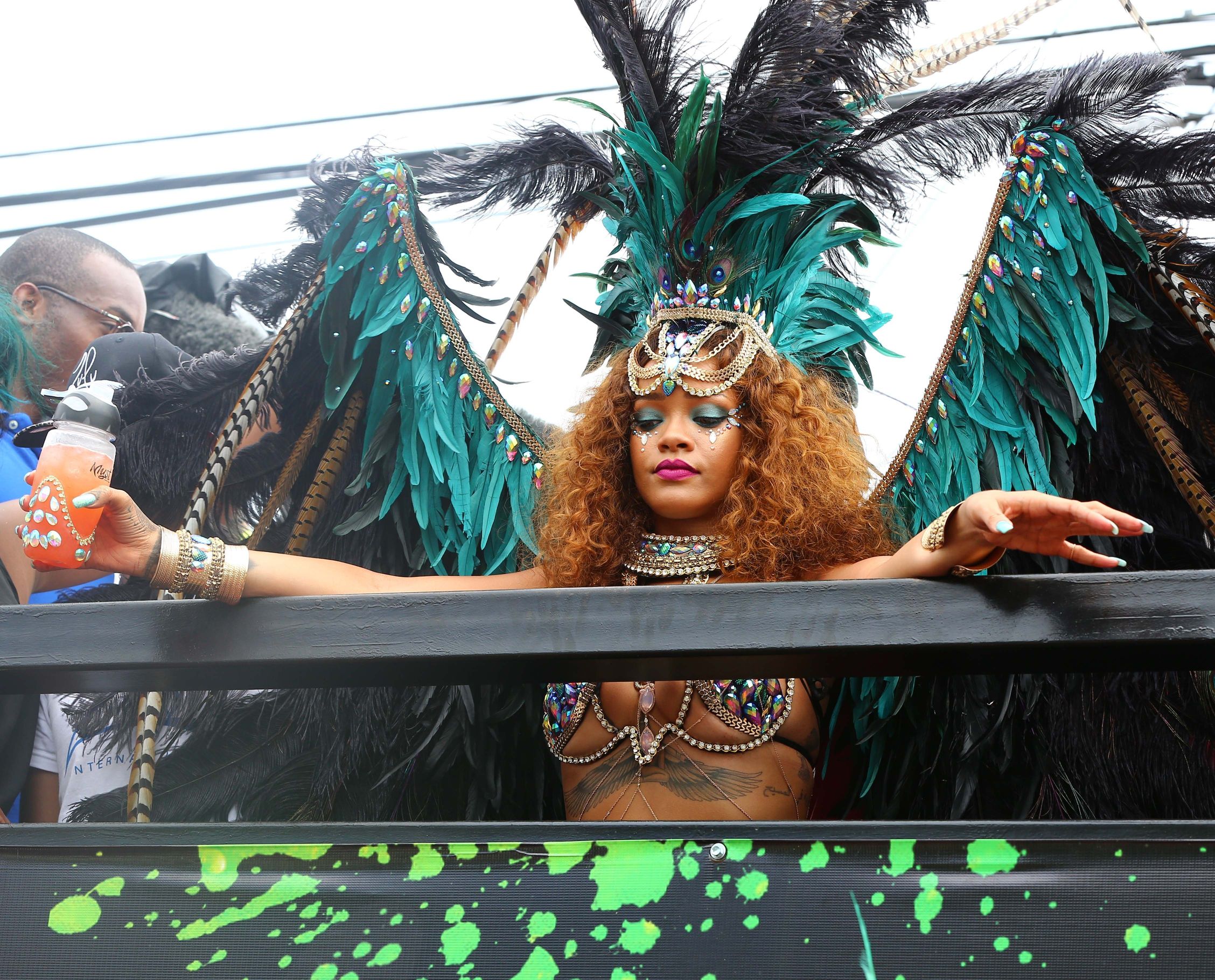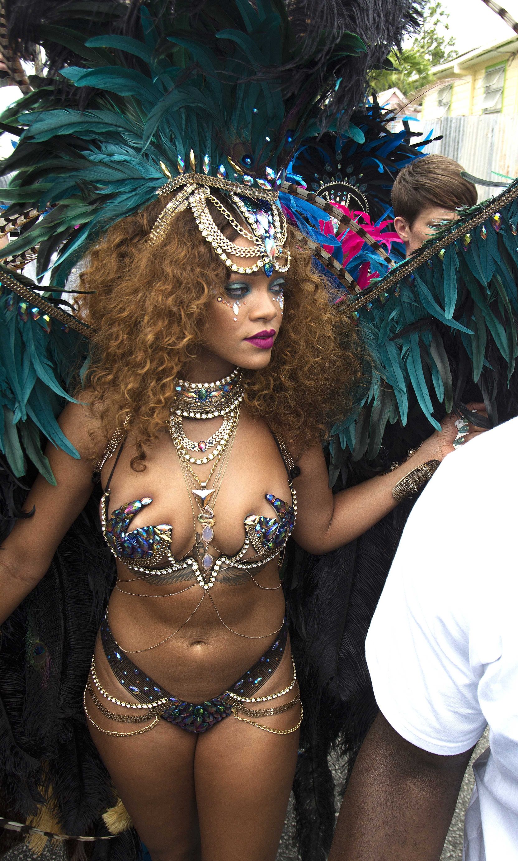 Nuove foto sexy di Rihanna al Kadooment Day a Barbados, 08/03/15. Costume fantastico… Rihanna è una cantante e stilista americana. Età 27