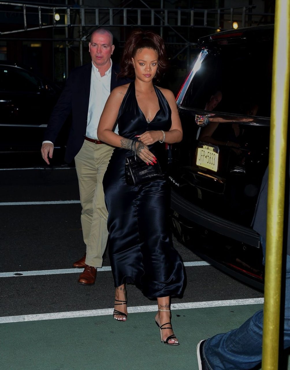 Singer Rihanna steps out in a silky black dress for a private party in New York, 06/11/2019.