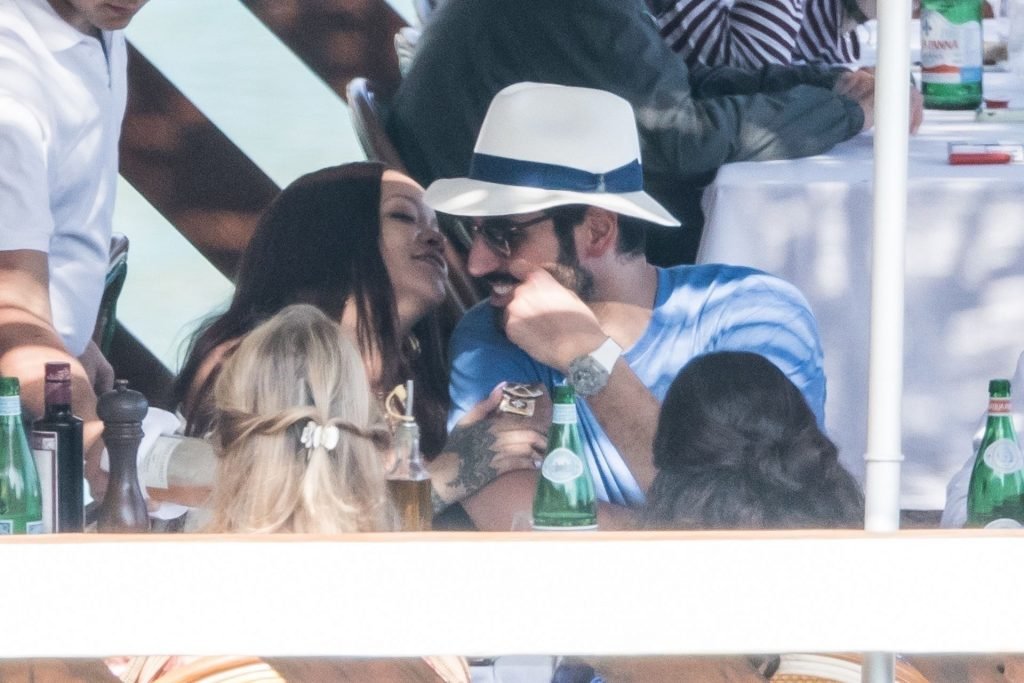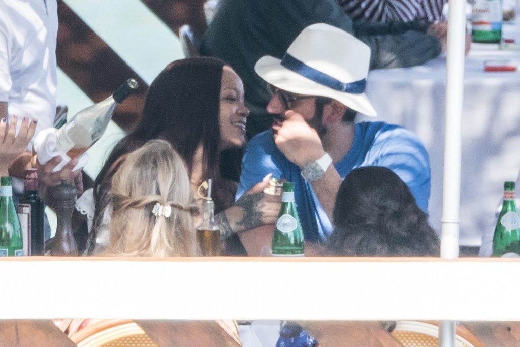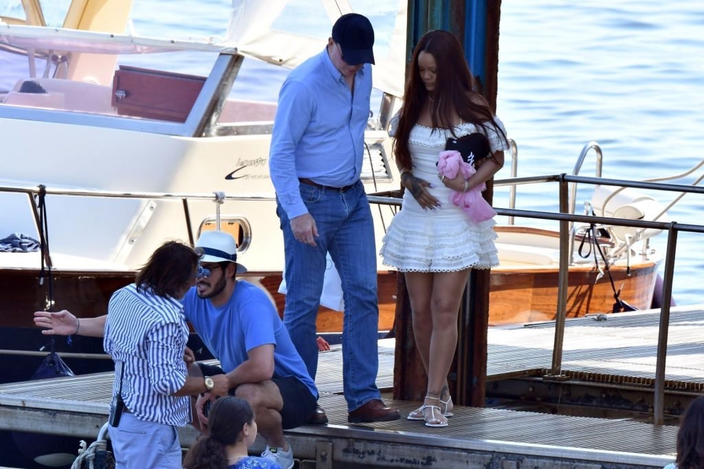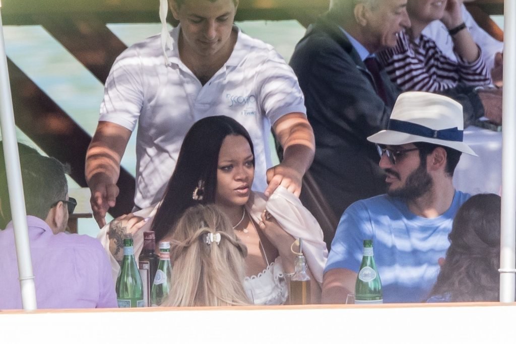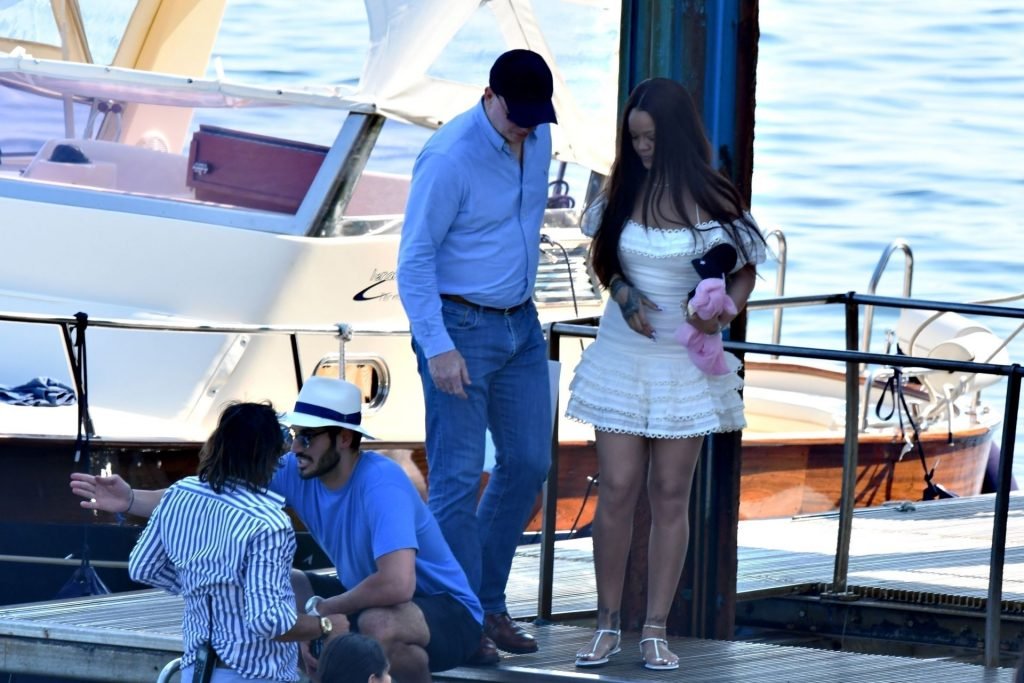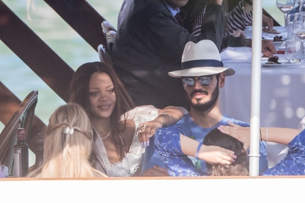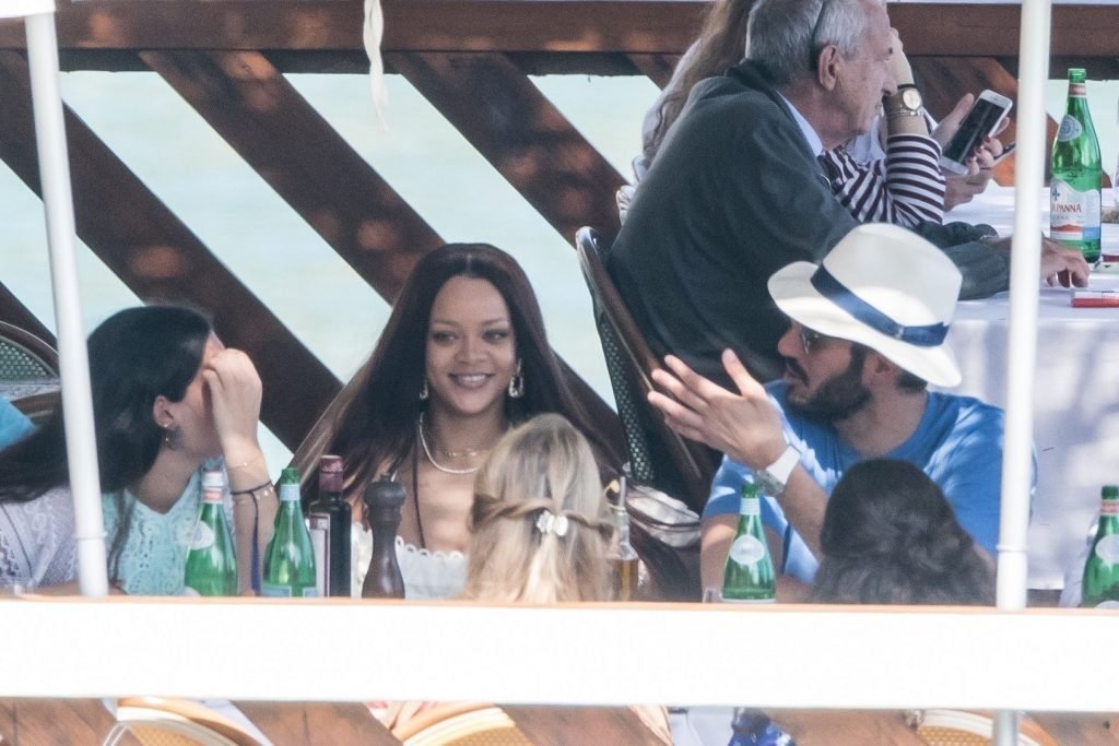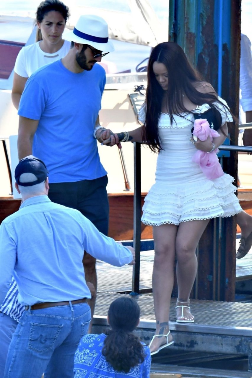 Rihanna e il suo fidanzato Hassan Jameel sono stati visti mostrare un’affettuosa e rara dimostrazione di affetto in pubblico mentre facevano un giro in barca e pranzavano insieme al “Lo Scoglio” a Nerano con un gruppo che si crede fosse la sua famiglia, 06/05/2019.