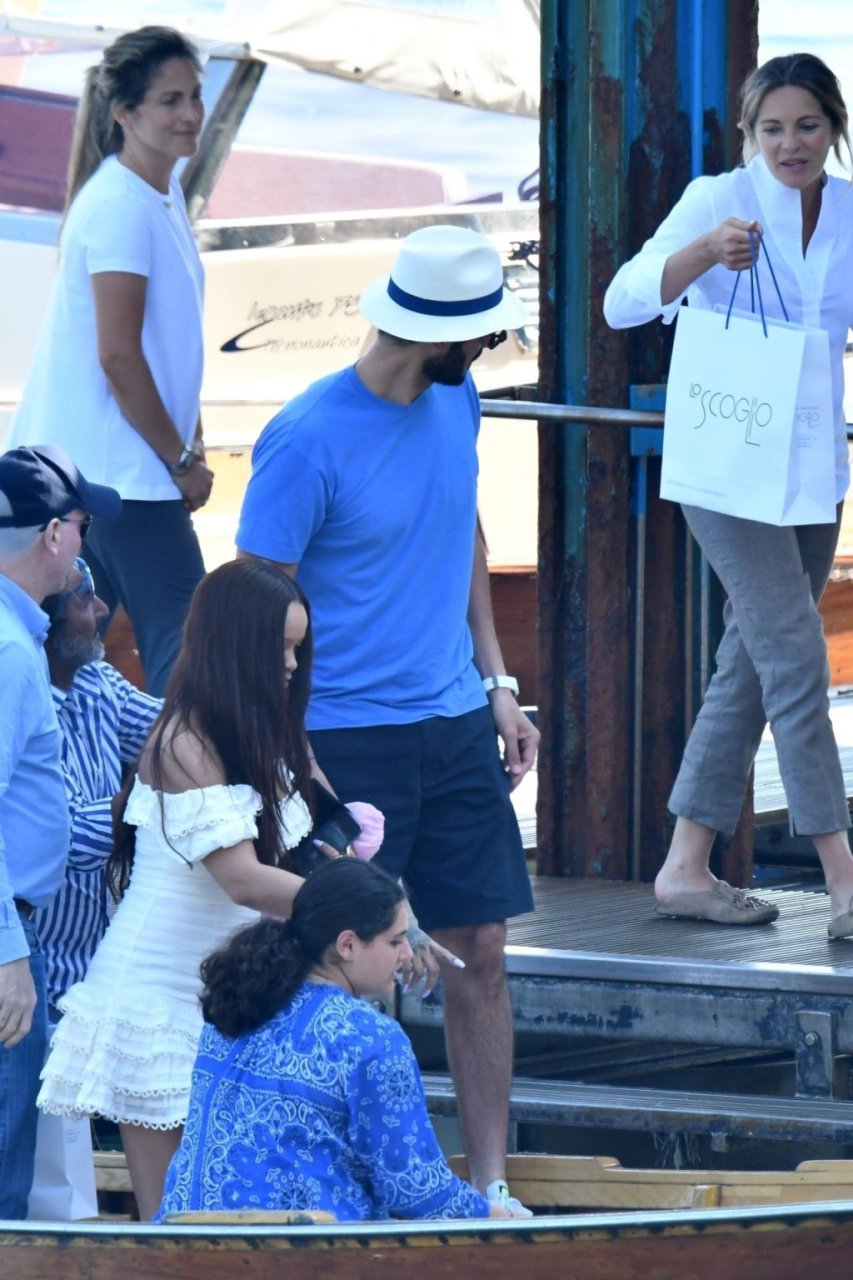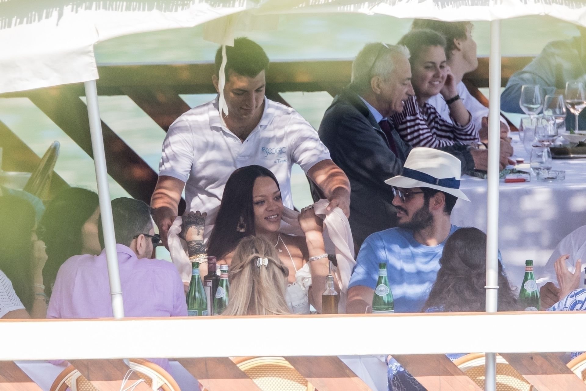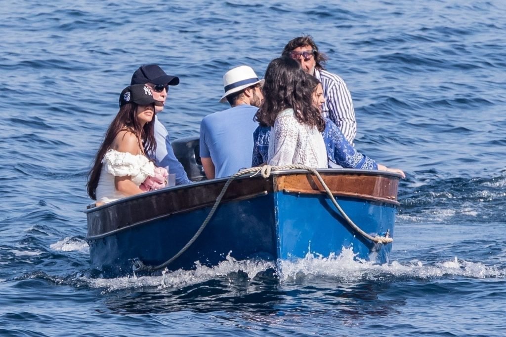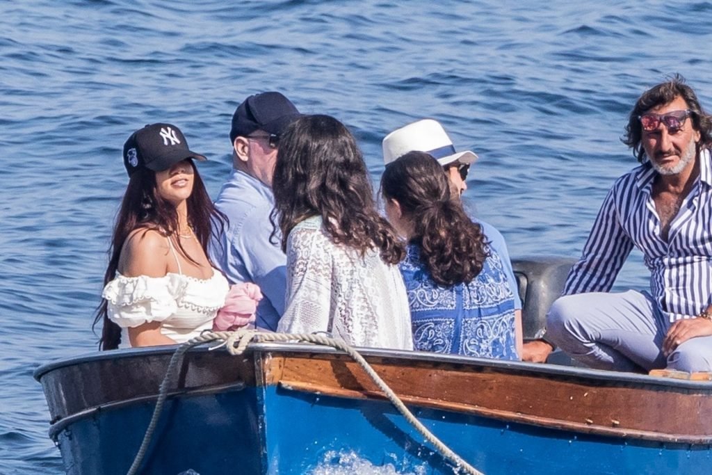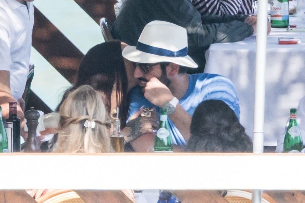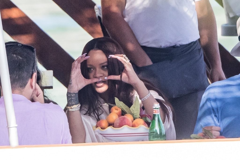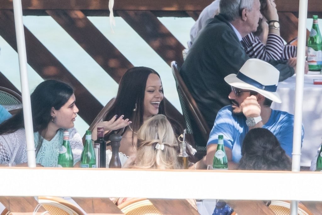 Rihanna e il suo fidanzato Hassan Jameel sono stati visti mostrare un’affettuosa e rara dimostrazione di affetto in pubblico mentre facevano un giro in barca e pranzavano insieme al “Lo Scoglio” a Nerano con un gruppo che si crede fosse la sua famiglia, 06/05/2019.