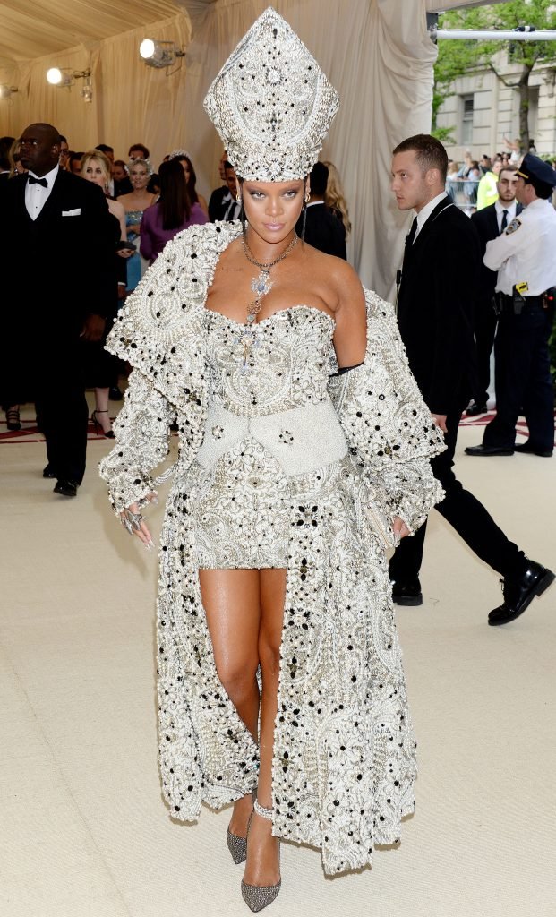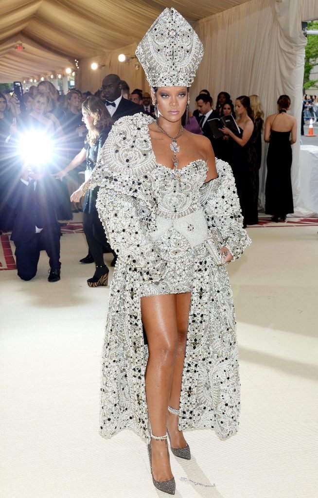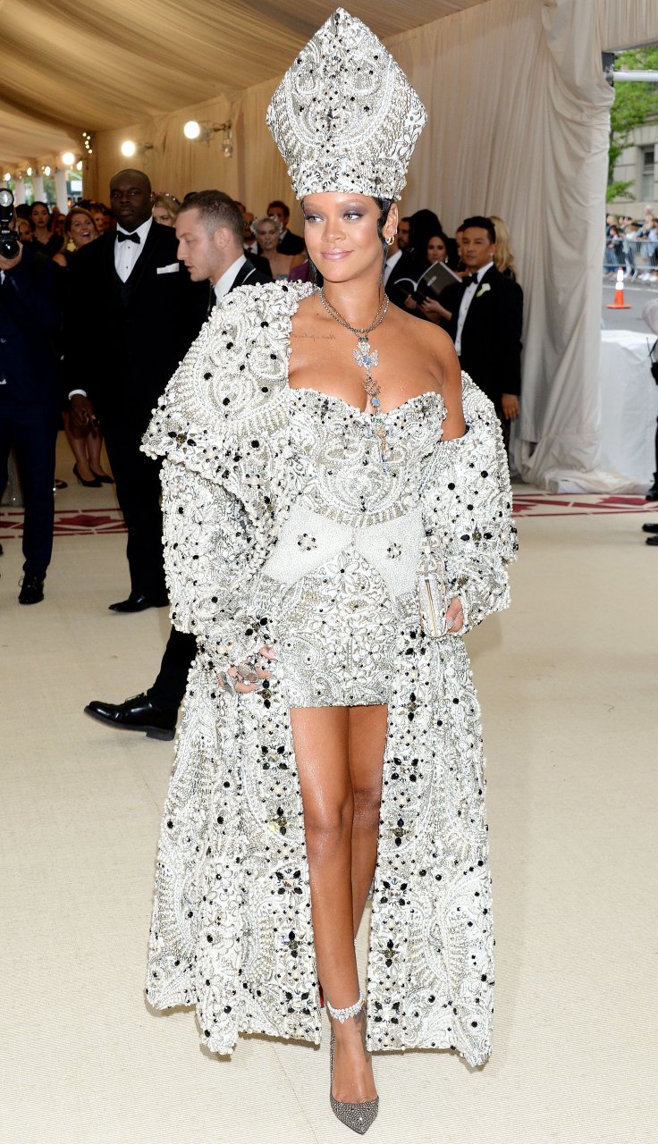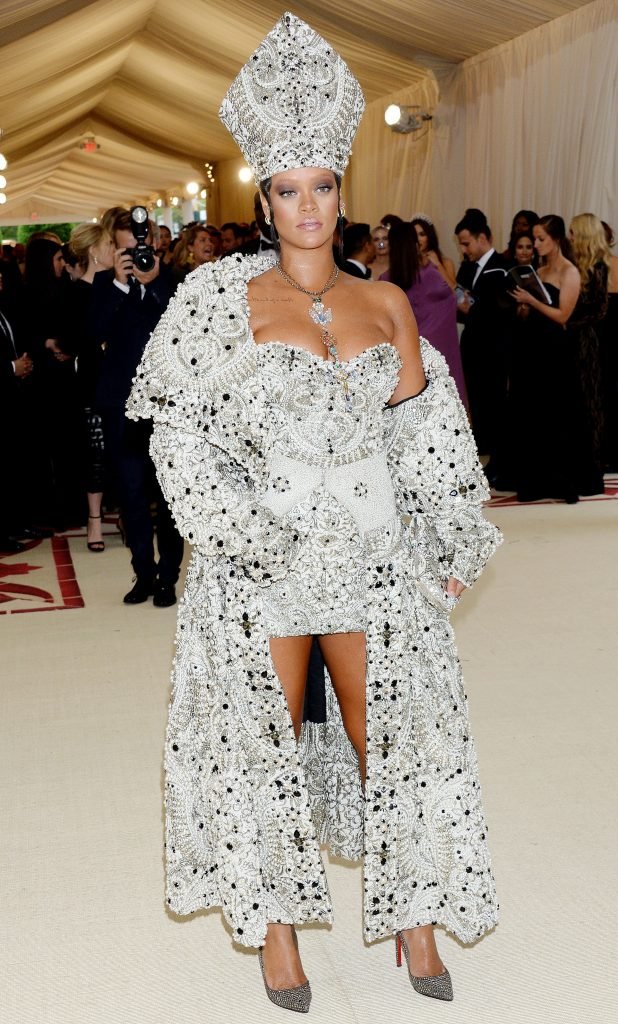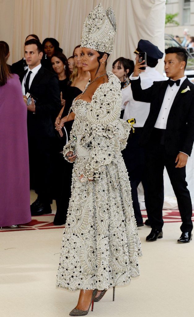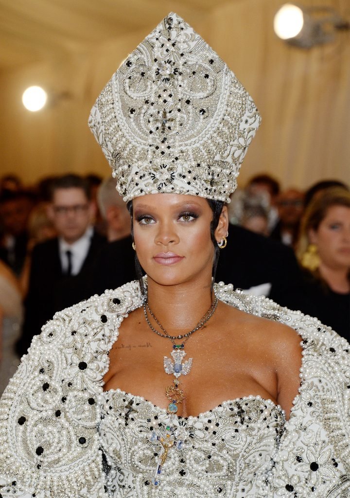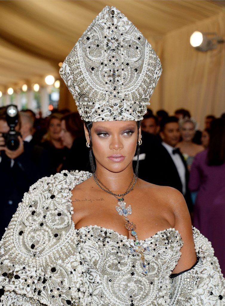 L’outfit di Rihanna è stato uno dei più discussi sui social network – la cantante trentenne è arrivata al Met Gala al Metropolitan Museum con l’abito del Papa. Sembra molto potente.