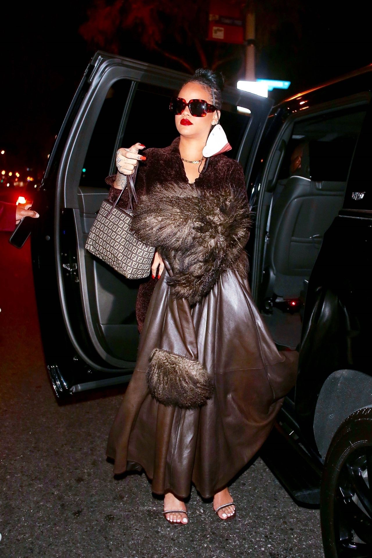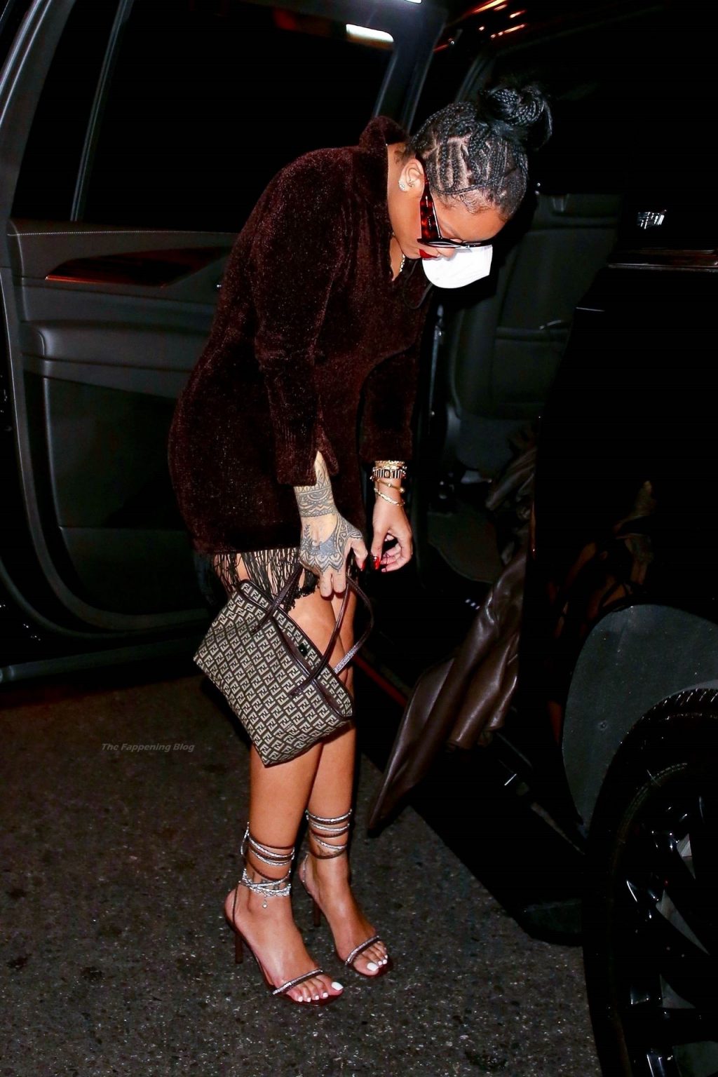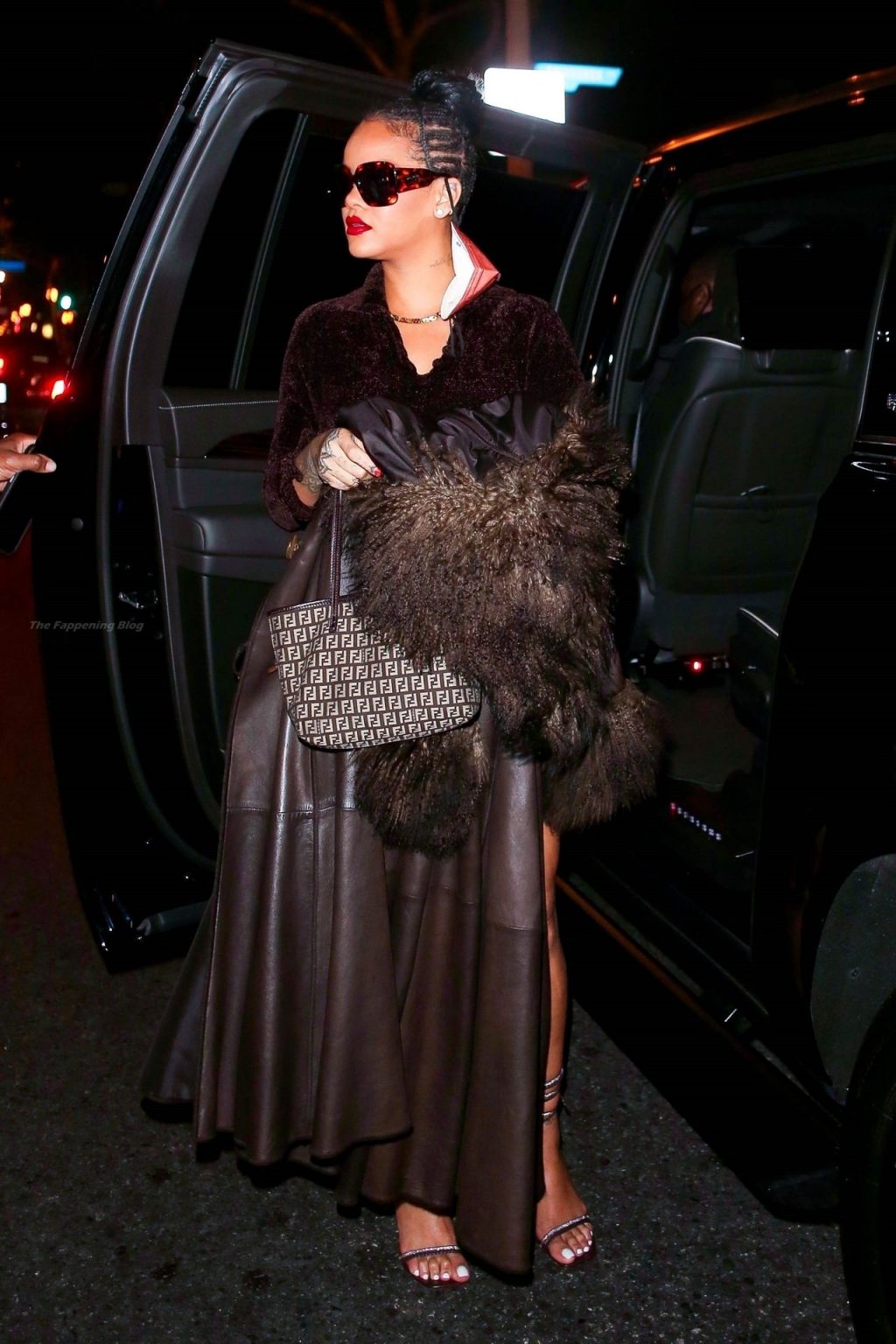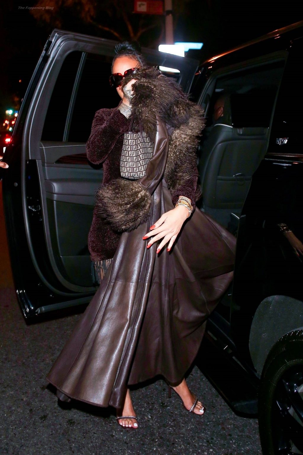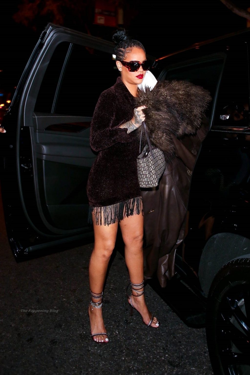 La star di The Fappening Rihanna mette in risalto le sue curve sinuose con un minidress mentre lascia una festa privata con A$AP Rocky.