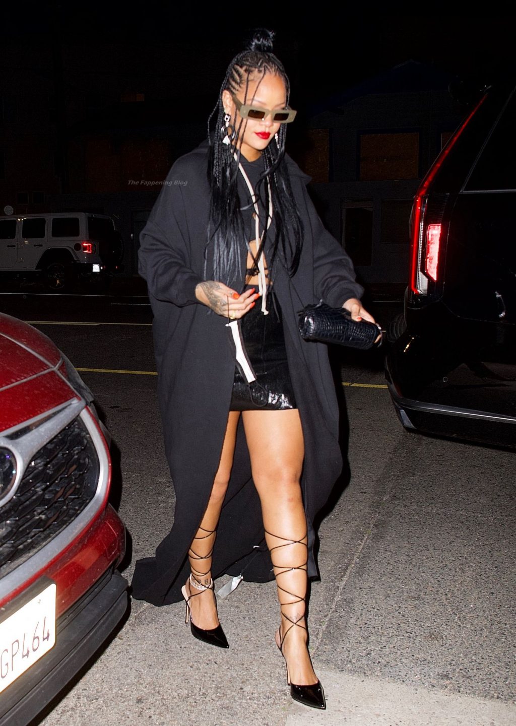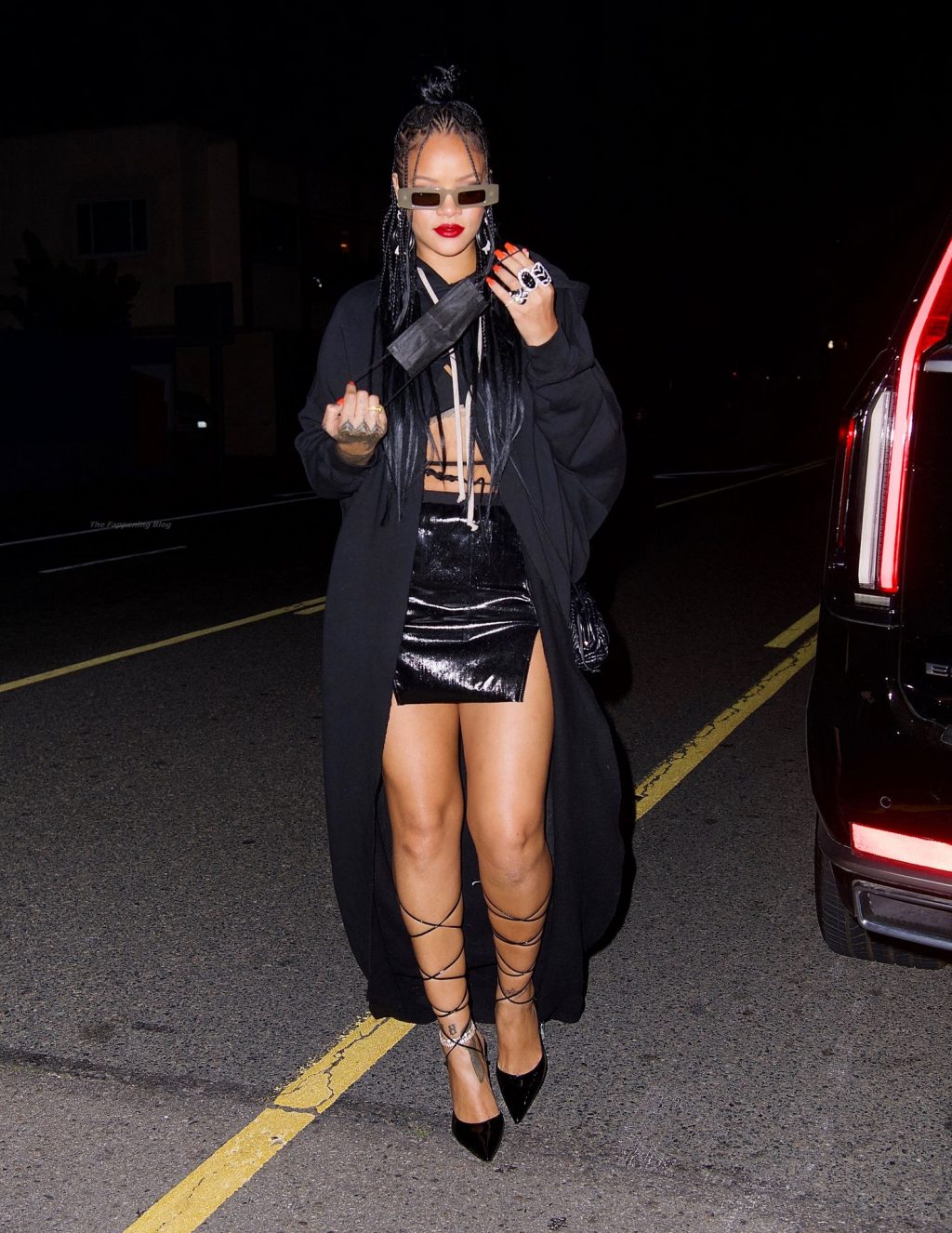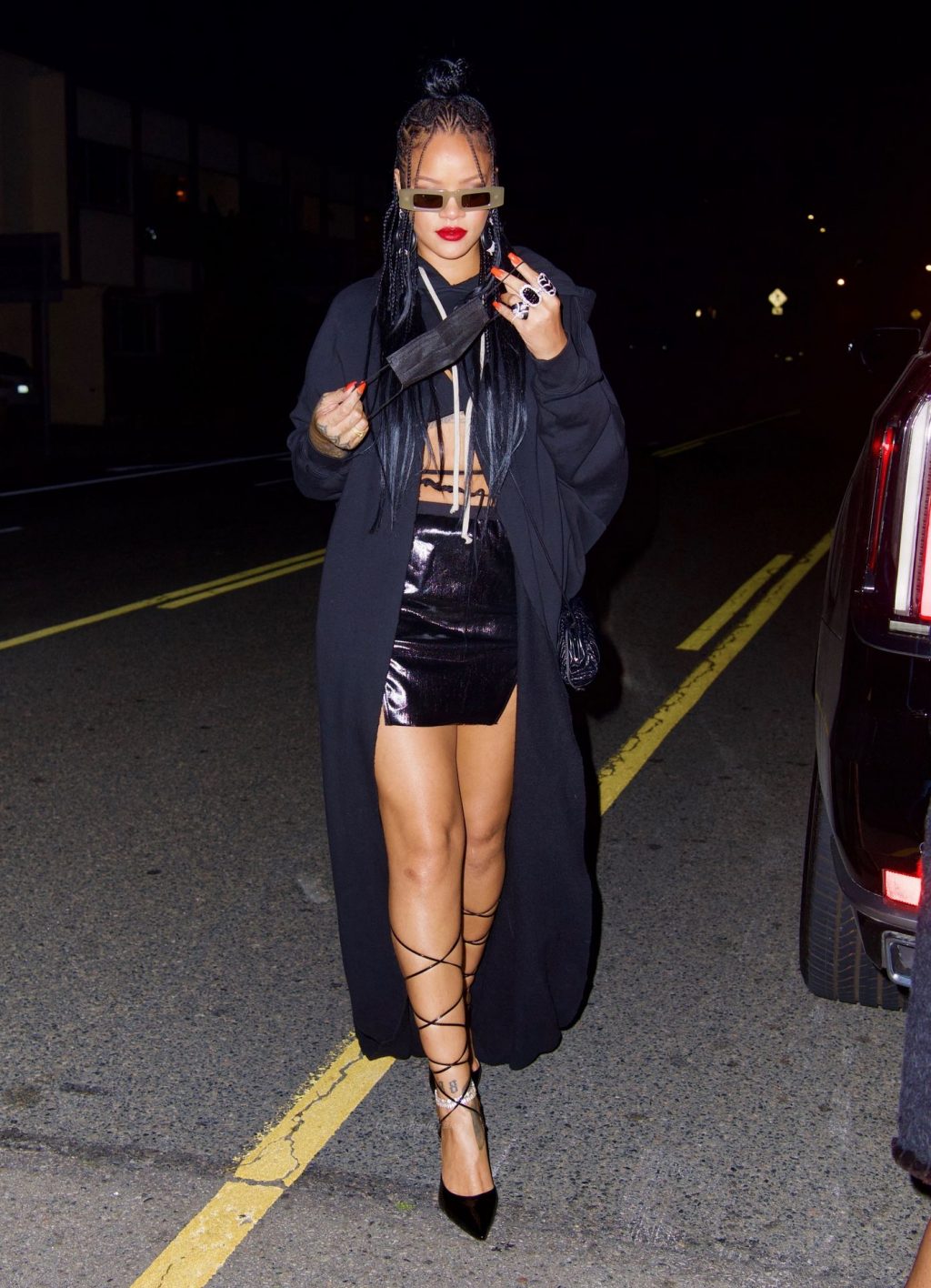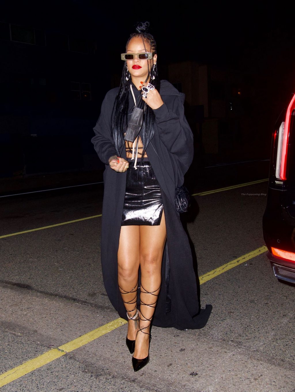 La star del Fappening Rihanna mostra le sue gambe in una mini gonna nera mentre si dirige a cena da Giorgio Baldi, 29/03/2021.