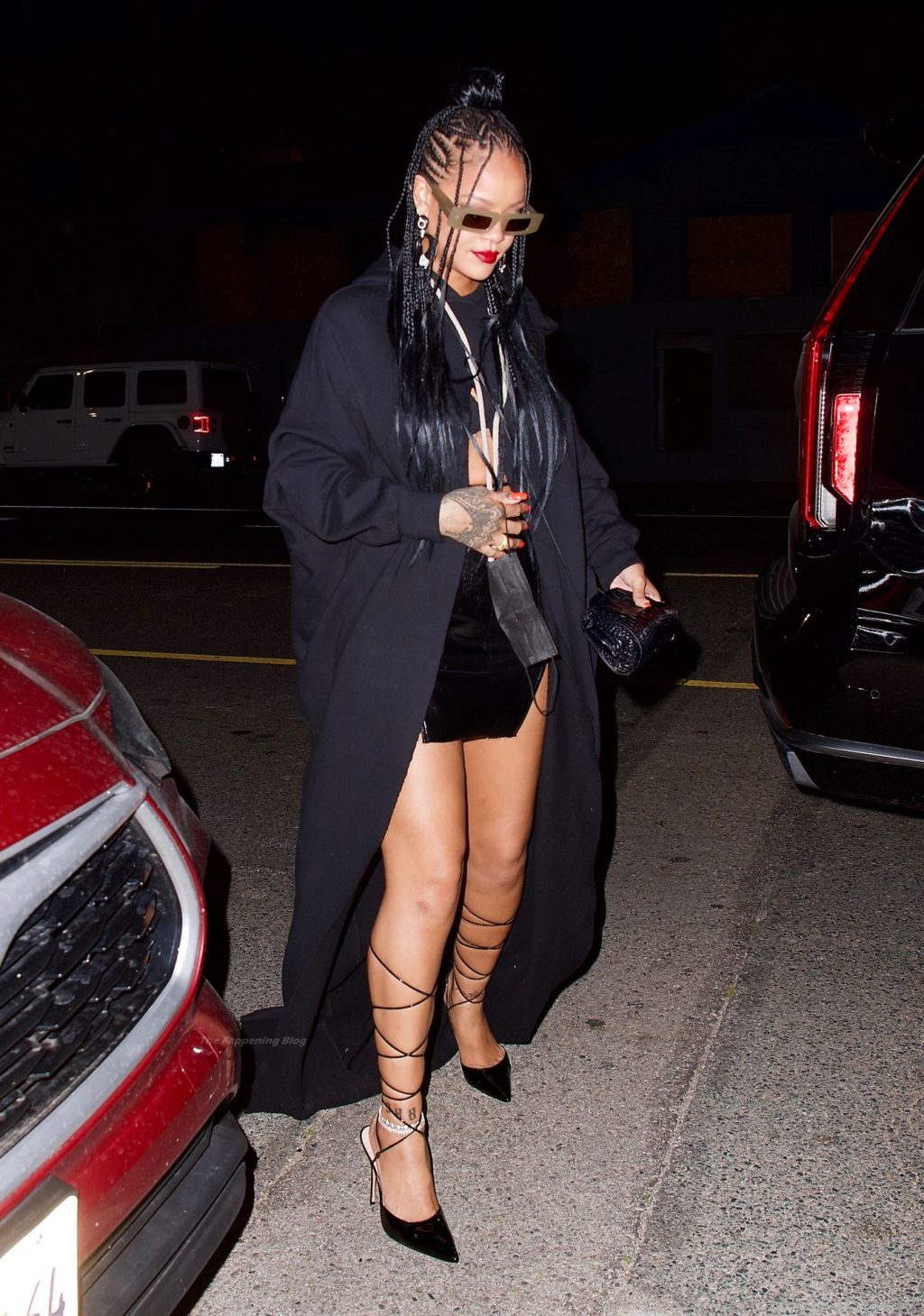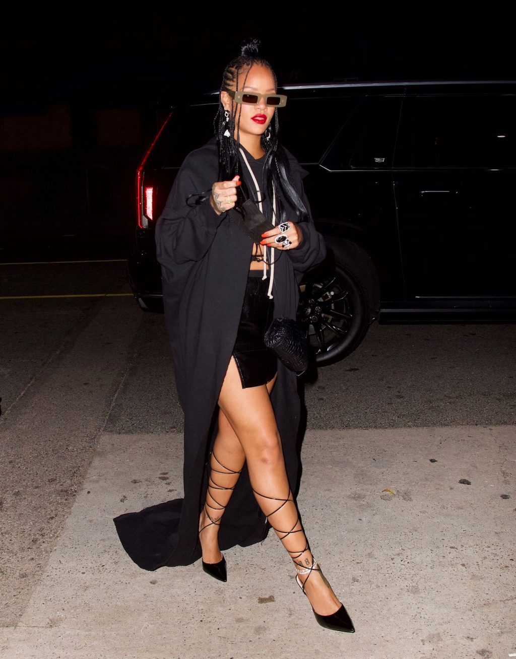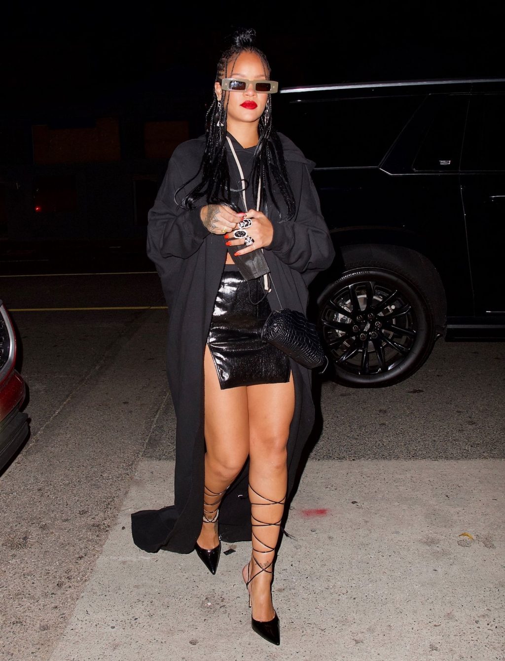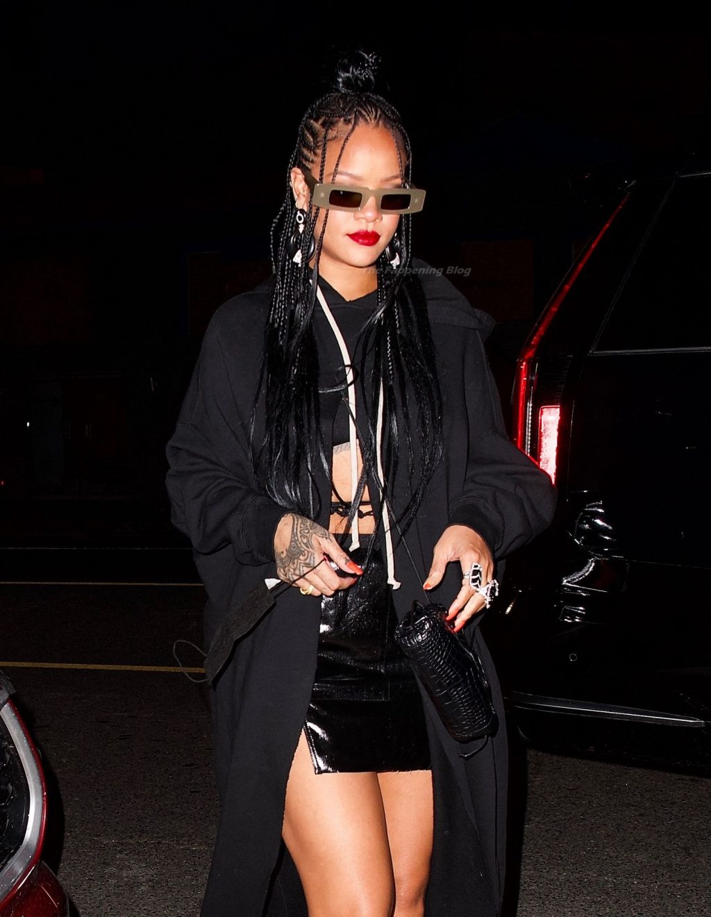 La star del Fappening Rihanna mostra le sue gambe in una mini gonna nera mentre si dirige a cena da Giorgio Baldi, 29/03/2021.