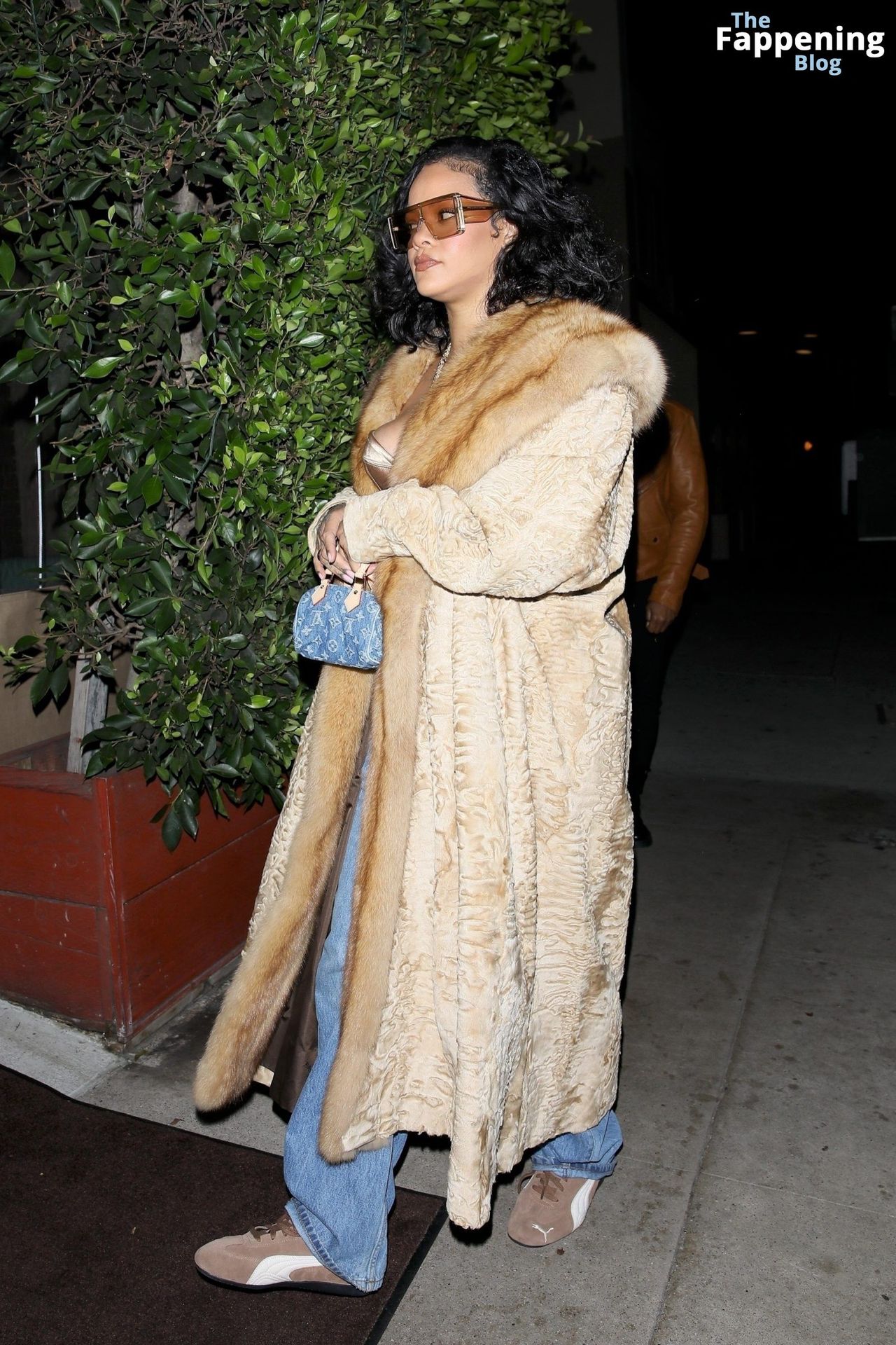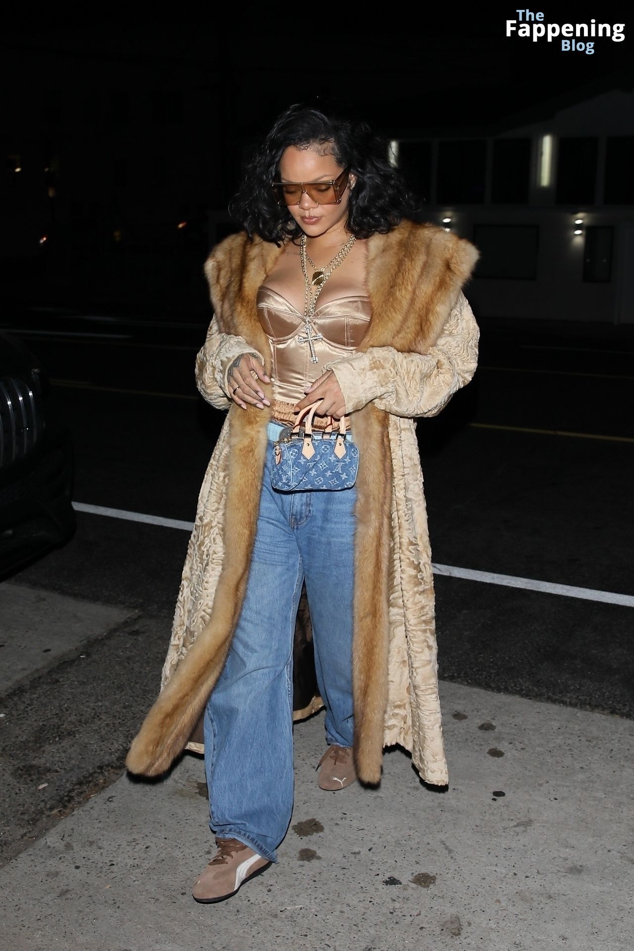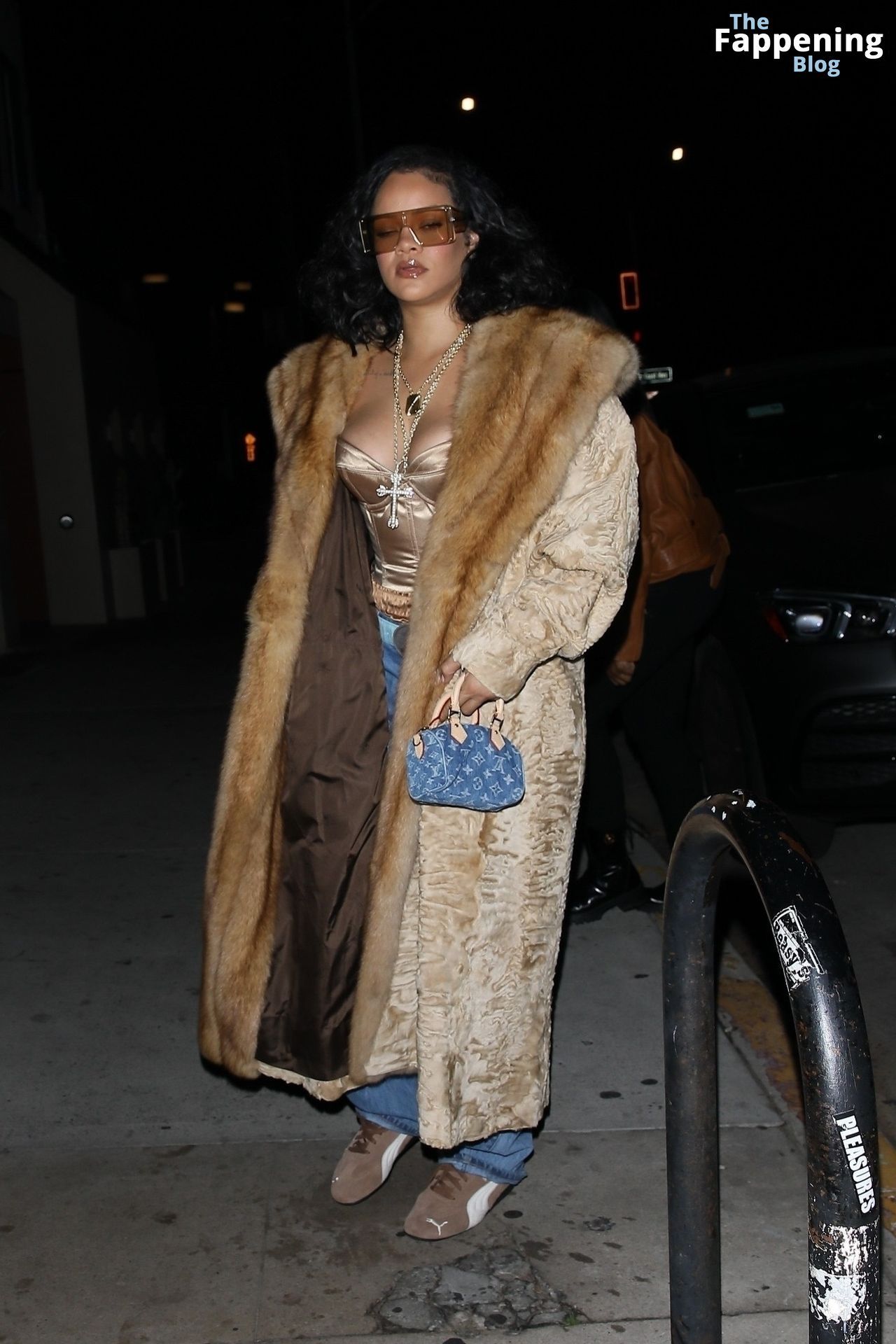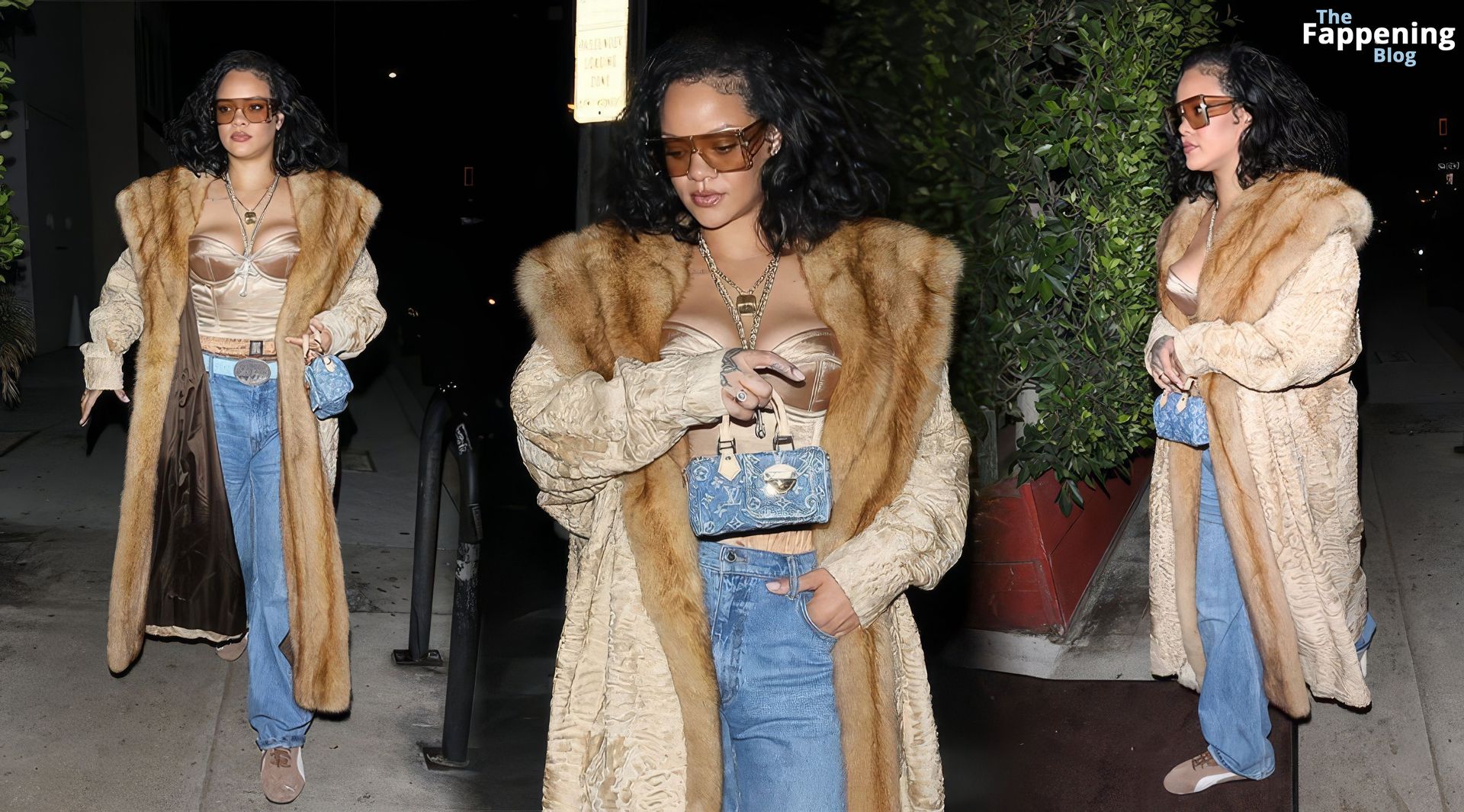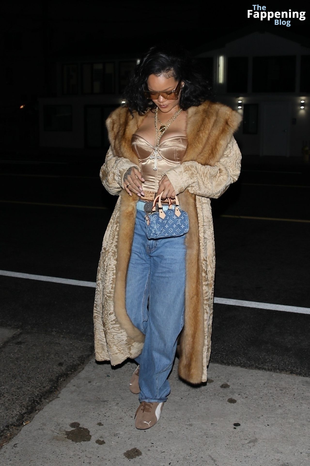 Rihanna incanta al Giorgio Baldi di Santa Monica, arrivando con un look chic e a strati: un lussuoso cappotto di pelliccia appoggiato su un corsetto aderente in raso e dei jeans a vita alta dal fascino disinvolto.