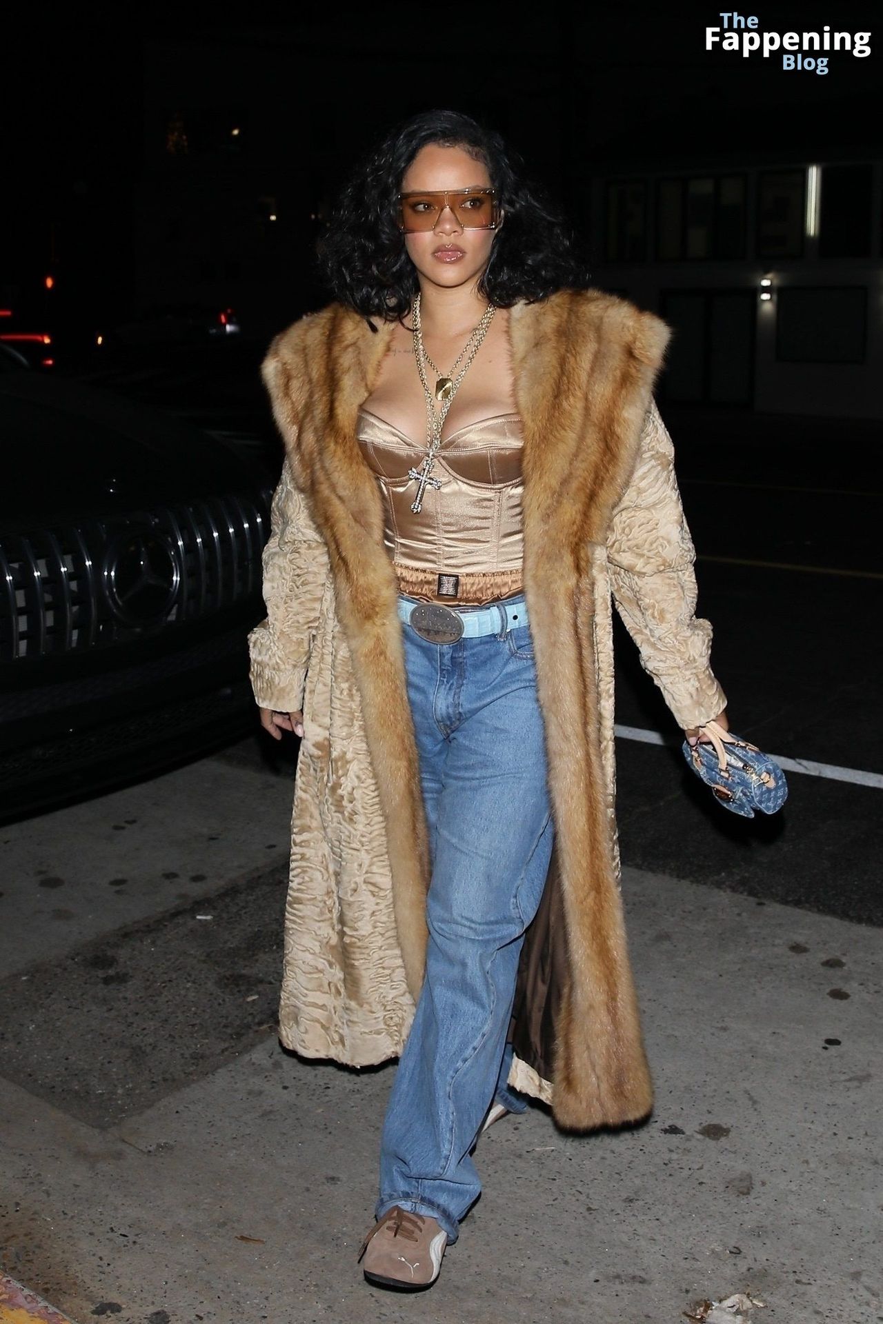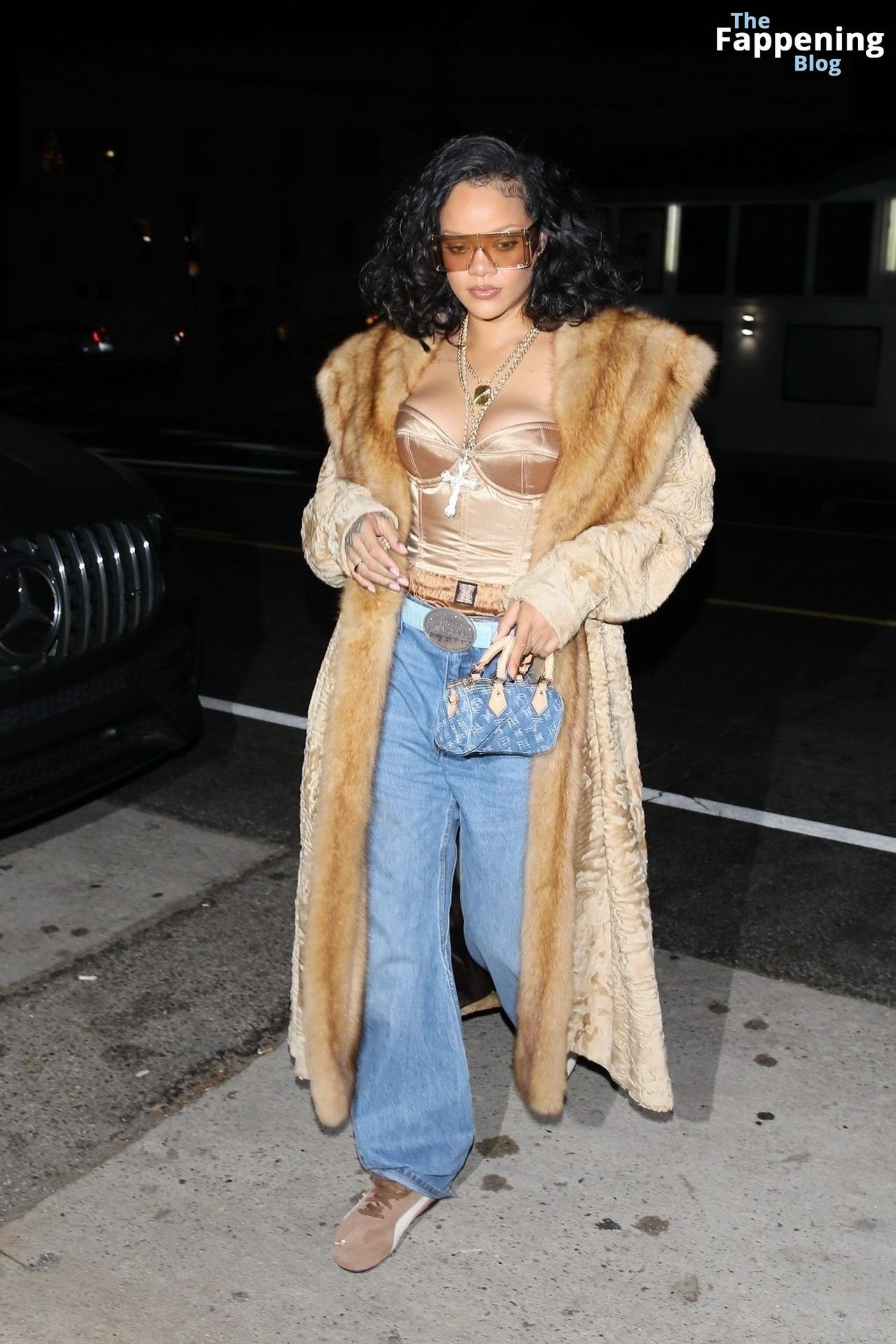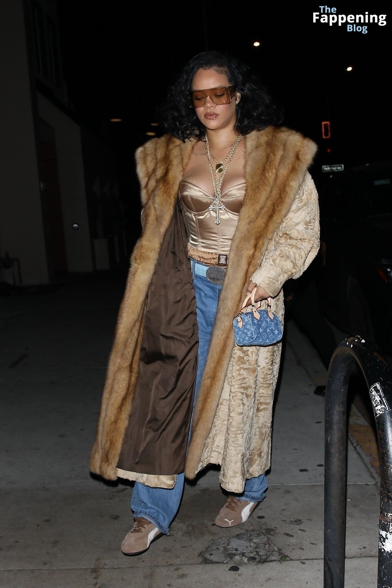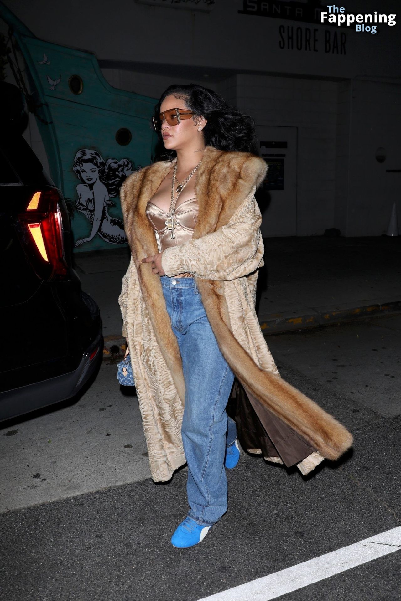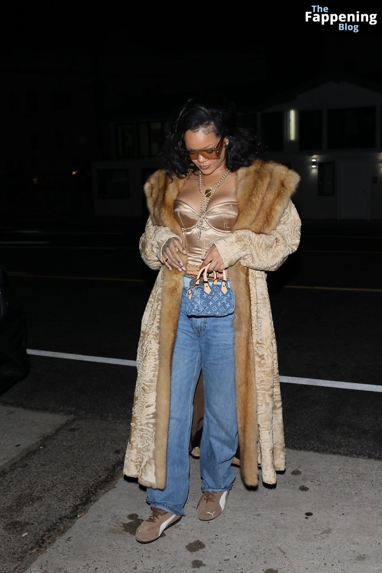 Rihanna incanta al Giorgio Baldi di Santa Monica, arrivando con un look chic e a strati: un lussuoso cappotto di pelliccia appoggiato su un corsetto aderente in raso e dei jeans a vita alta dal fascino disinvolto.