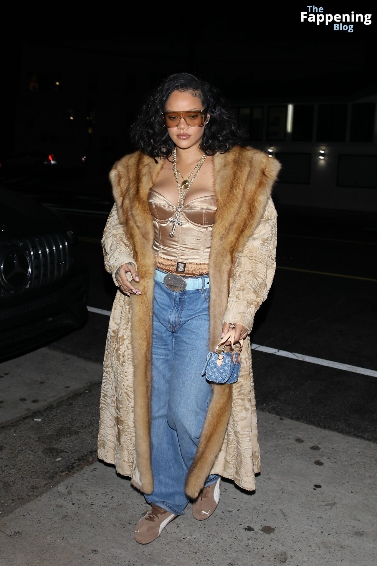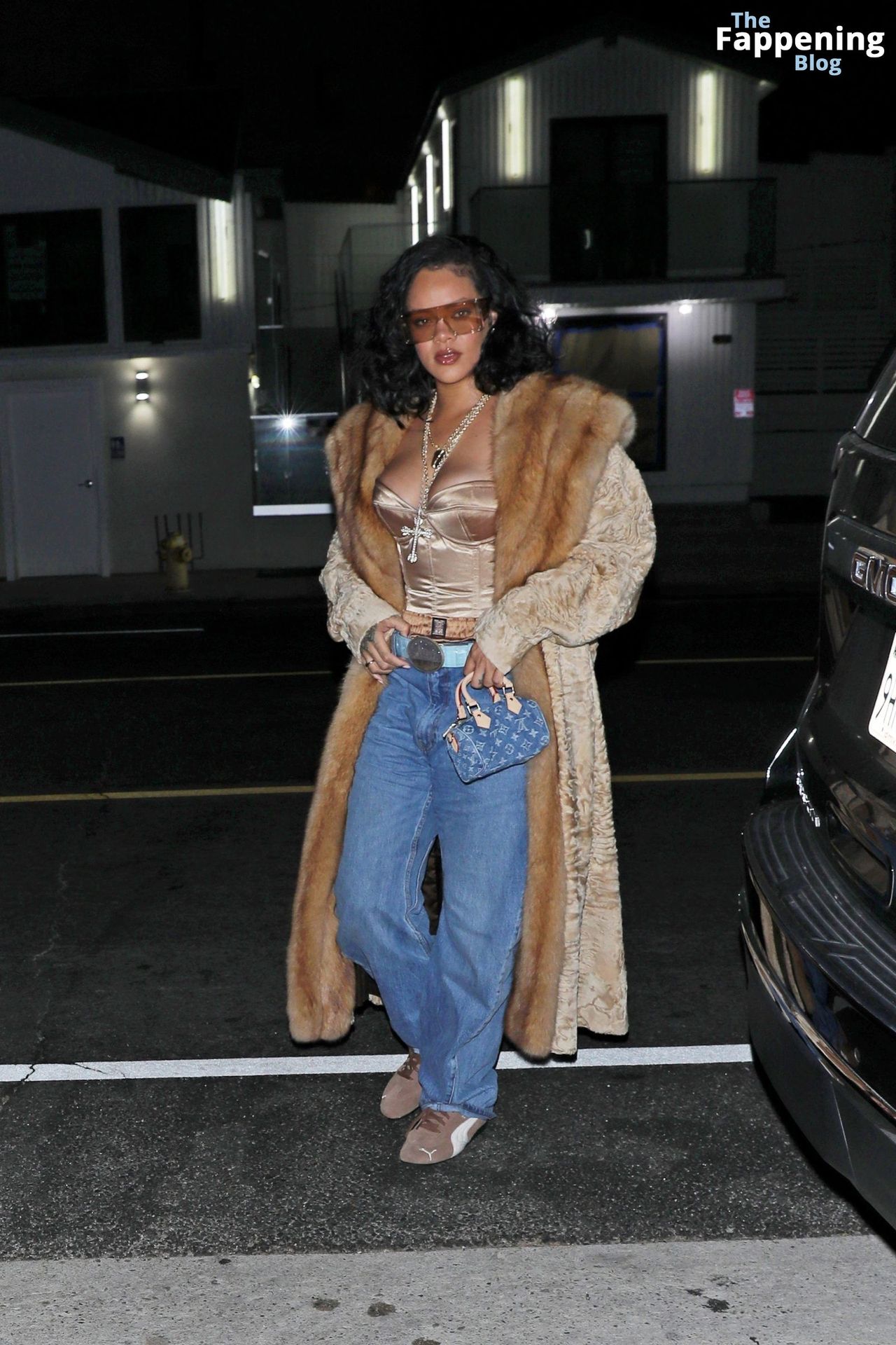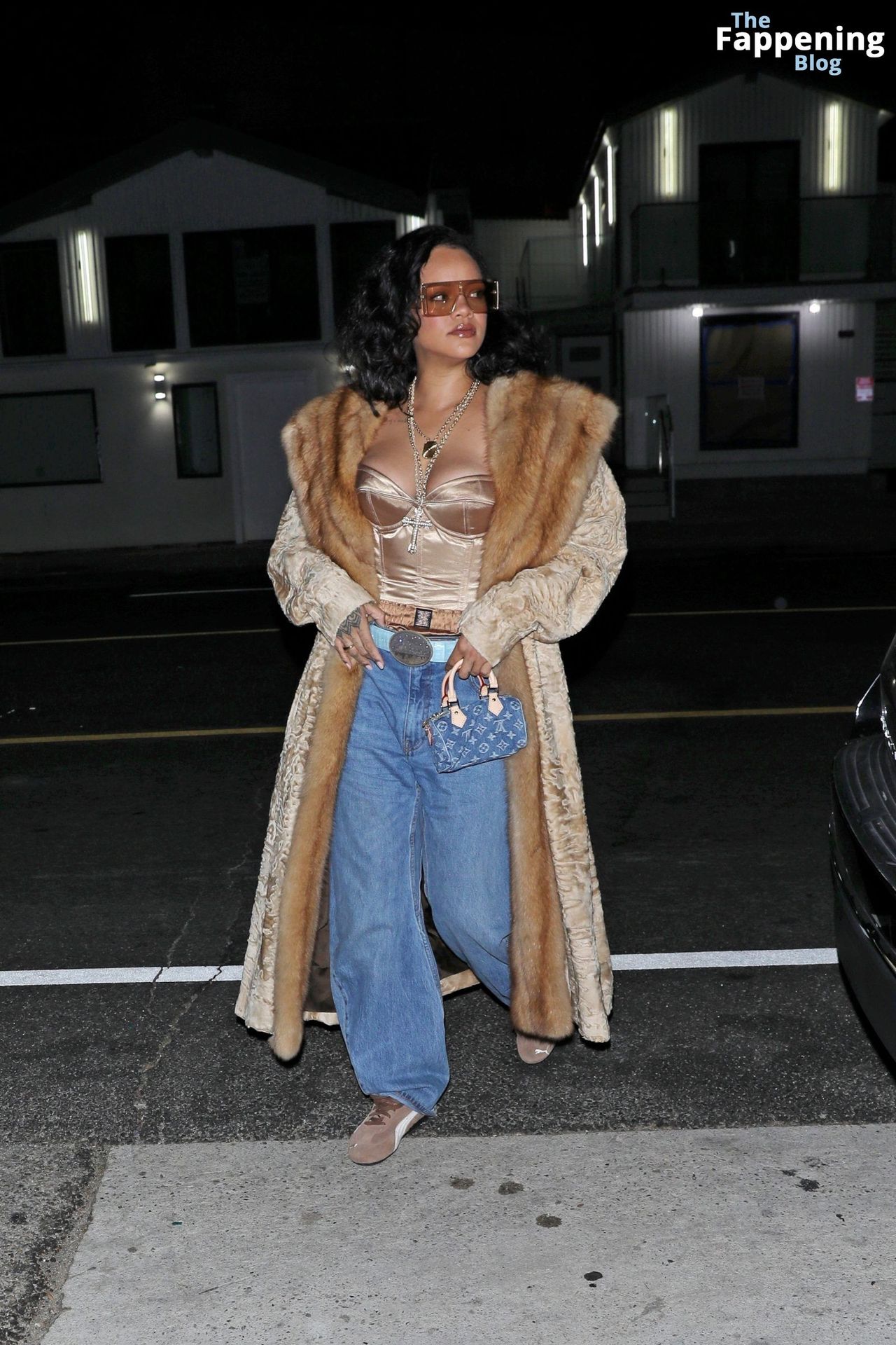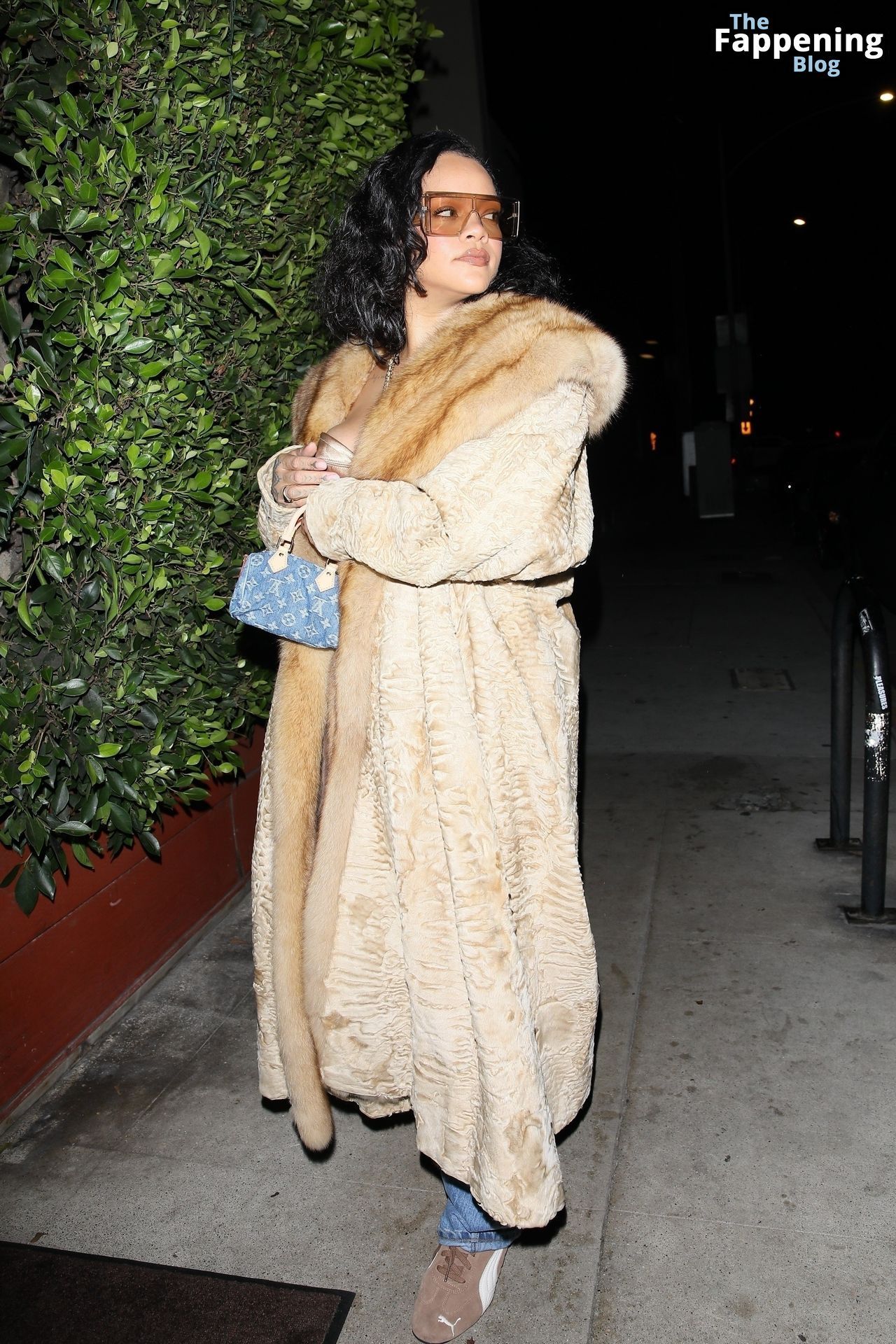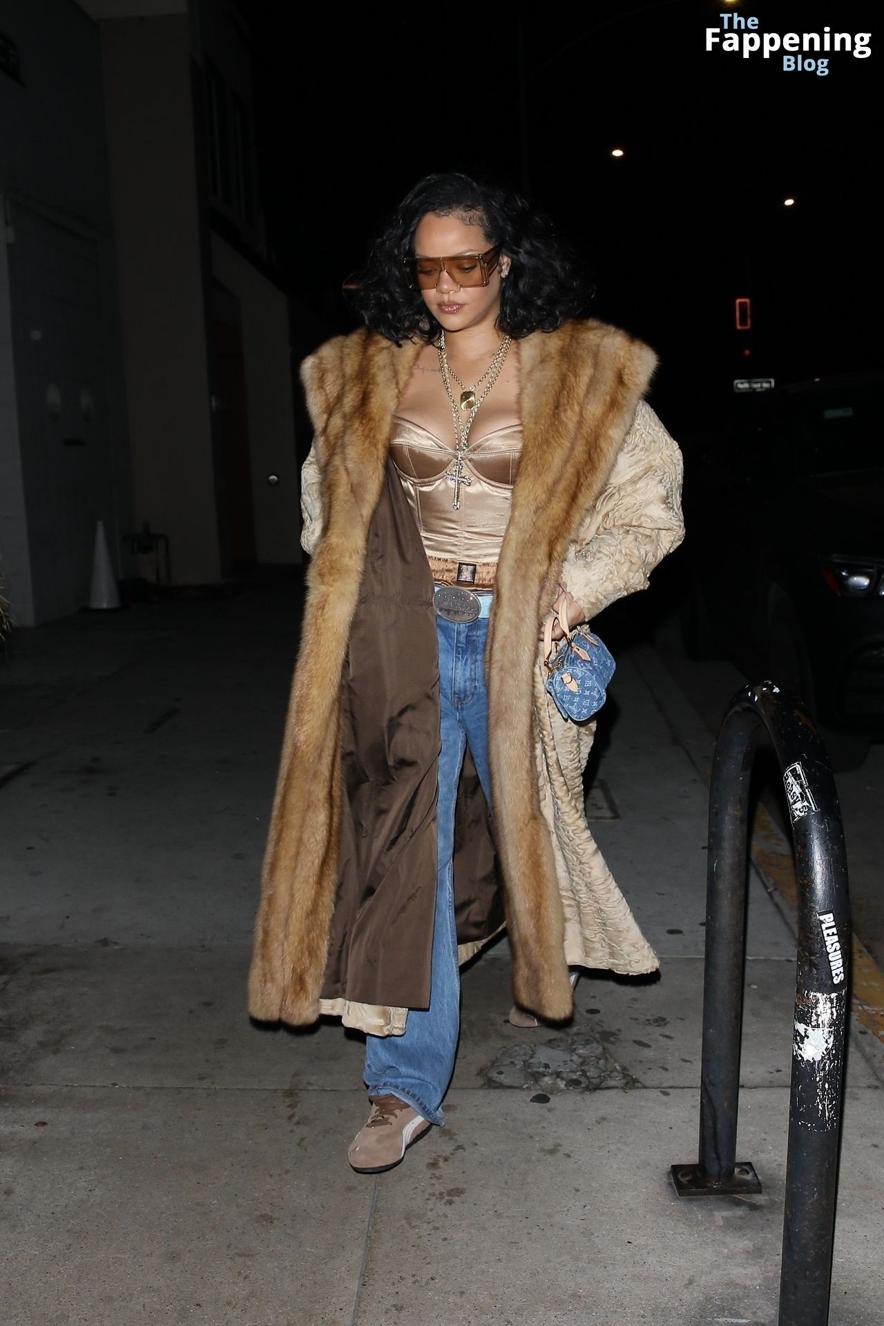 Rihanna incanta al Giorgio Baldi di Santa Monica, arrivando con un look chic e a strati: un lussuoso cappotto di pelliccia appoggiato su un corsetto aderente in raso e dei jeans a vita alta dal fascino disinvolto.