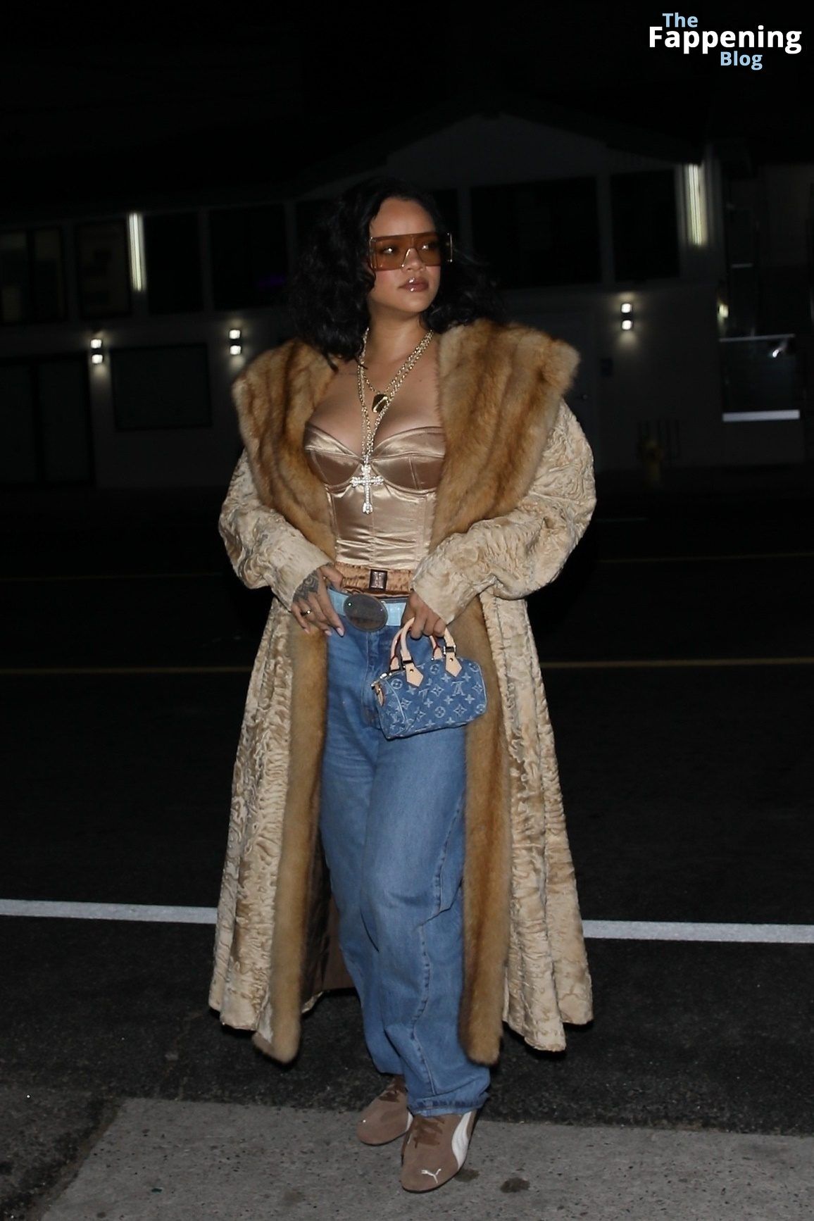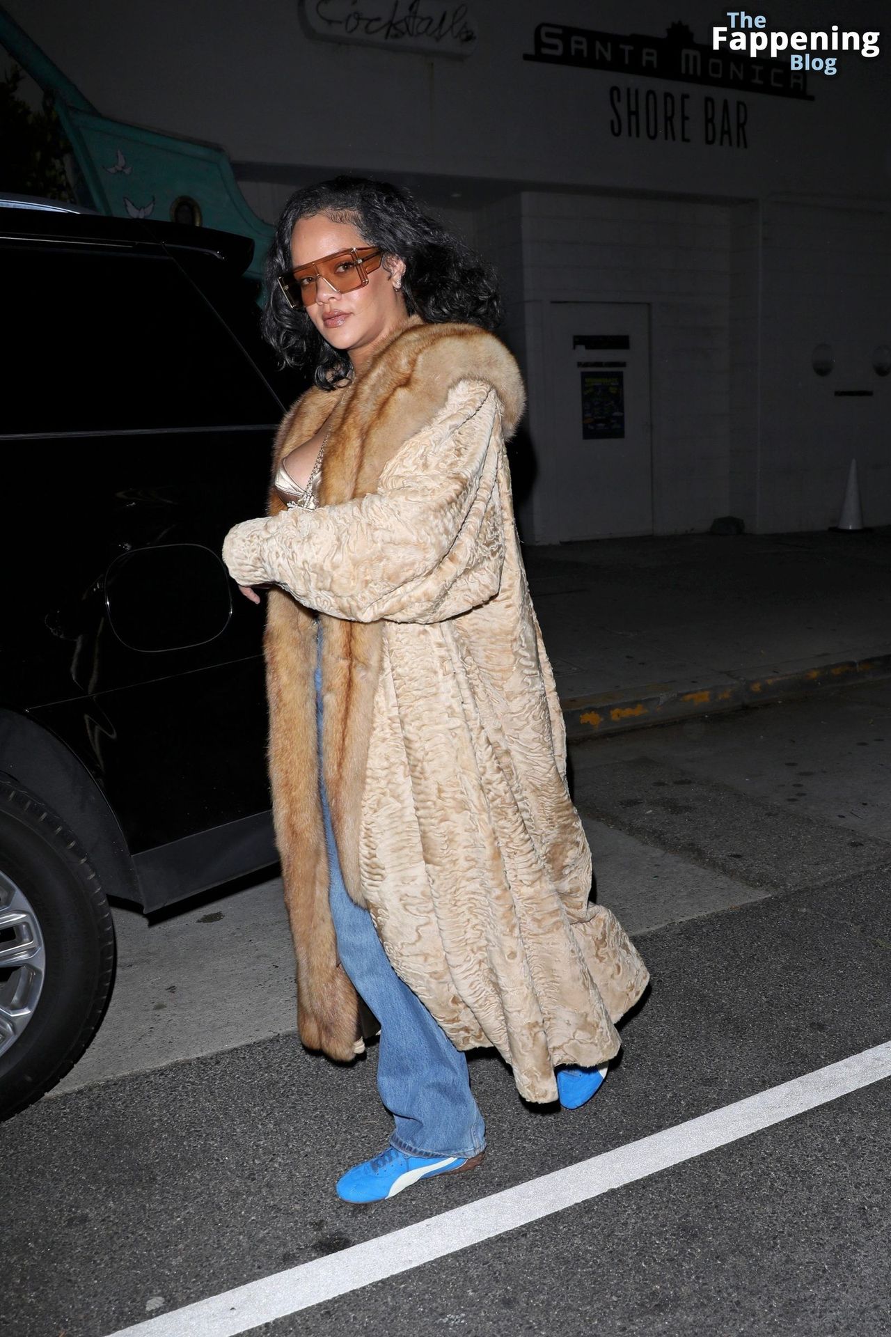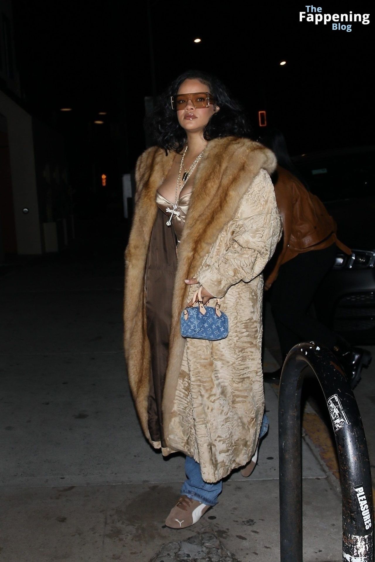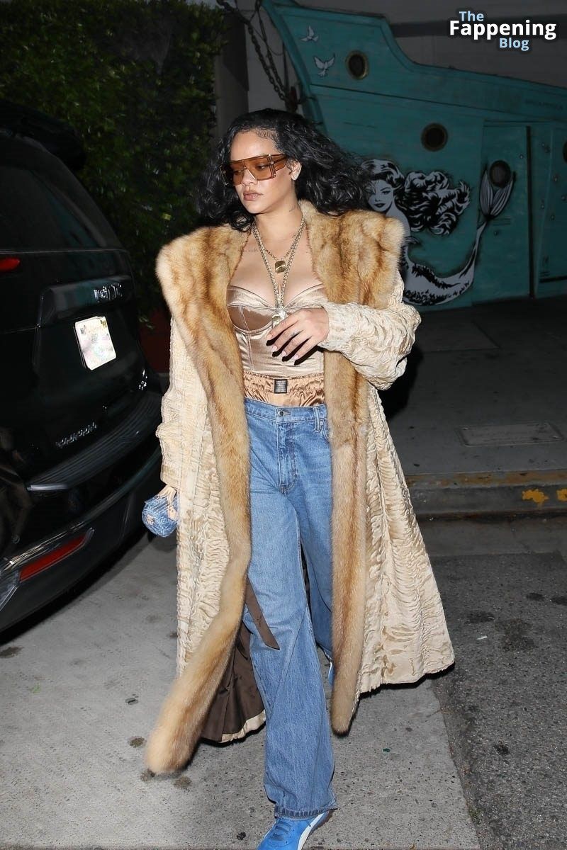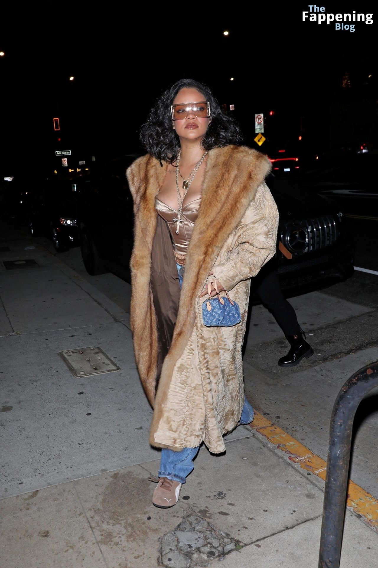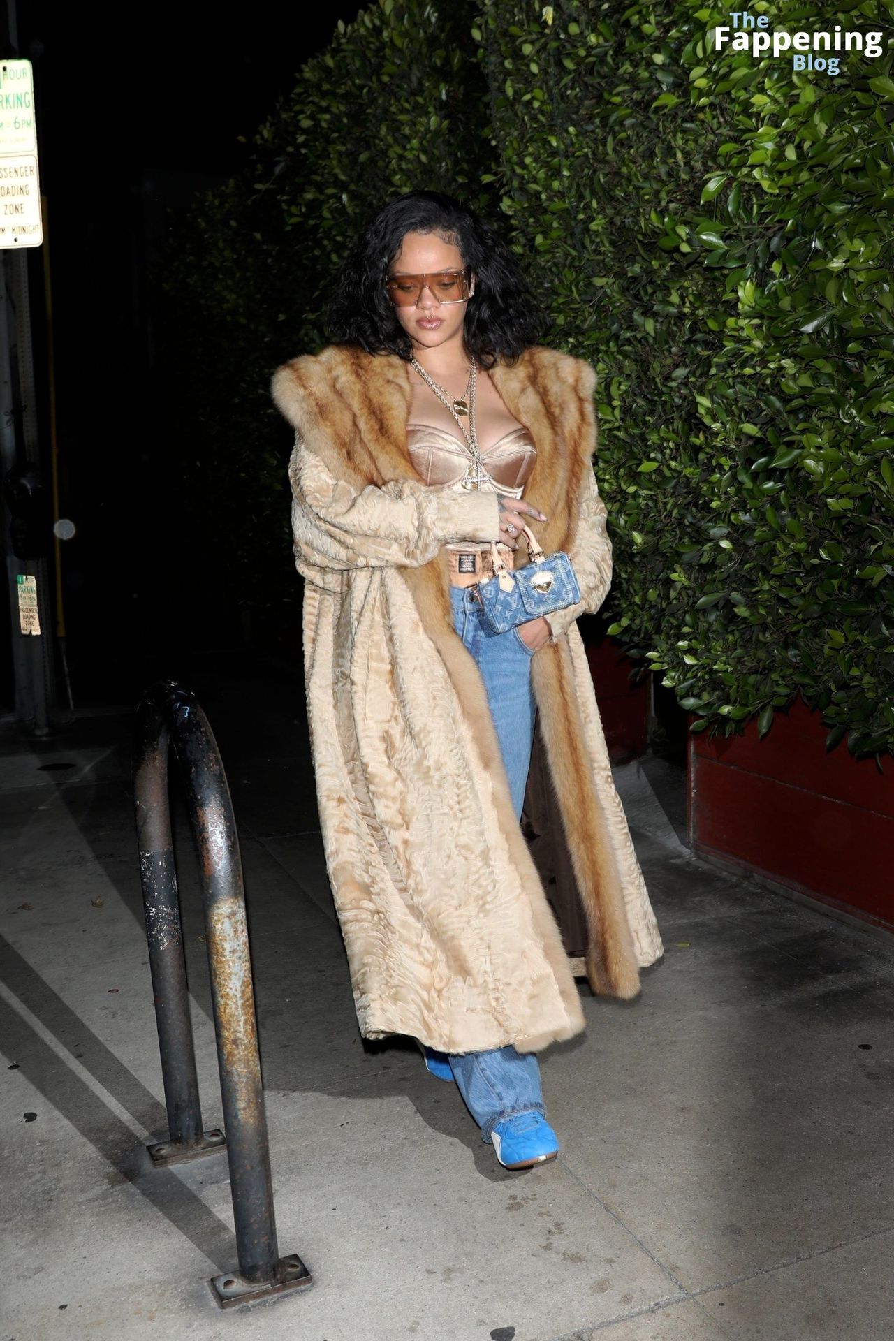 Rihanna incanta al Giorgio Baldi di Santa Monica, arrivando con un look chic e a strati: un lussuoso cappotto di pelliccia appoggiato su un corsetto aderente in raso e dei jeans a vita alta dal fascino disinvolto.