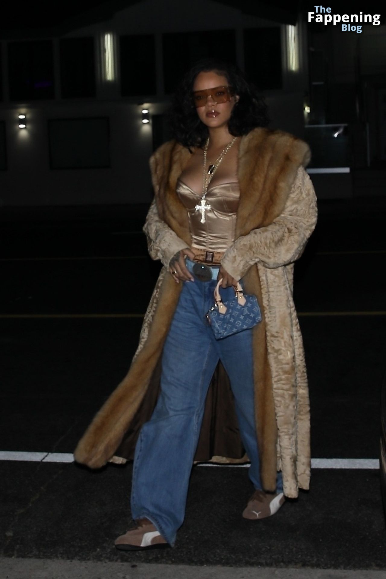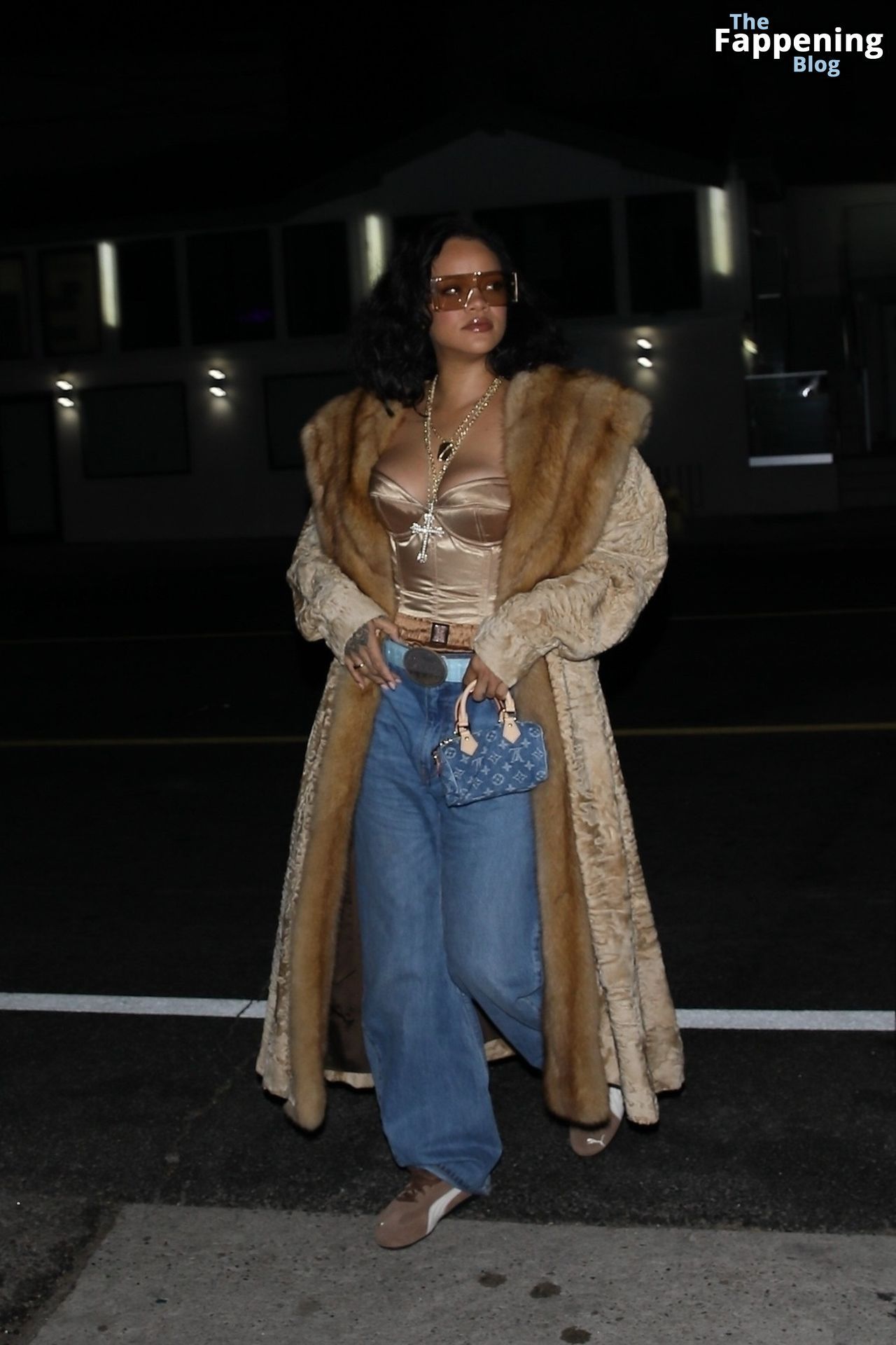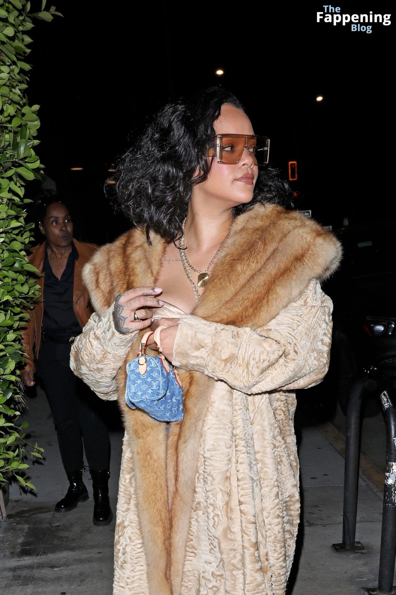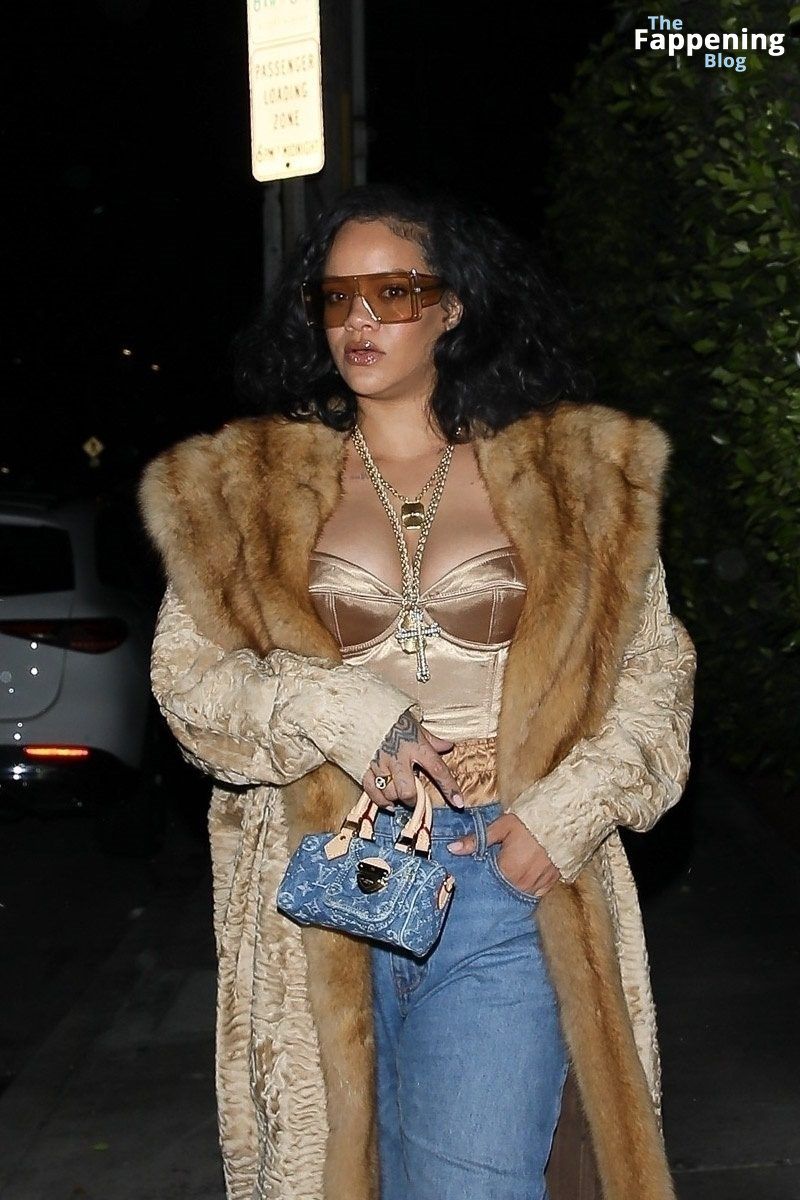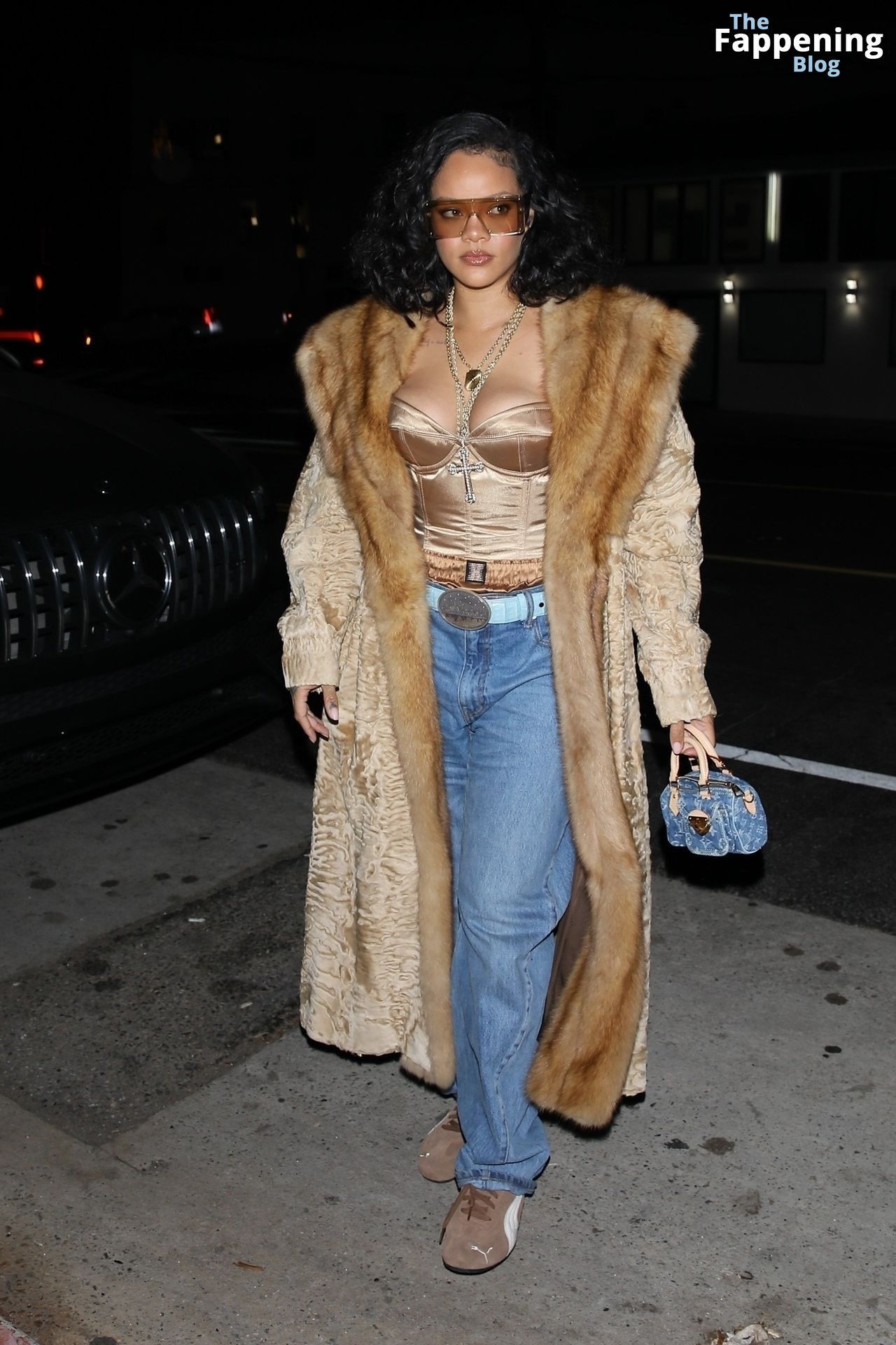 Rihanna incanta al Giorgio Baldi di Santa Monica, arrivando con un look chic e a strati: un lussuoso cappotto di pelliccia appoggiato su un corsetto aderente in raso e dei jeans a vita alta dal fascino disinvolto.