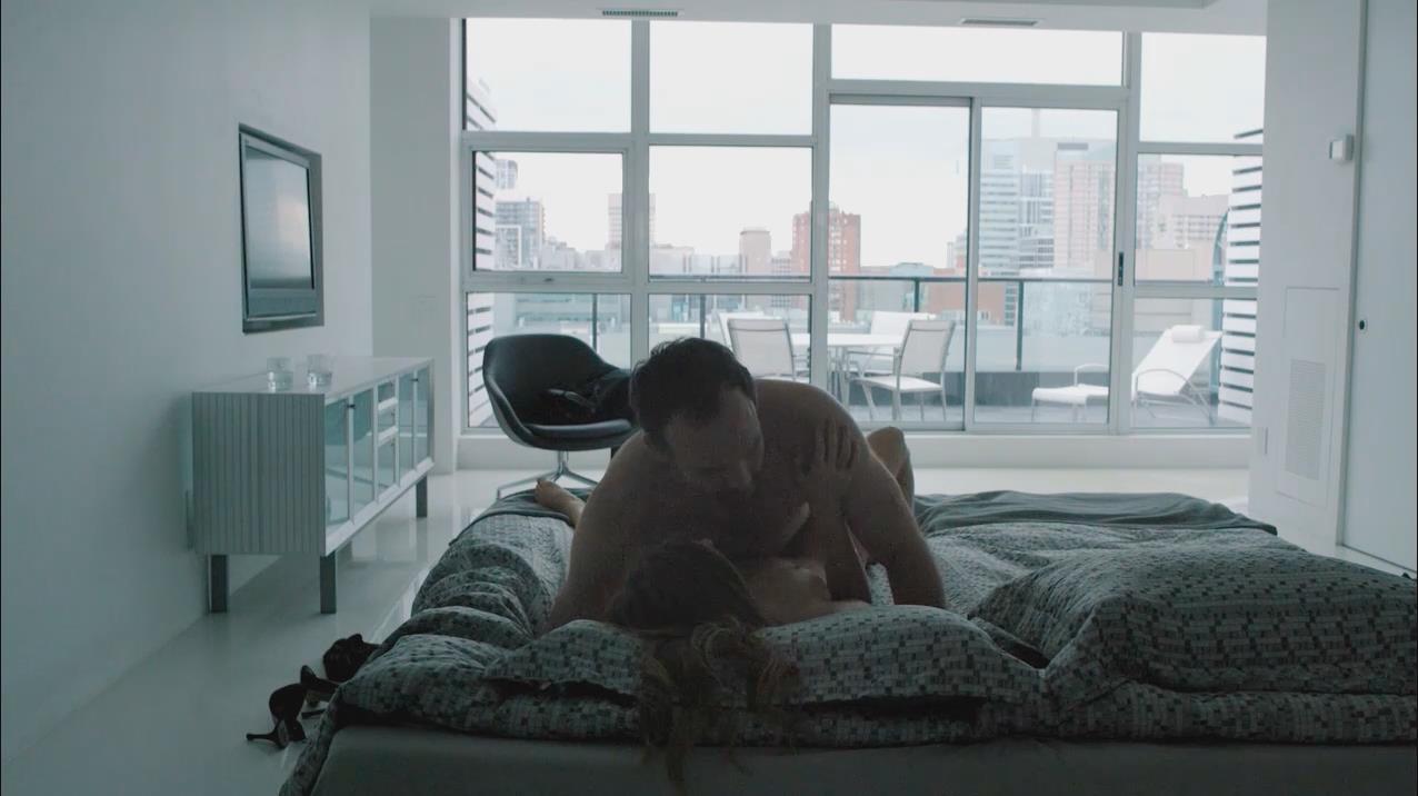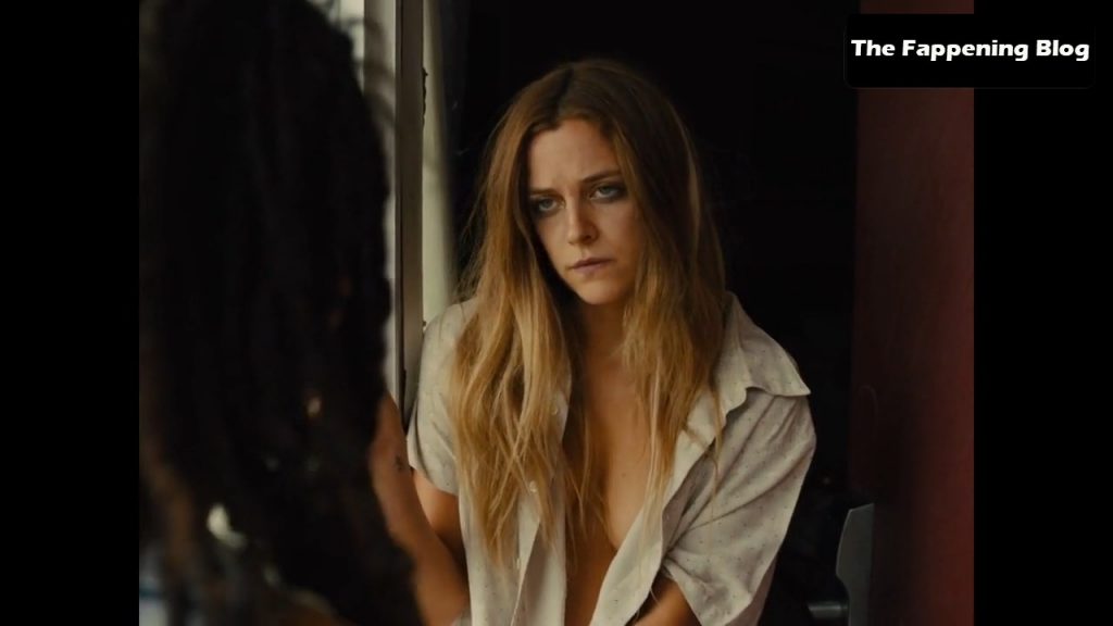 We then see Riley Keough naked on top of him and showing her breasts and butt from the side as she rides him. After they finish having sex, we see Riley on her back with her right breast visible as well as her left flashing into view.