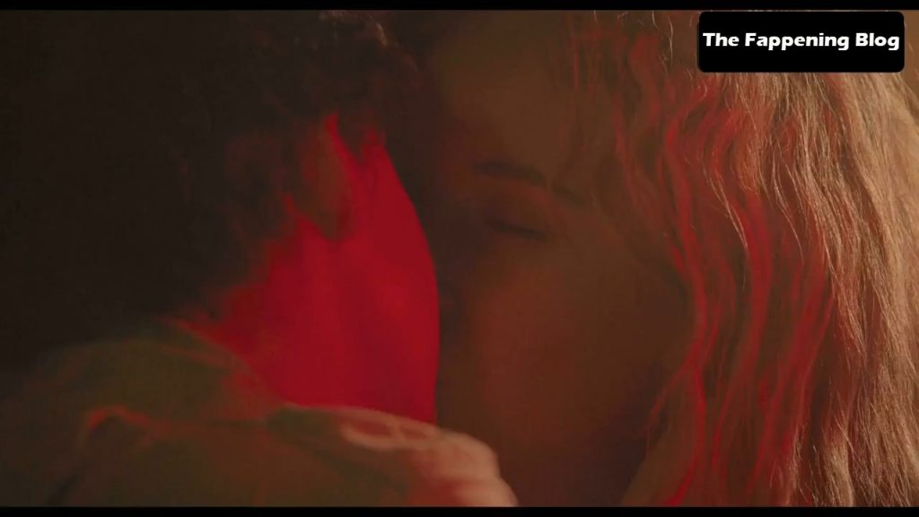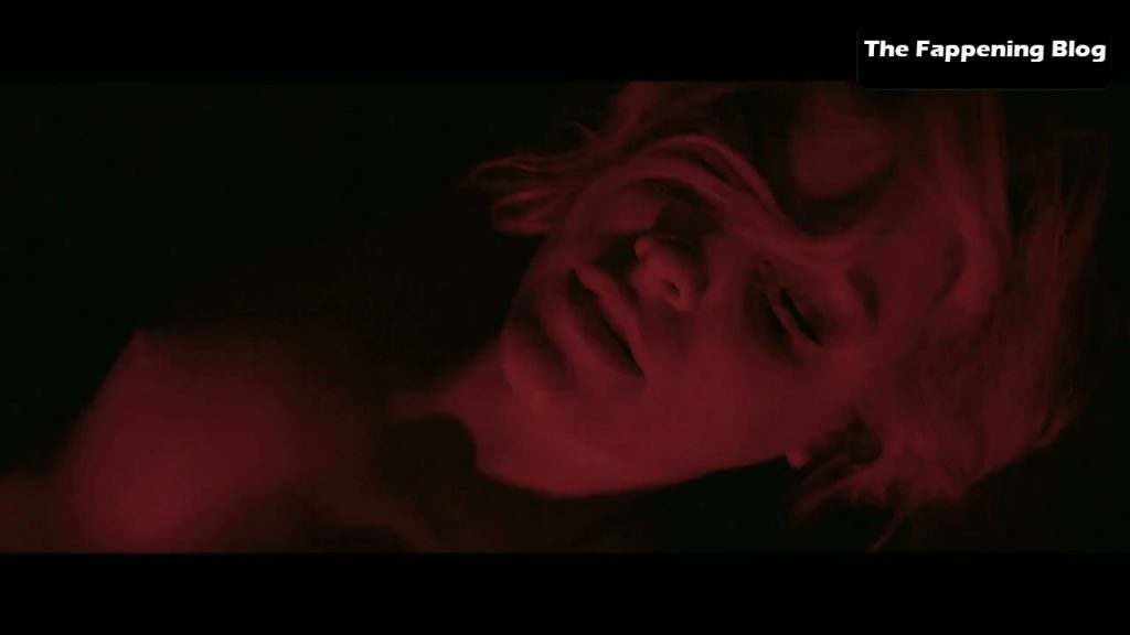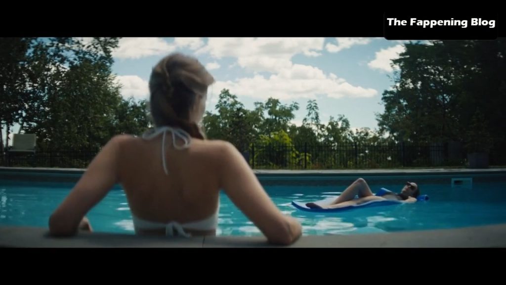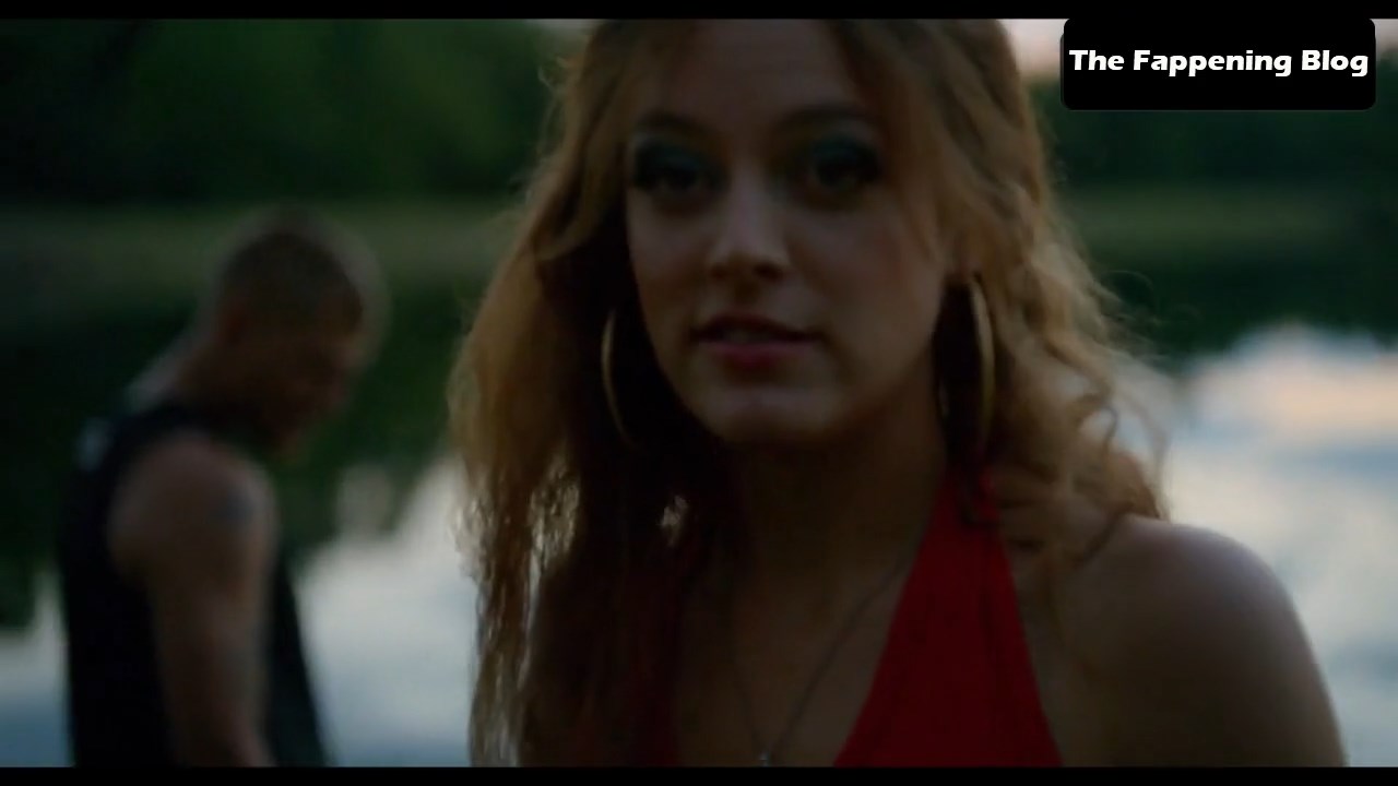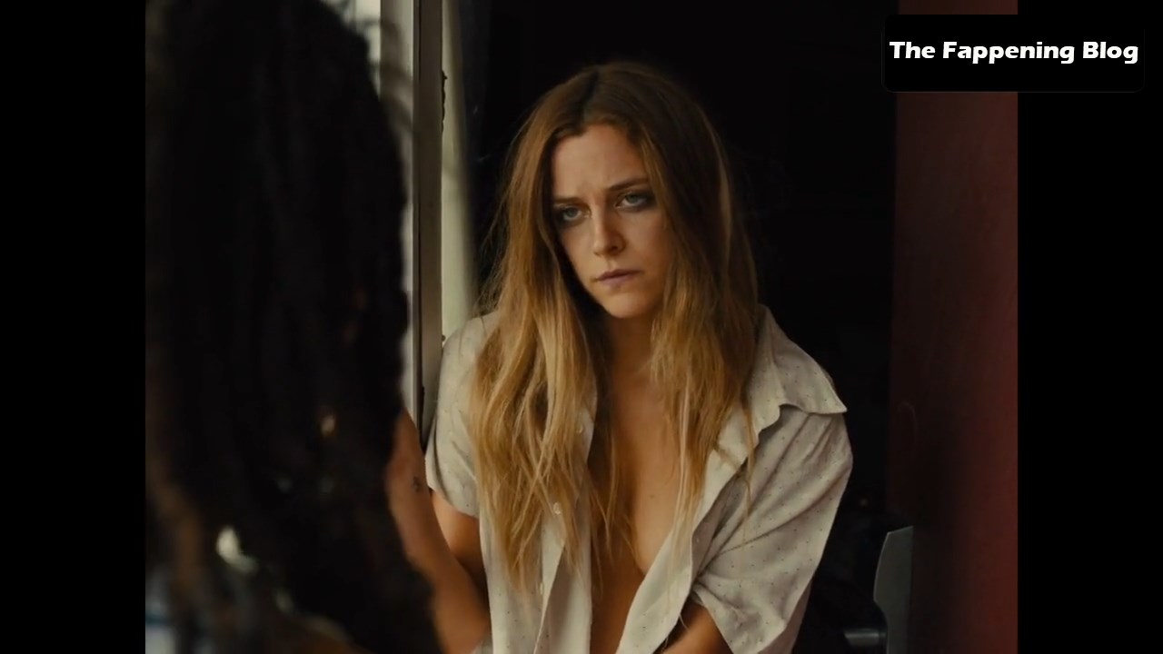 Riley Keough che si muove sul grembo di un ragazzo mentre lui è seduto sul bordo del letto, con i pantaloni indossati e la sua camicia sbottonata. Riley poi scende dal ragazzo e si siede di fronte a lui, tirandosi fuori il seno dal reggiseno.She then begins to masturbate.
