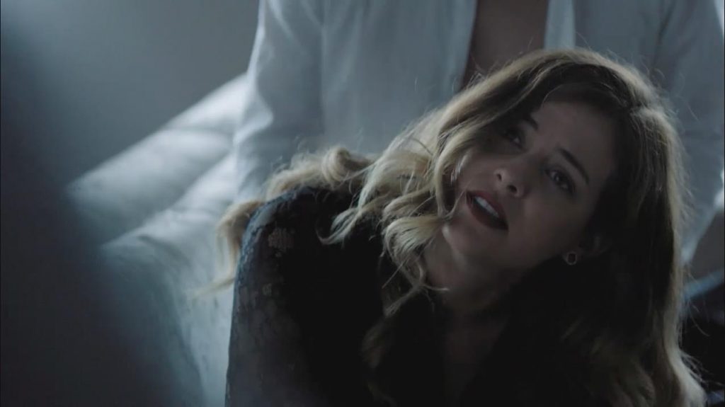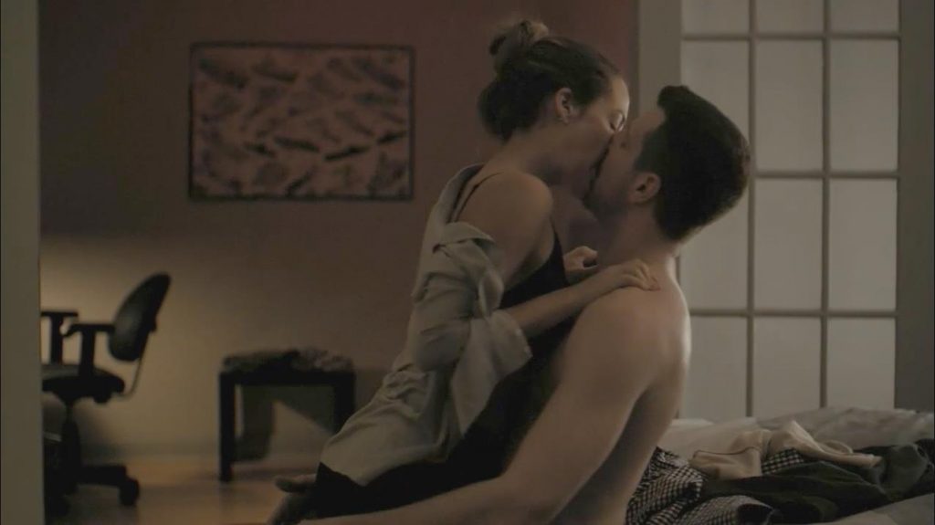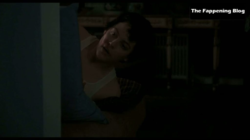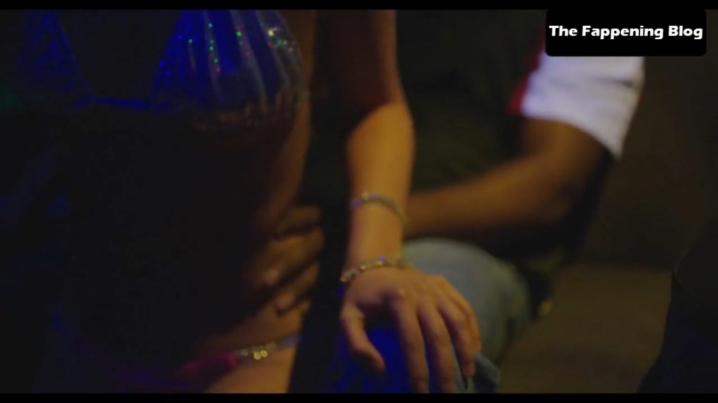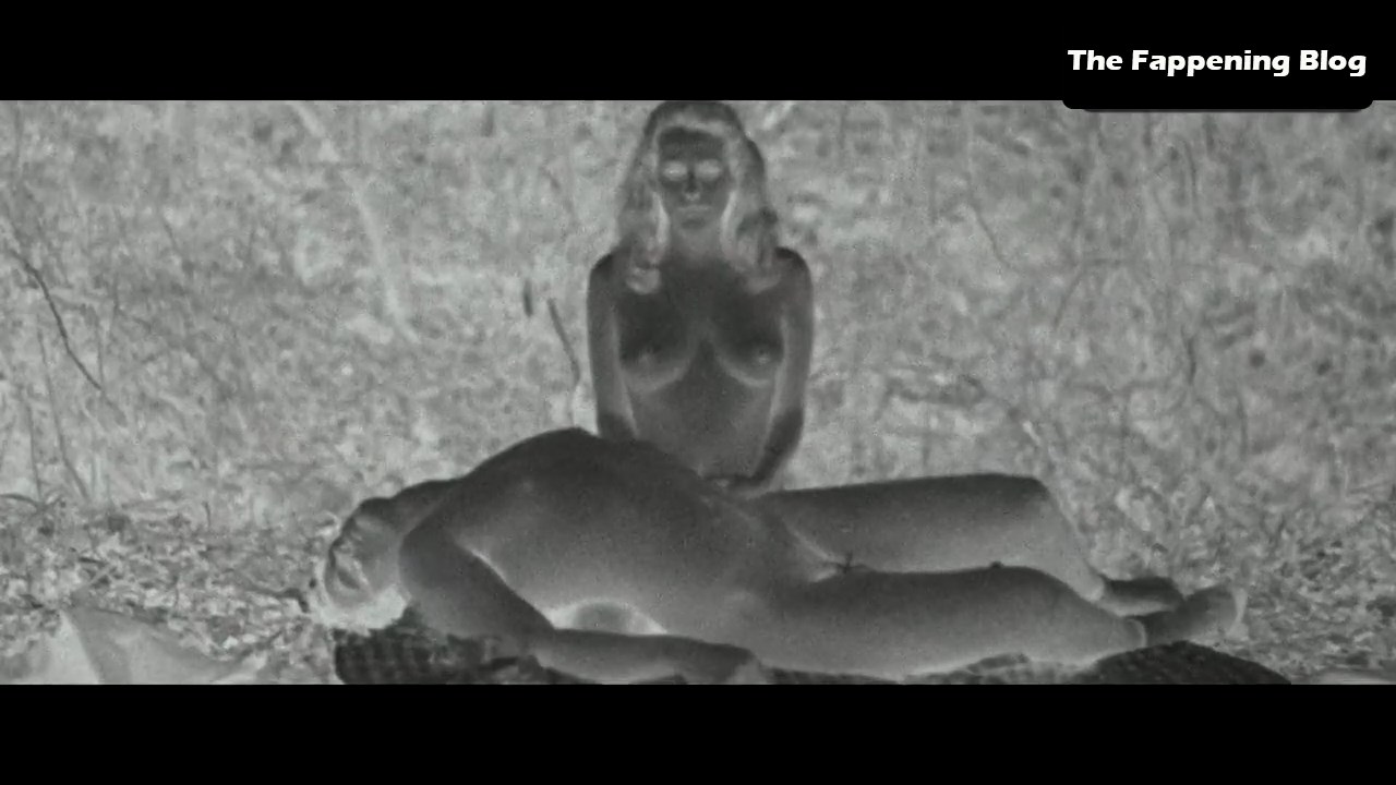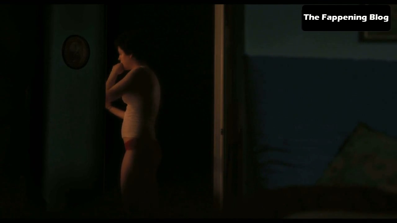Riley Keough che si muove sul grembo di un ragazzo mentre lui è seduto sul bordo del letto, con i pantaloni indossati e la sua camicia sbottonata. Riley poi scende dal ragazzo e si siede di fronte a lui, tirandosi fuori il seno dal reggiseno.She then begins to masturbate.