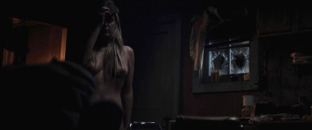 Riley stands nude in the moonlight with her back to Abbey. Eventually we see Riley’s breasts as she leads Abbey around, before Abbey wakes up from what has been a dream!