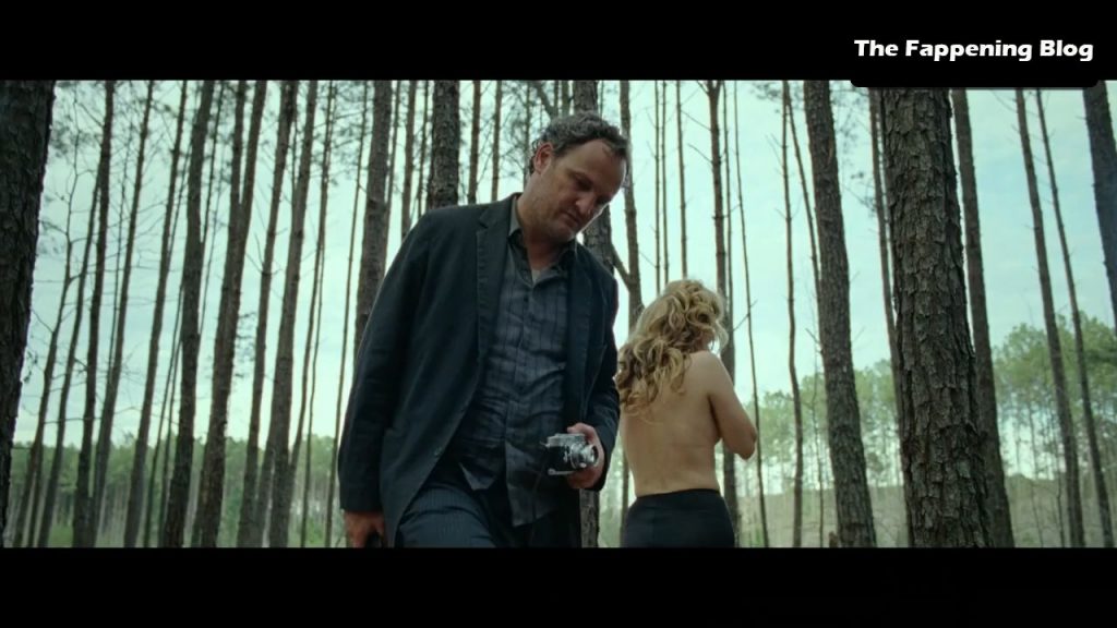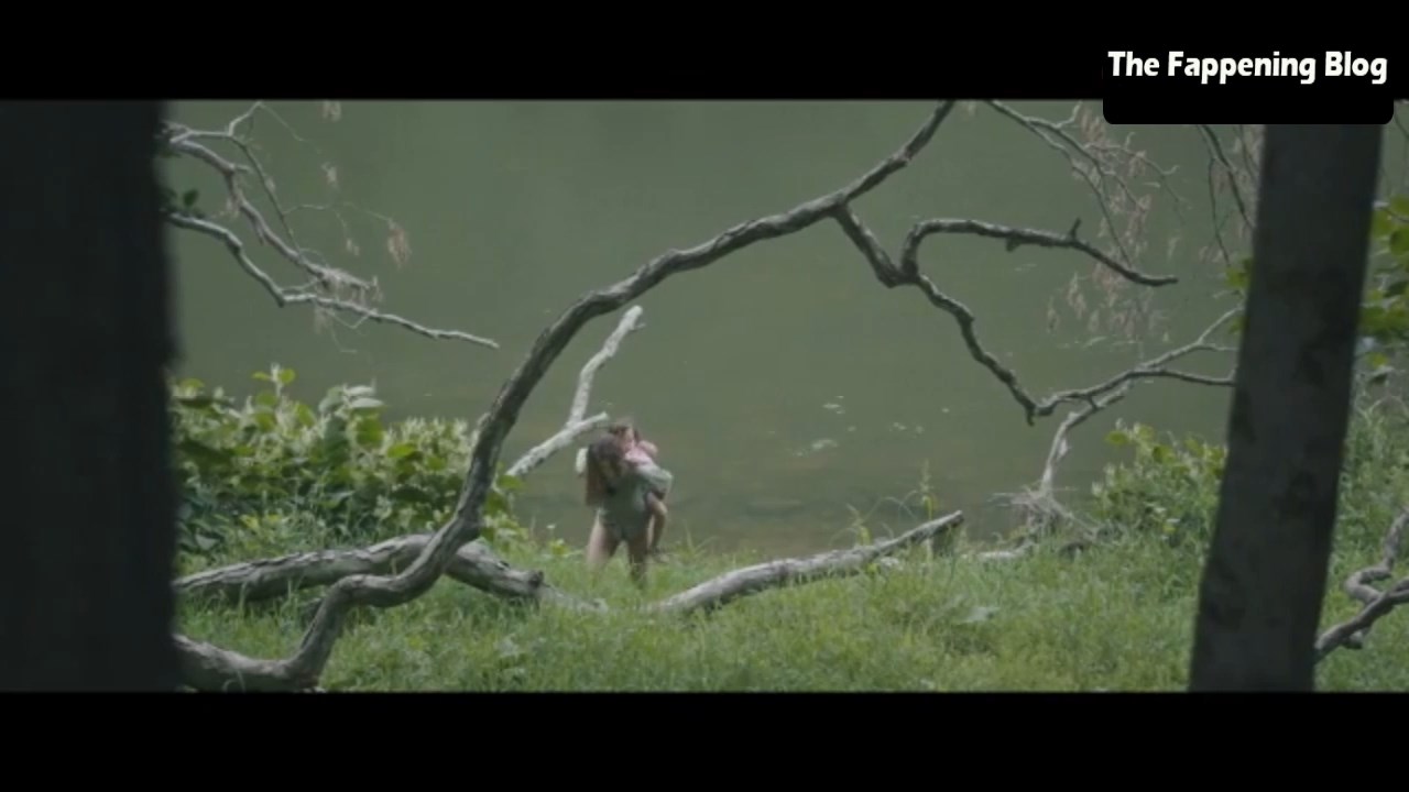 Here we can see Riley Keough nude while making out with a guy while straddling him on a bed. Her dress is coming off to expose her breasts and the guy leaning in to grab and suck on them. After a while. And he flips her onto her back and continues to have sex with her while putting his hand on her neck and squeezing it. Afterward, we see Riley lying topless on her back on the bed briefly. From the movie Welcome the Stranger.