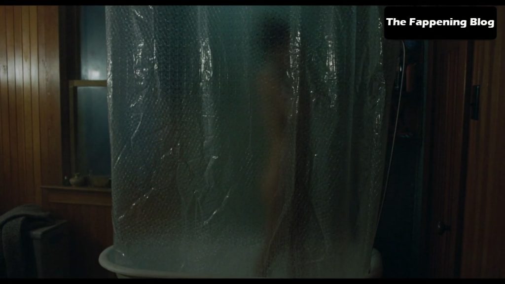 Riley is topless in the bathroom, and we can briefly see her left breast in the fogged up mirror!