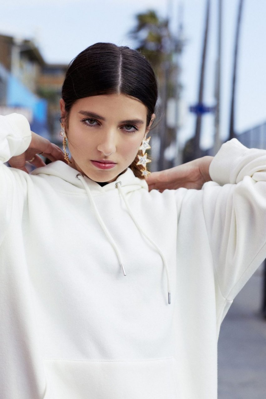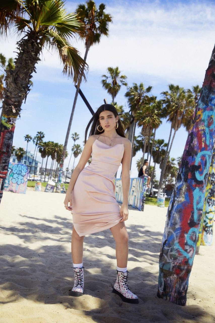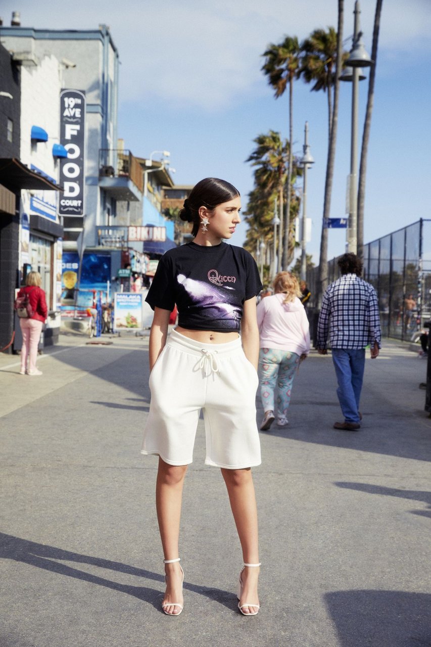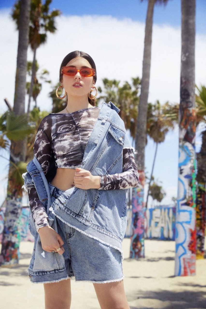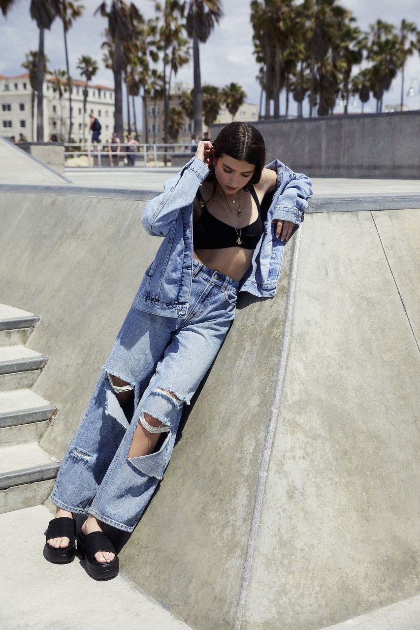 Rina Lipa incanta in un servizio fotografico a Venice Beach per Nasty Gal per mostrare la sua nuova collezione estiva con il rivenditore di abbigliamento online (2019). La diciottenne aspirante attrice e modella, e sorella della cantante vincitrice di un Grammy Dua Lipa, interpreta il ruolo in una serie di look che includono denim strappati e reggiseni esposti sullo sfondo del celebre punto di riferimento sulla spiaggia.