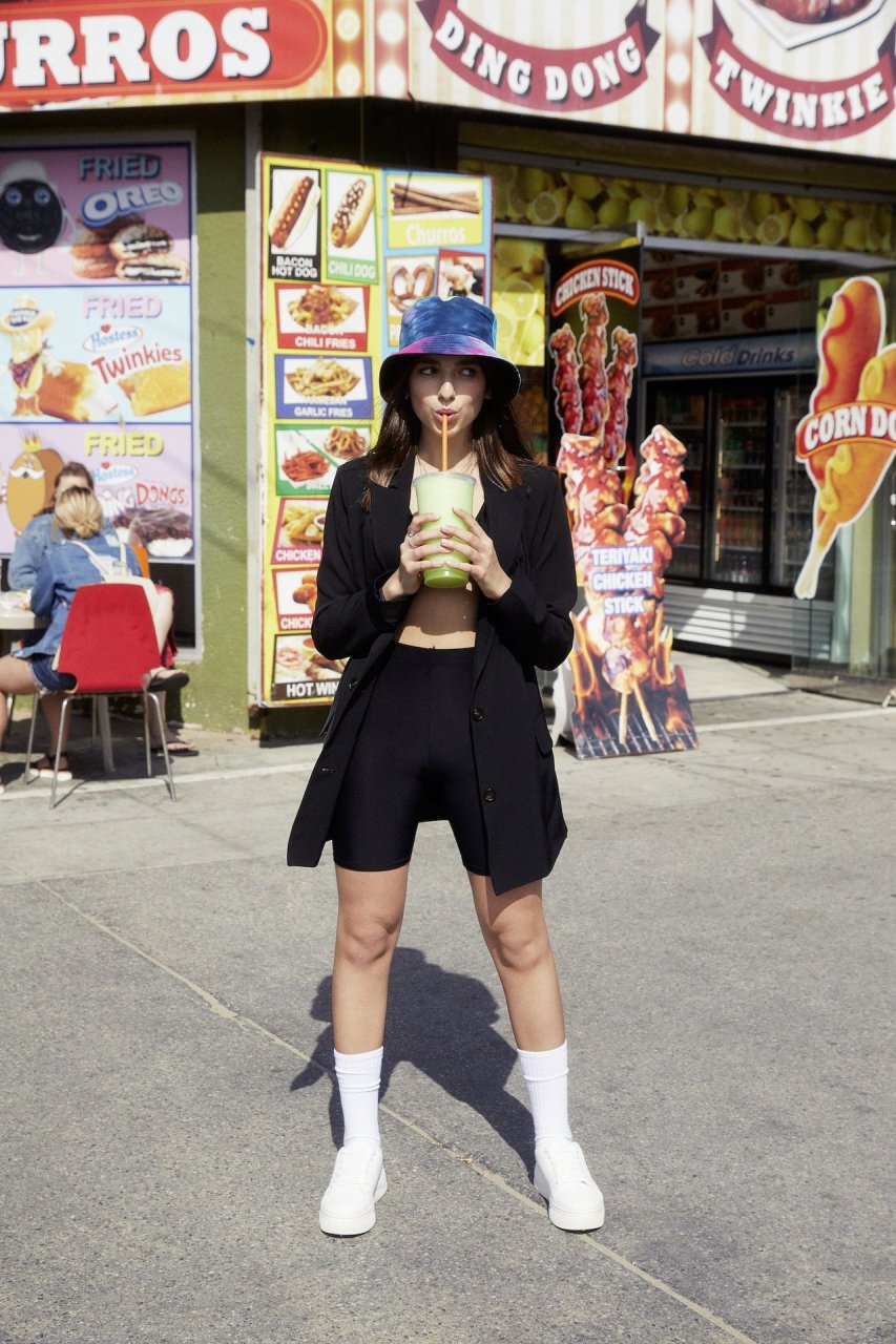 La collezione estiva 2019 è ispirata allo stile rilassato di Rina e include abbigliamento androgino oversize, insieme a pantaloncini da biker casual, T-shirt, crop top in rete e minidress floreali ricamati.