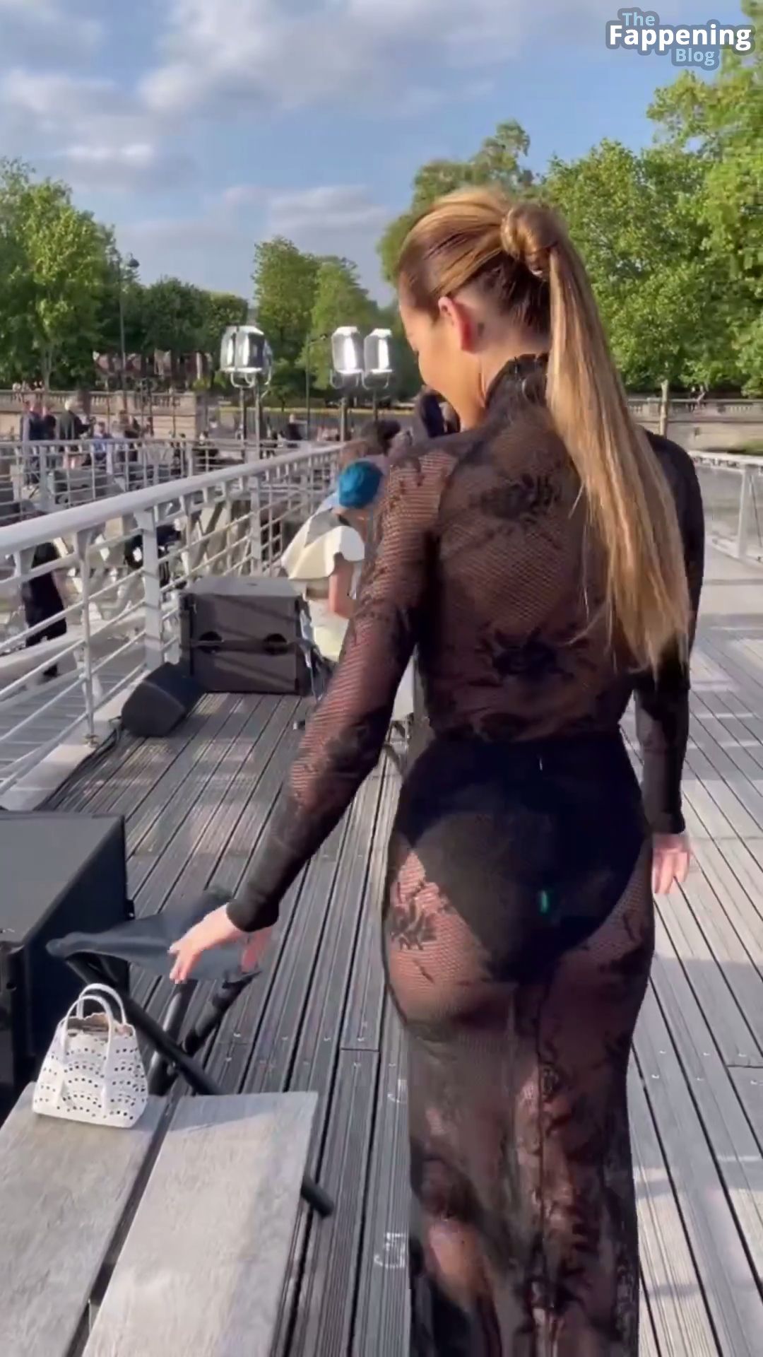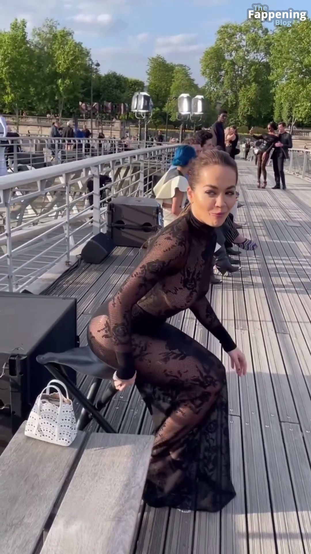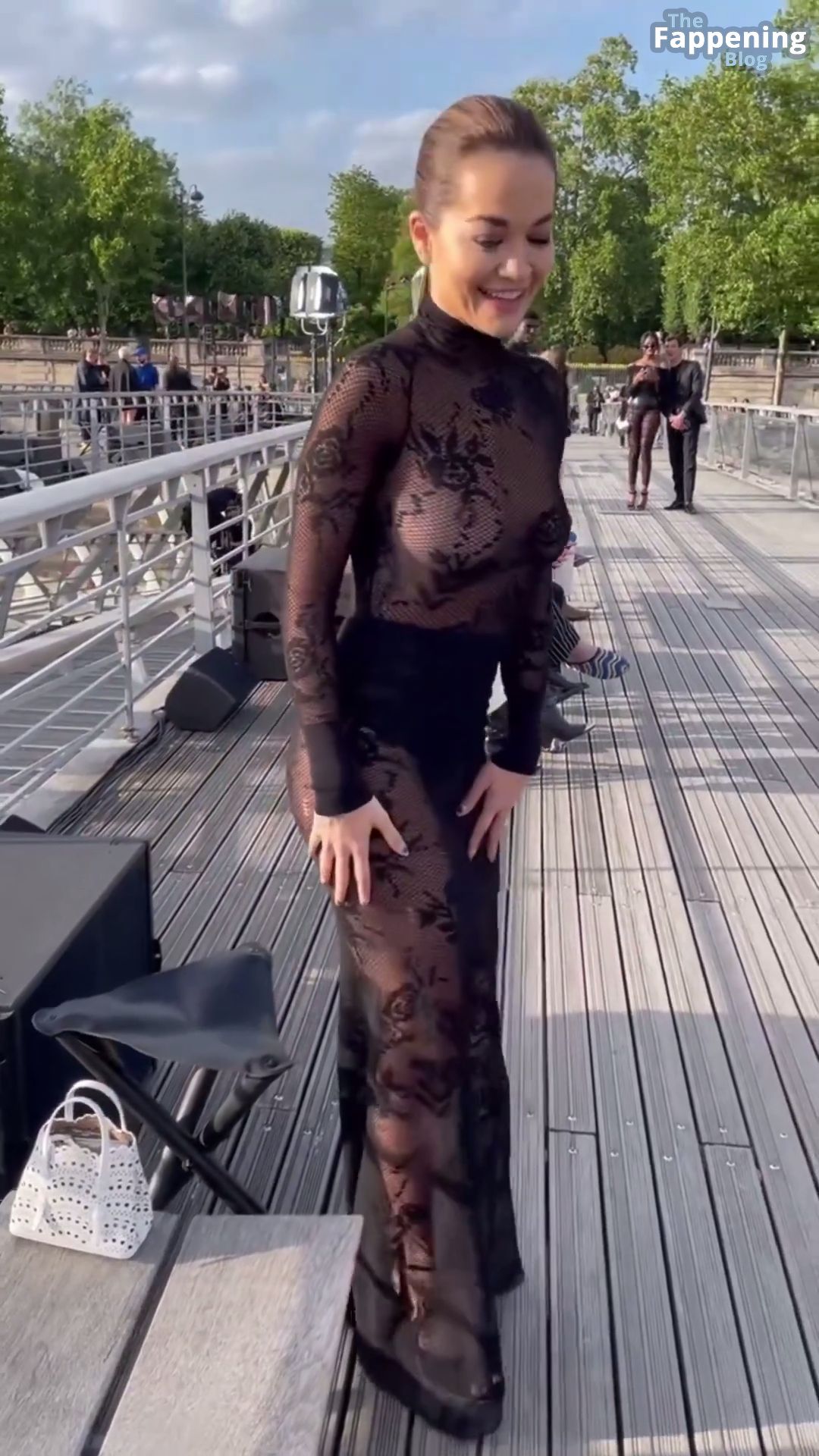 Dai un’occhiata a Rita Ora, la regina dello stile impeccabile, che sfoggia un outfit davvero audace allo show di Azzedine Alaïa durante la Paris Haute Couture Week. Questa cantante di 32 anni è arrivata all’evento con un abito attillato in pizzo trasparente, senza reggiseno e pronta a stupire. Il suo elegante vestito nero metteva in mostra il suo seno nudo, perché aveva rinunciato al reggiseno e indossava solo un piccolo slip nero. Per completare il look, ha calzato dei tacchi alti neri da urlo, aggiungendo sicurezza mentre sfilava con il suo fidanzato.