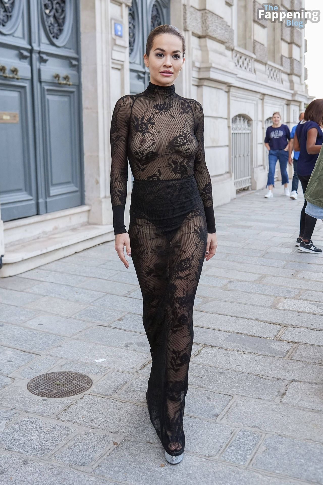 Rita Ora appare senza reggiseno in un abito di pizzo trasparente allo spettacolo di Alta Moda di Azzedine Alaïa, seduta accanto ad Anna Wintour, 07/02/2023. La cantante è stata vista uscire dall’evento durante la Settimana dell’Alta Moda a Parigi.