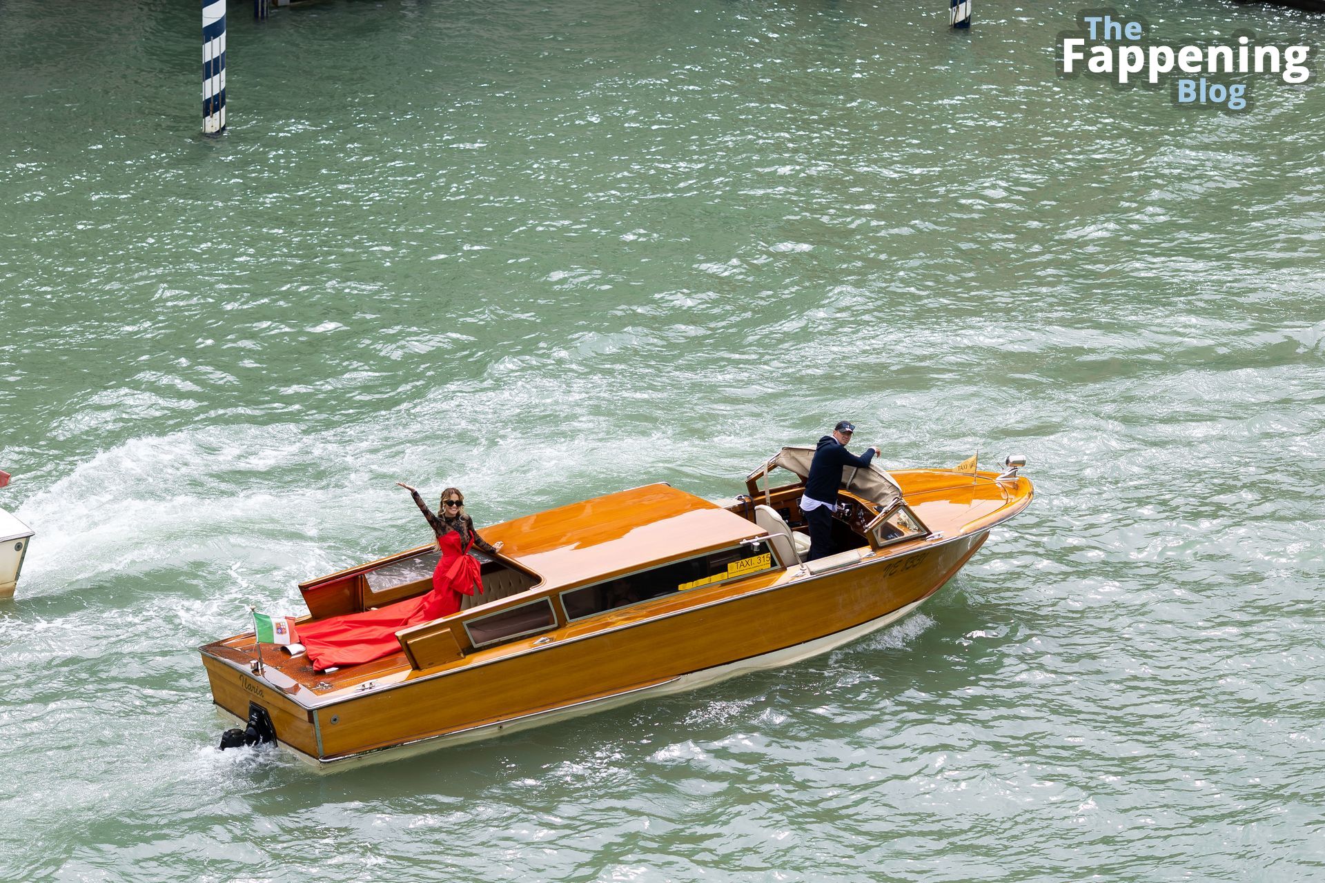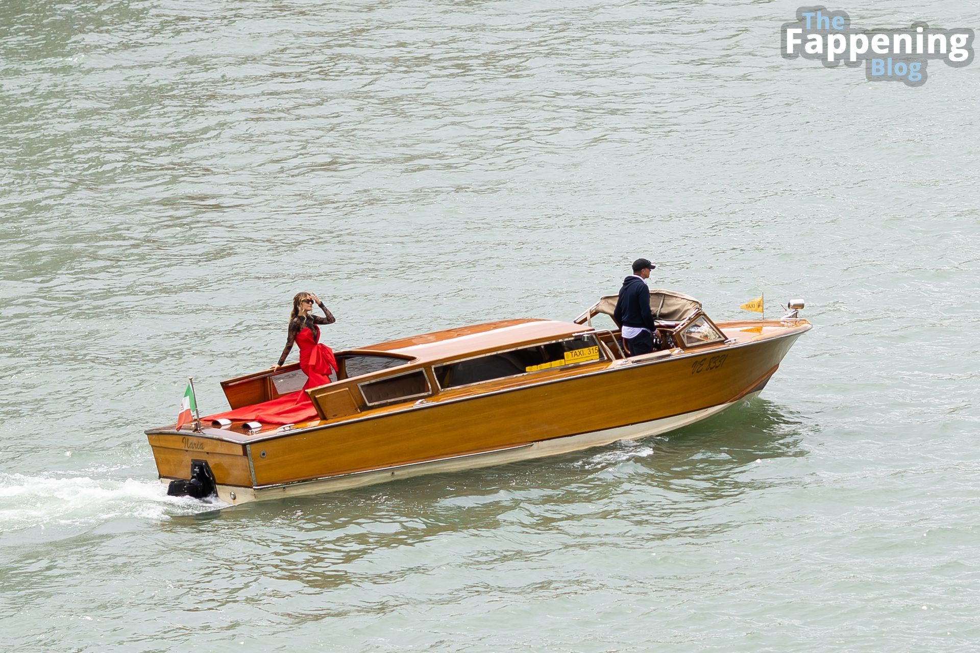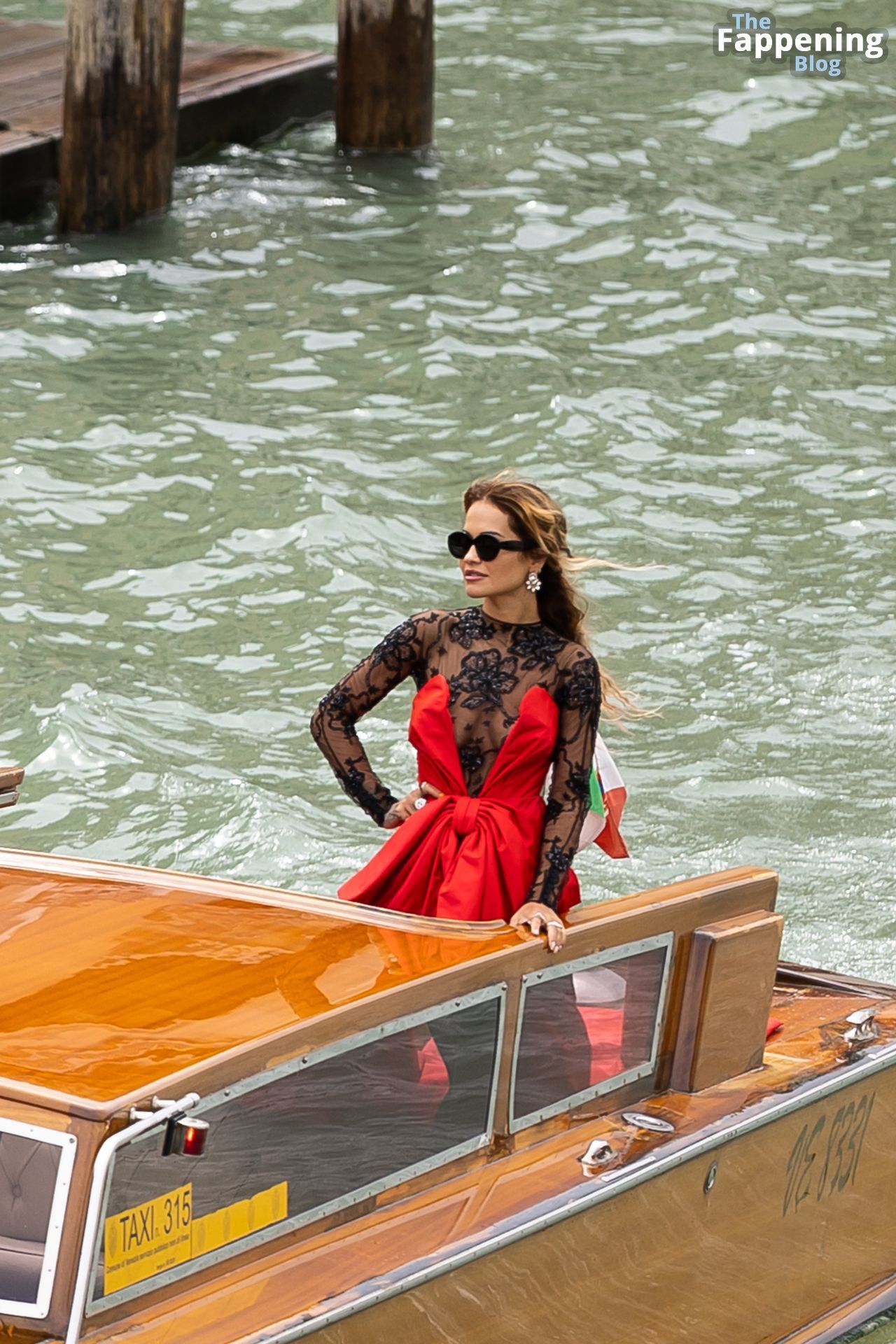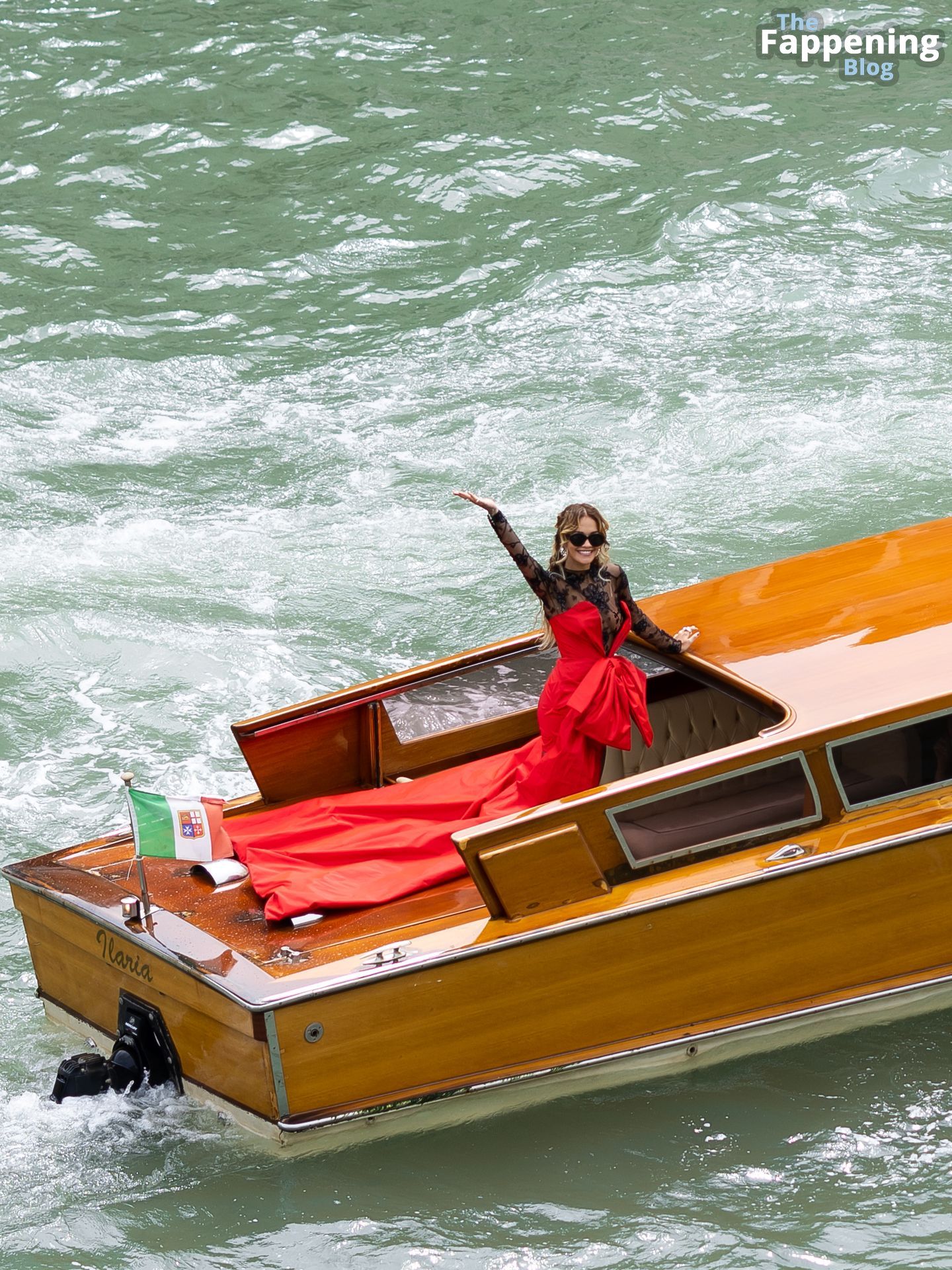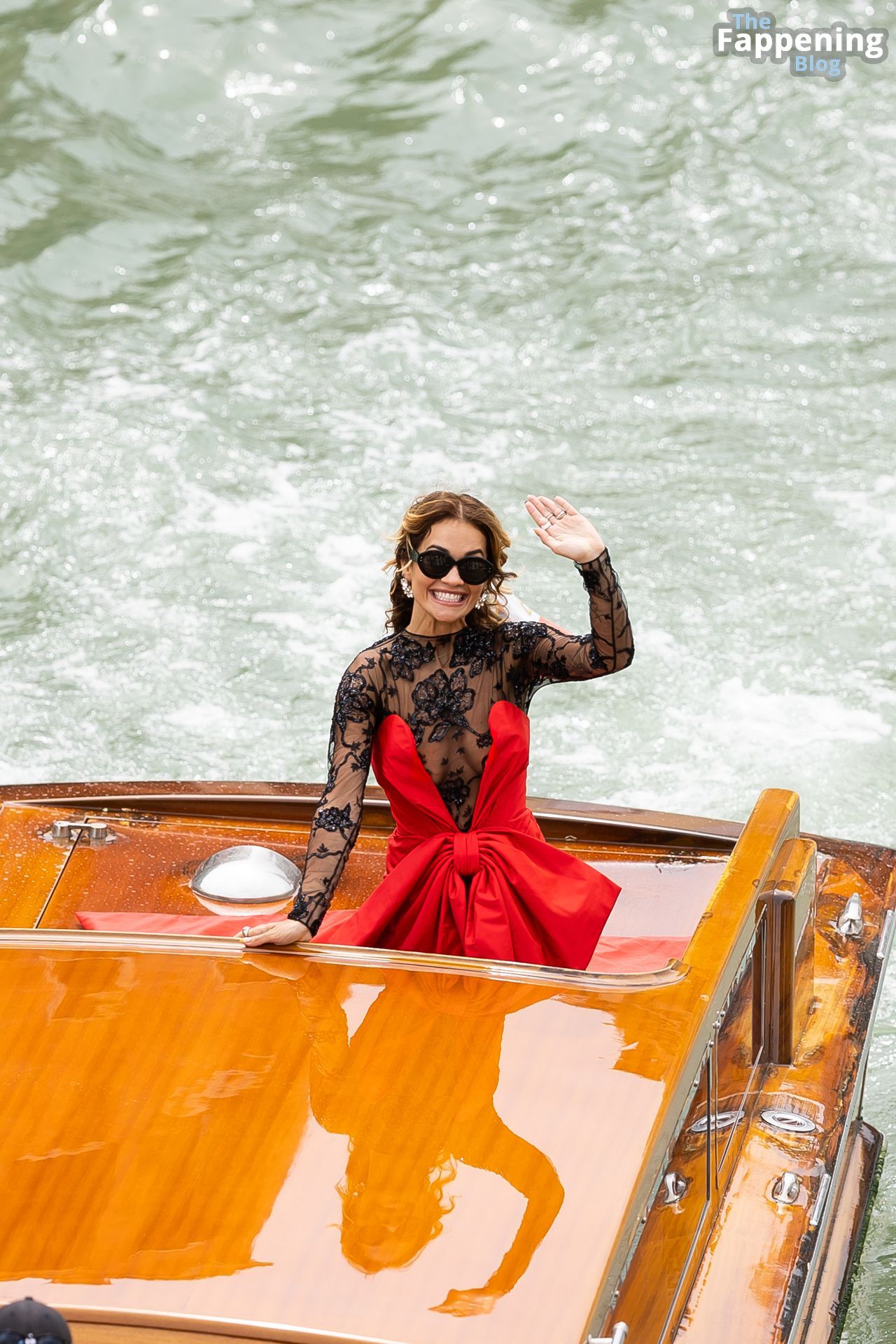 Rita Ora sfoggia un lungo abito rosso Moschino mentre si dirige verso una barca a Venezia, la sua stylist l’ha aiutata sulla barca e poi ha scattato alcune foto veloci, 30/08/2023.