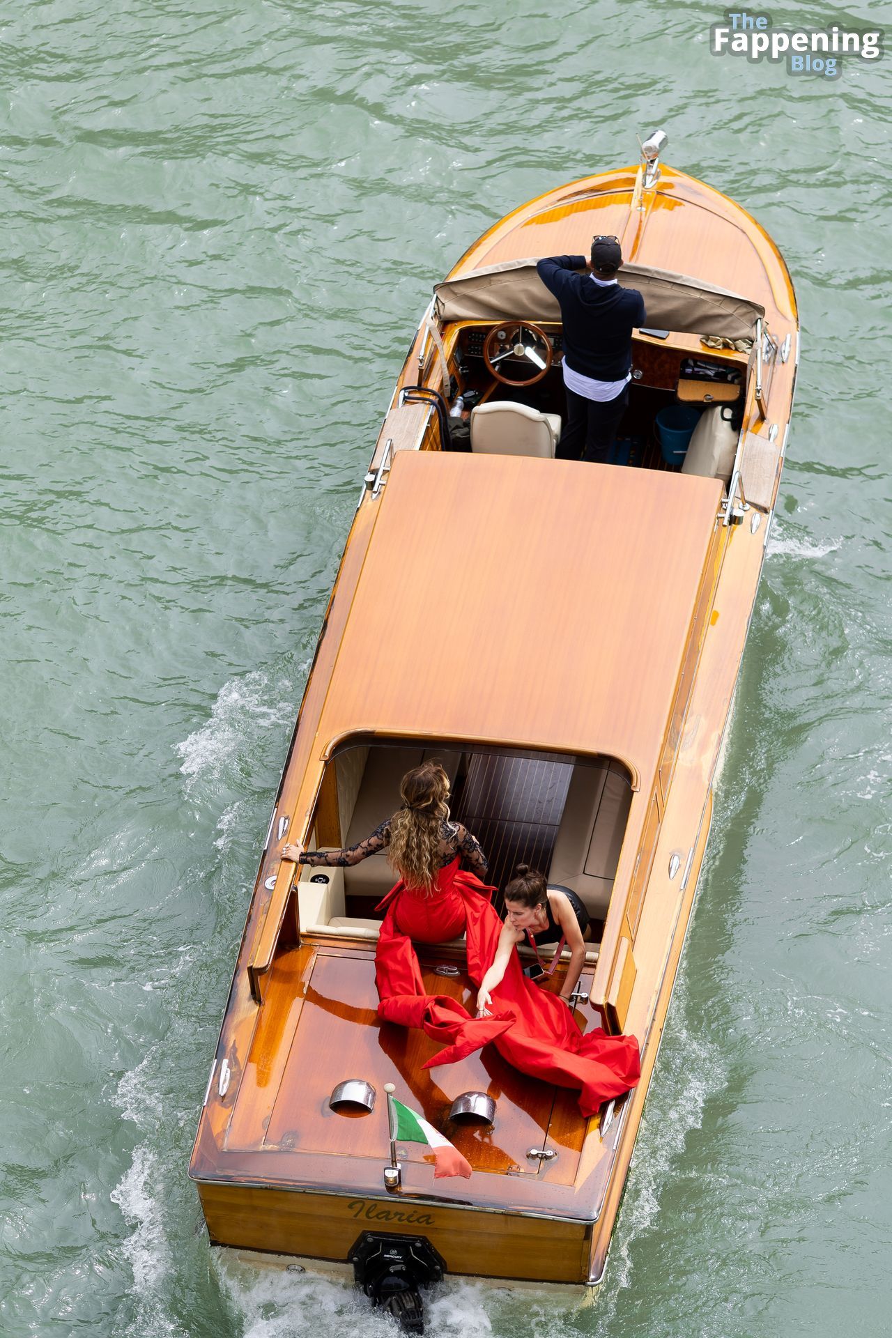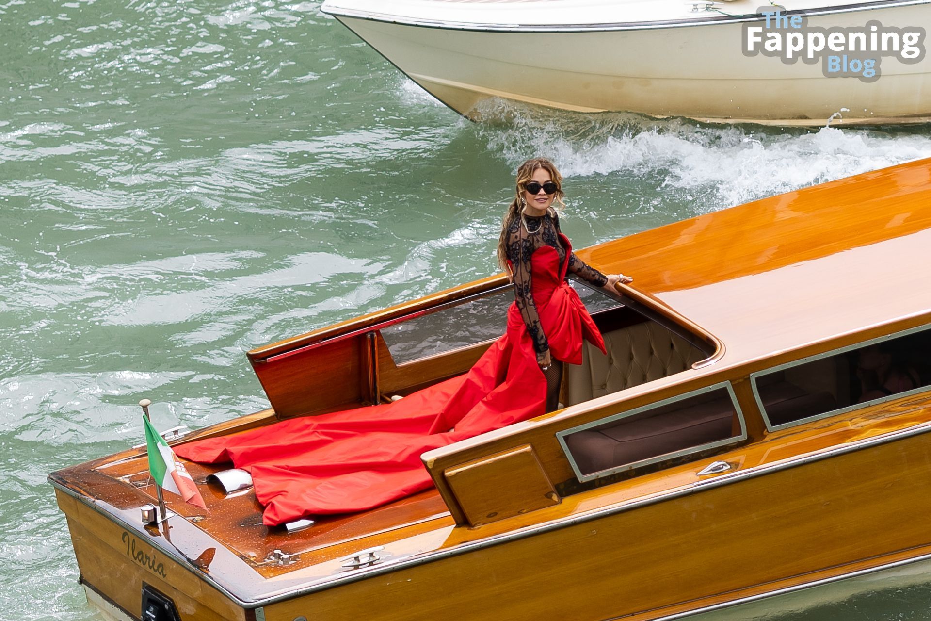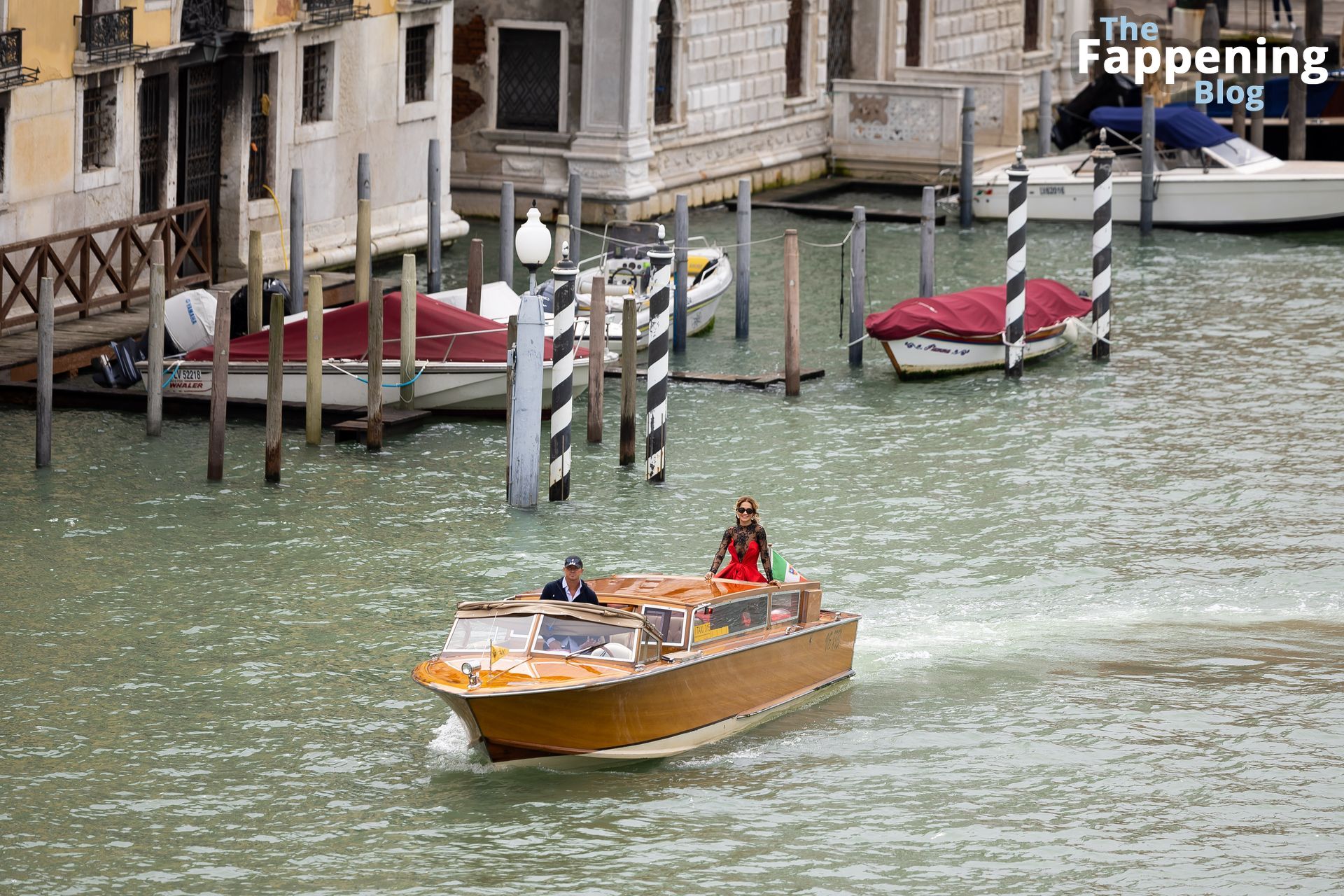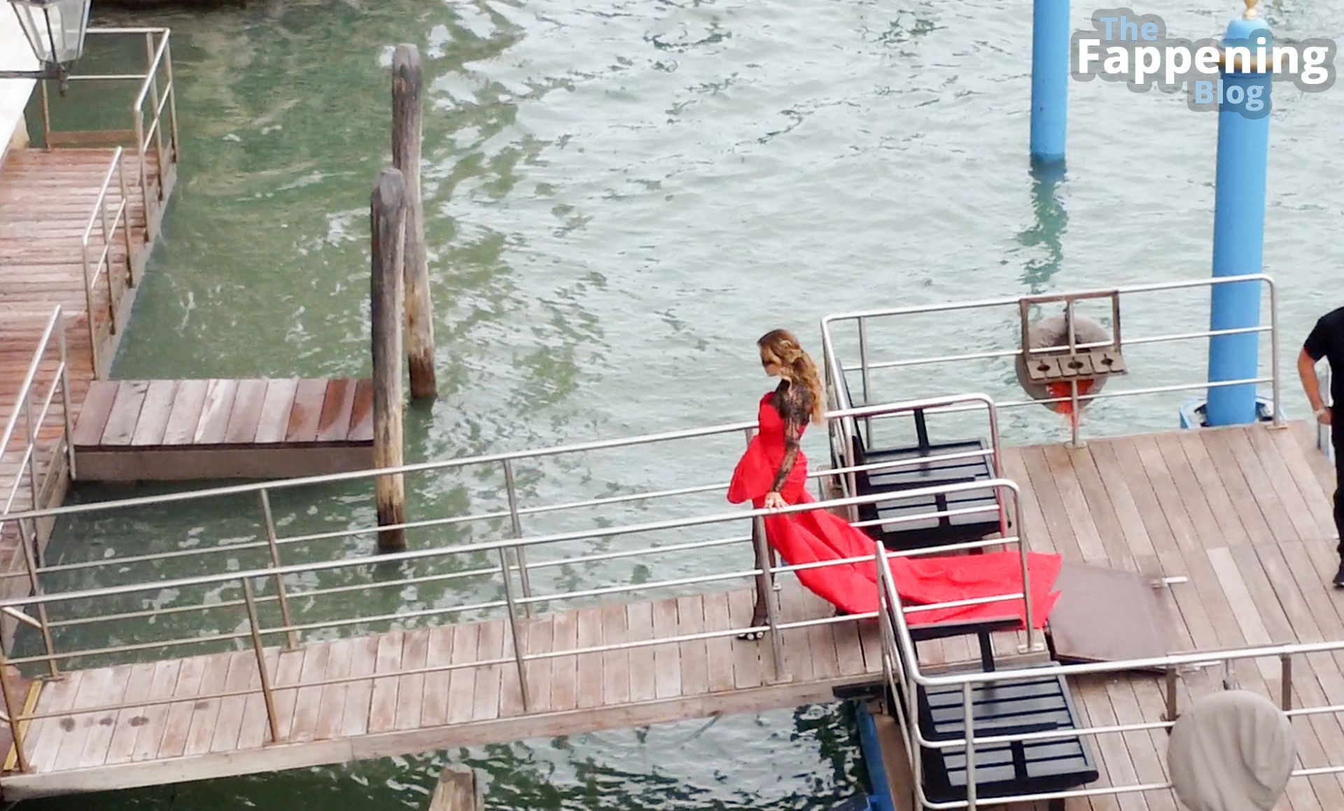 Rita Ora sfoggia un lungo abito rosso Moschino mentre si dirige verso una barca a Venezia, la sua stylist l’ha aiutata sulla barca e poi ha scattato alcune foto veloci, 30/08/2023.