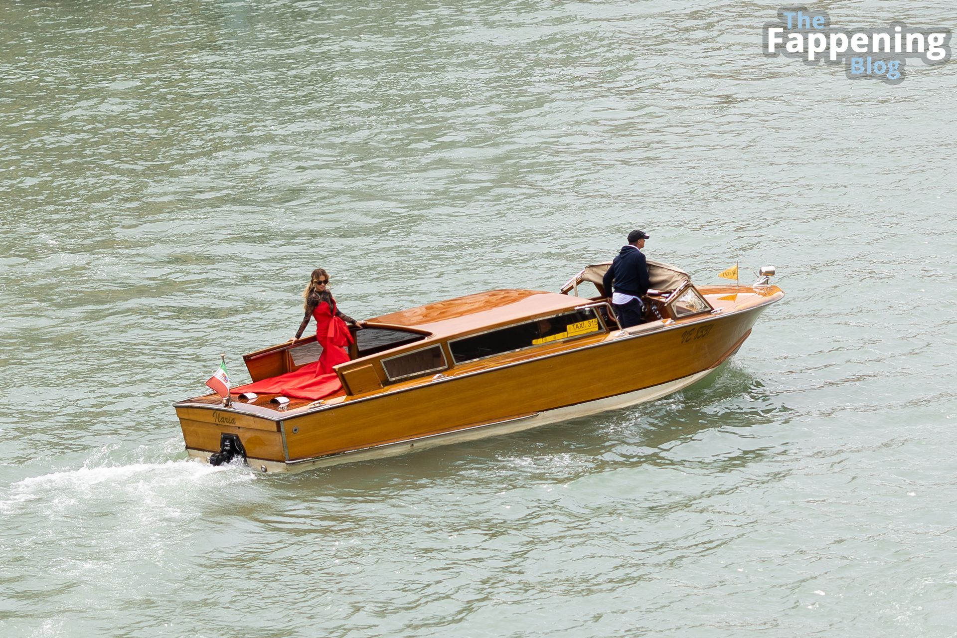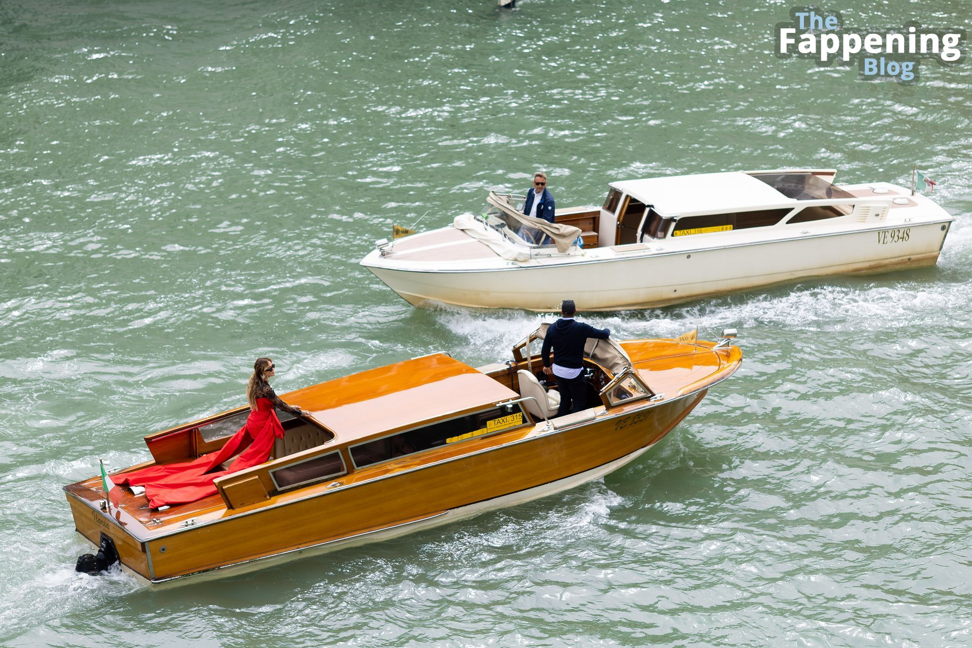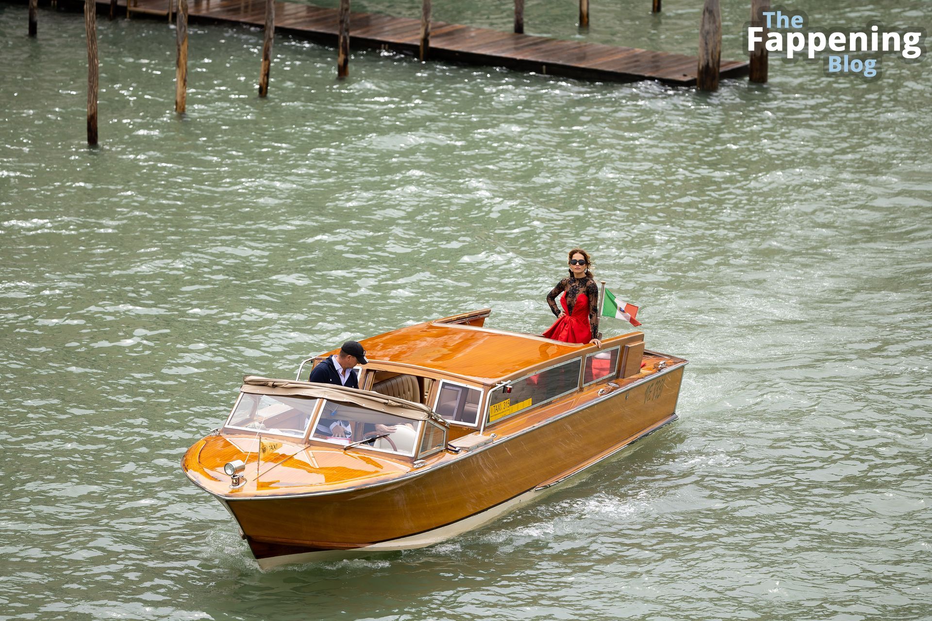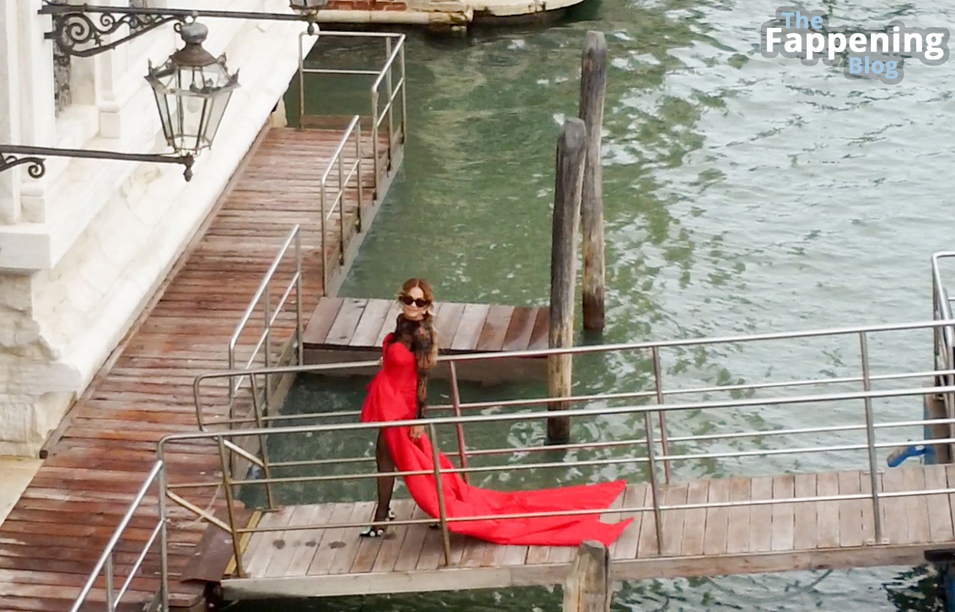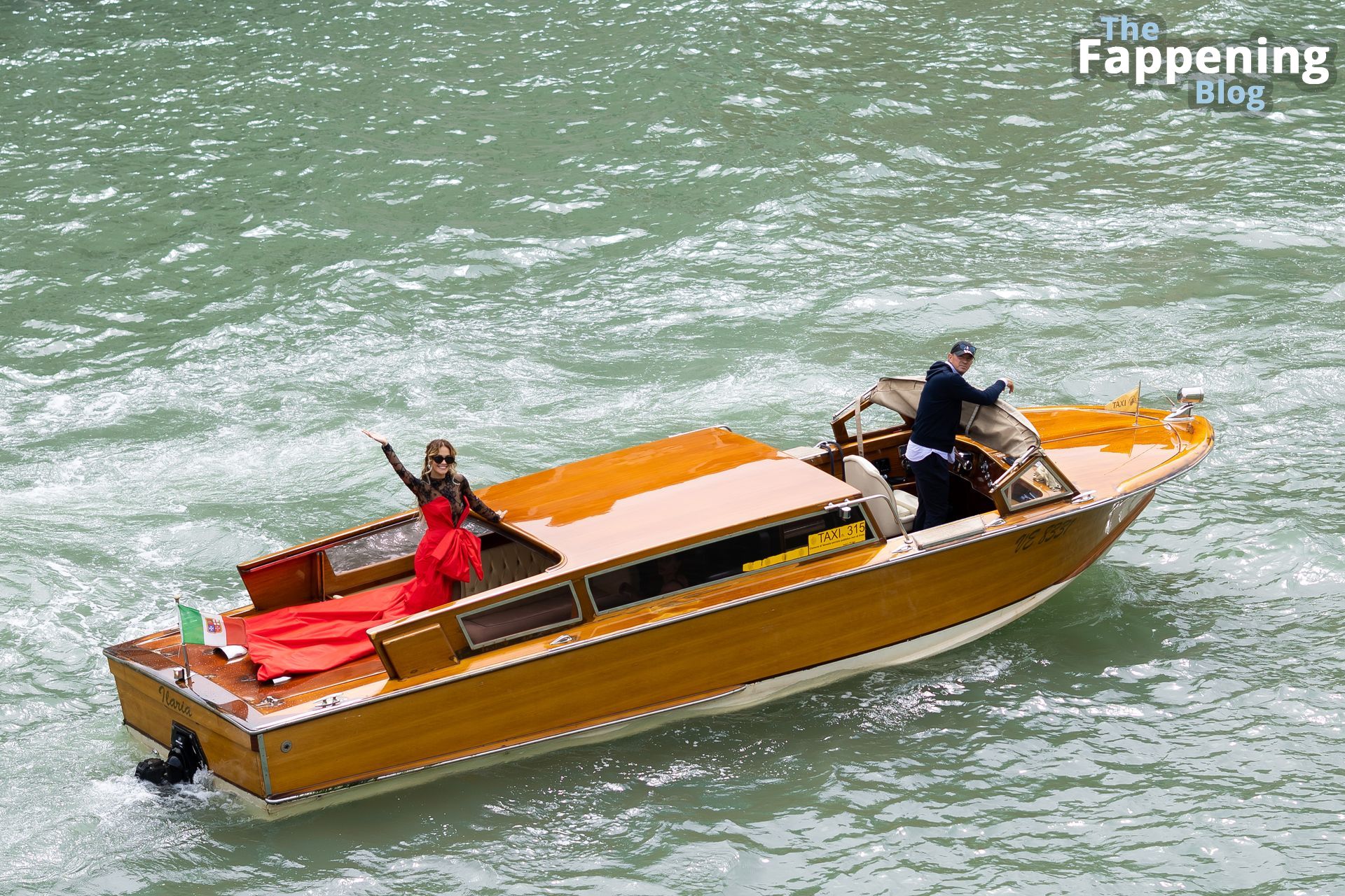 Rita Ora sfoggia un lungo abito rosso Moschino mentre si dirige verso una barca a Venezia, la sua stylist l’ha aiutata sulla barca e poi ha scattato alcune foto veloci, 30/08/2023.