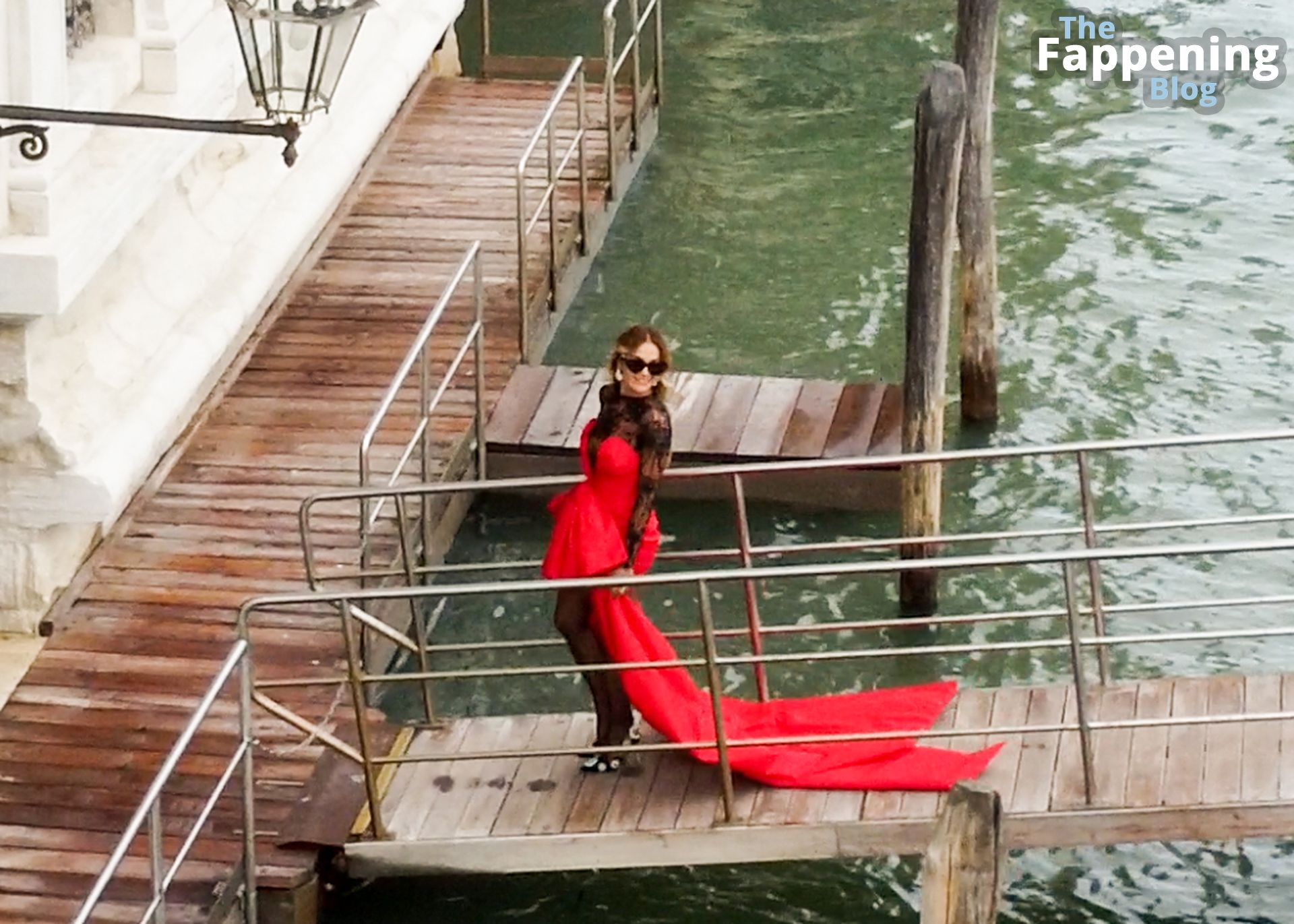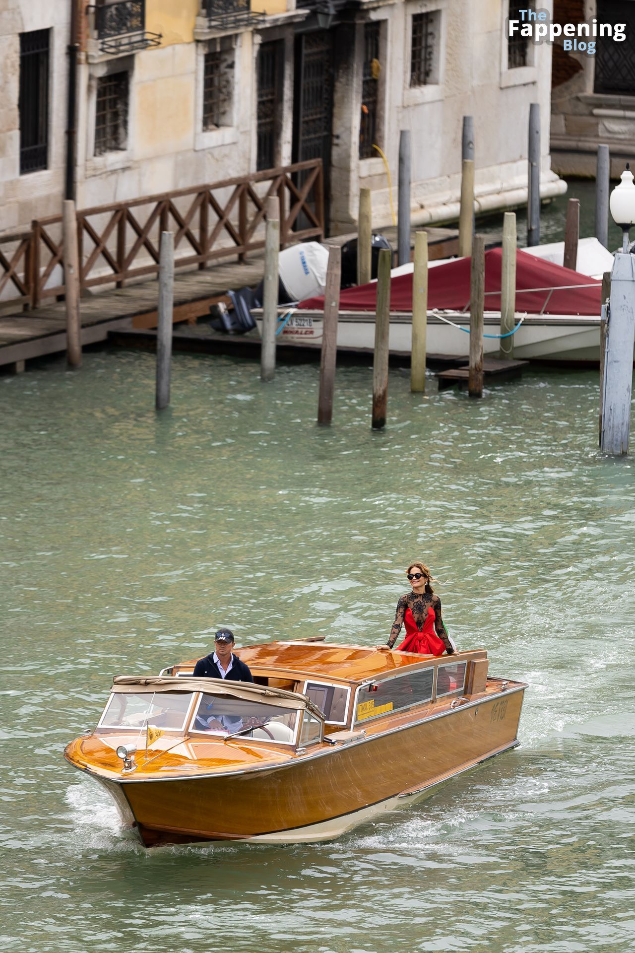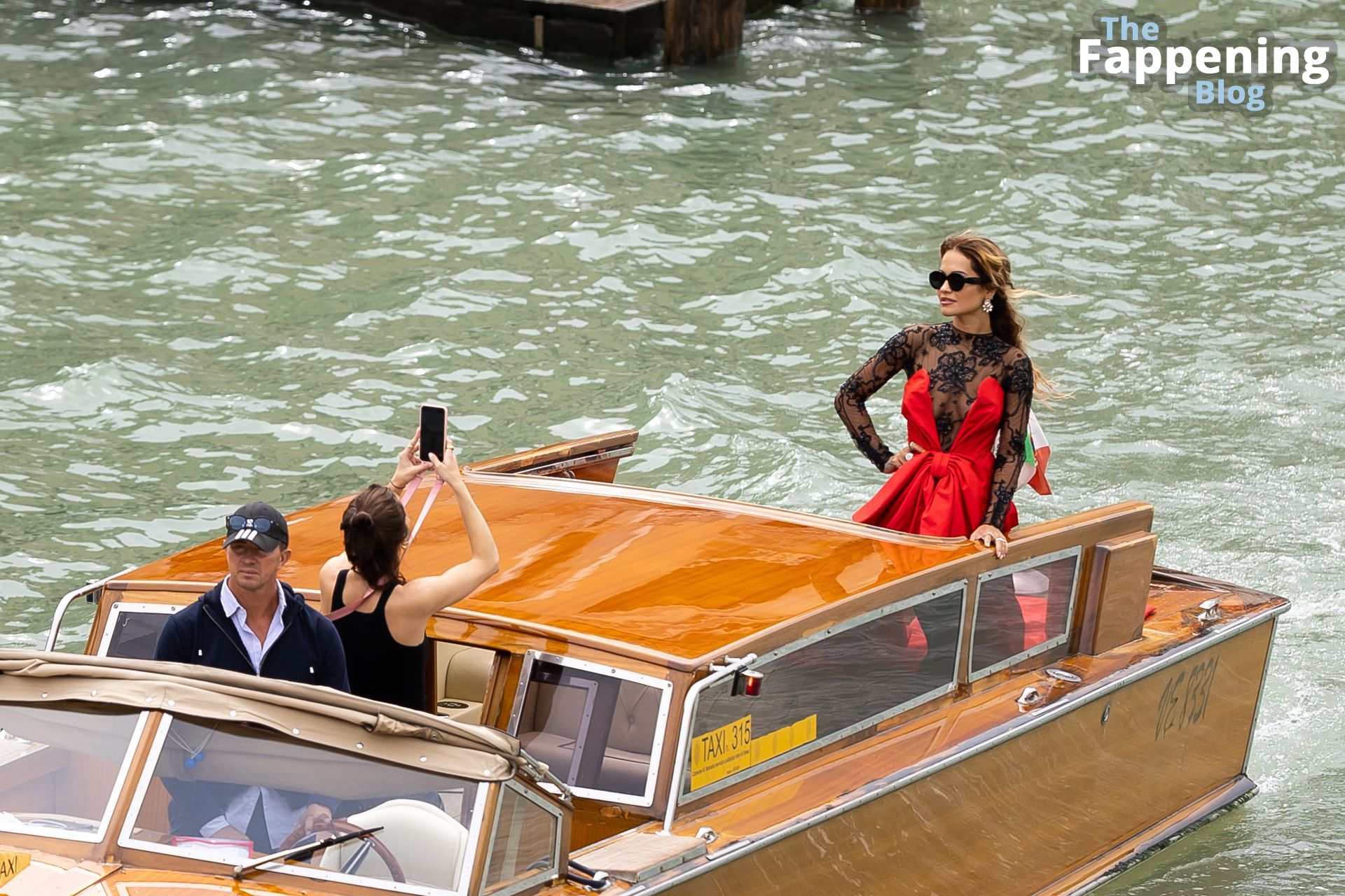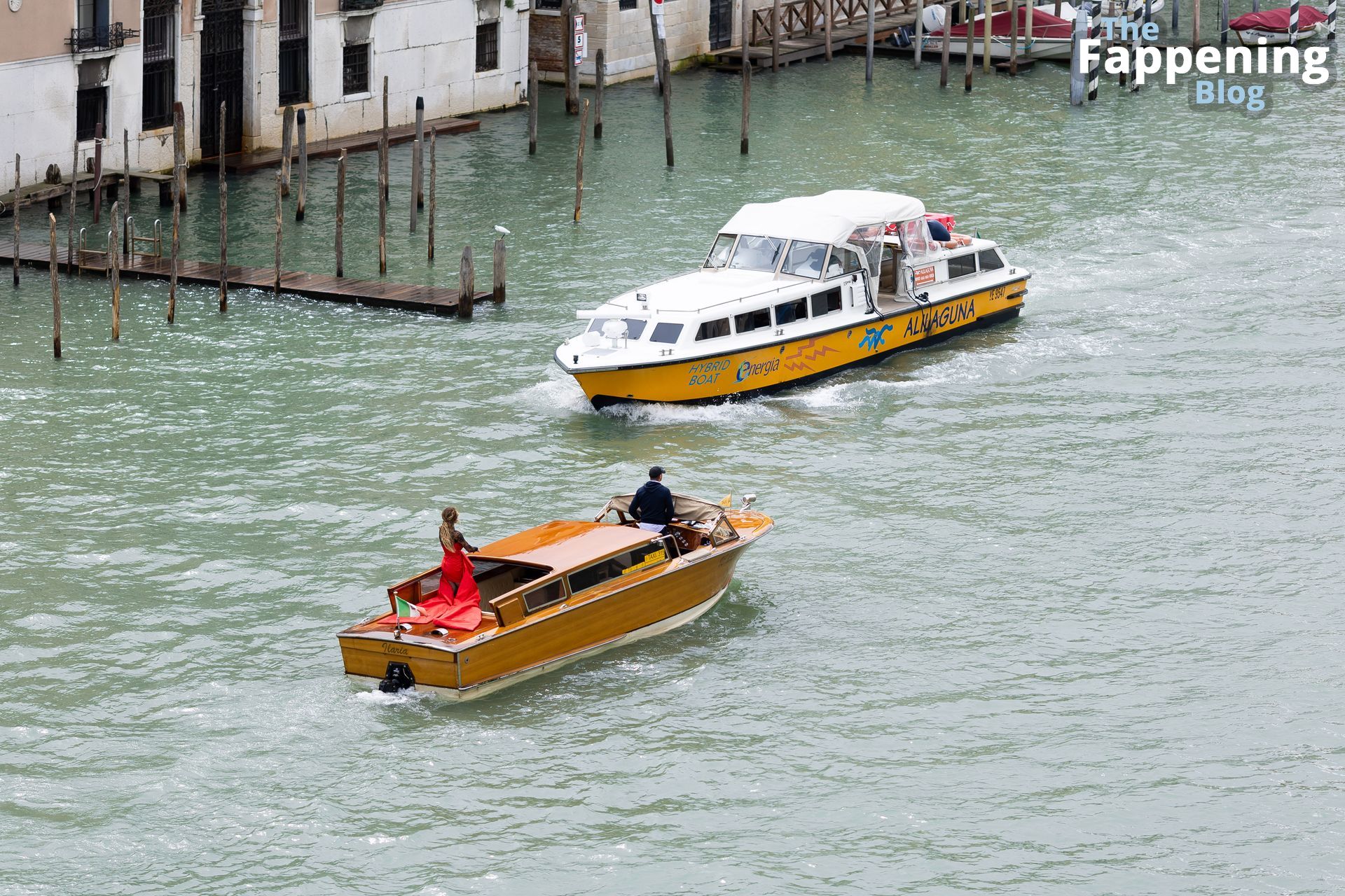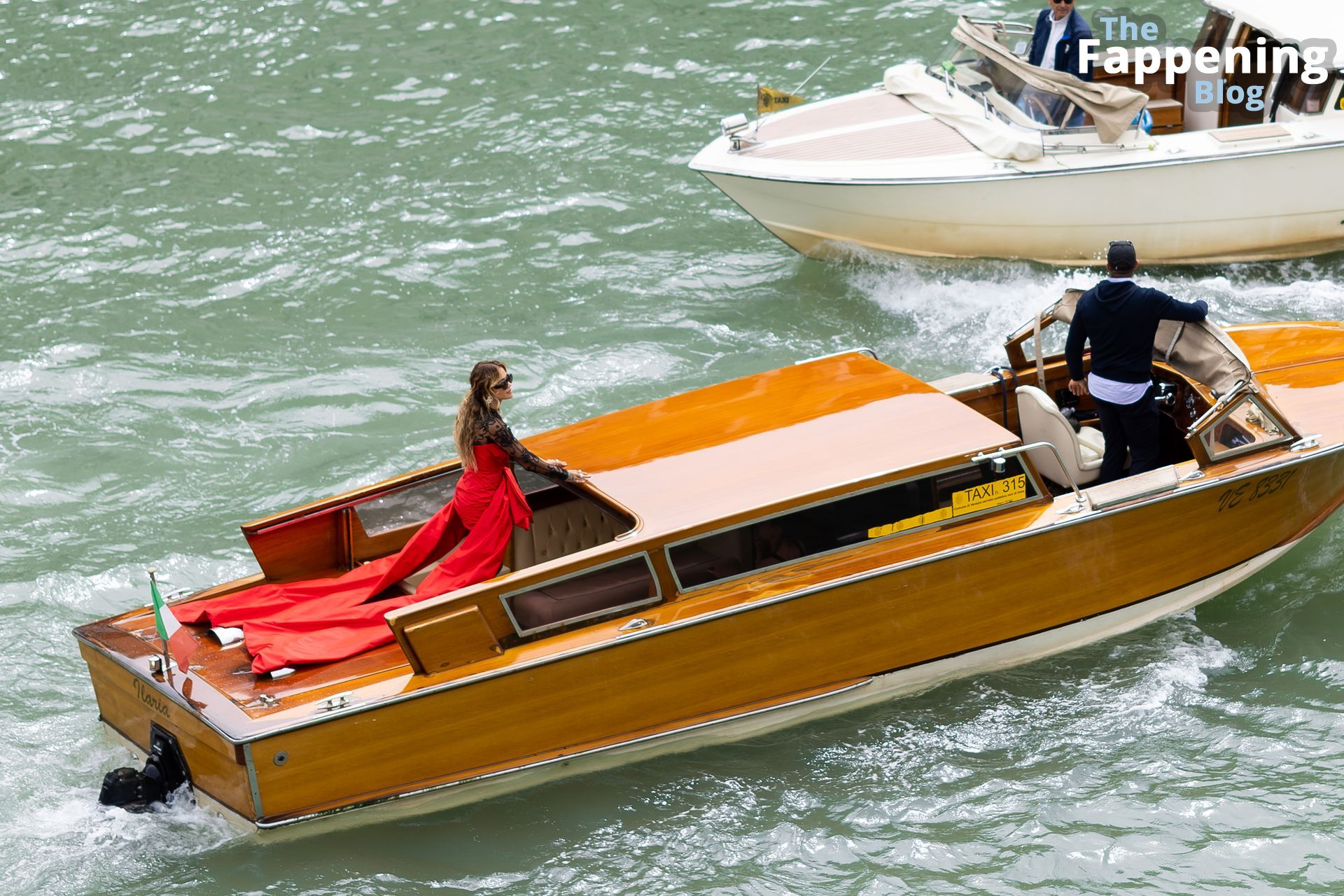 Rita Ora sfoggia un lungo abito rosso Moschino mentre si dirige verso una barca a Venezia, la sua stylist l’ha aiutata sulla barca e poi ha scattato alcune foto veloci, 30/08/2023.