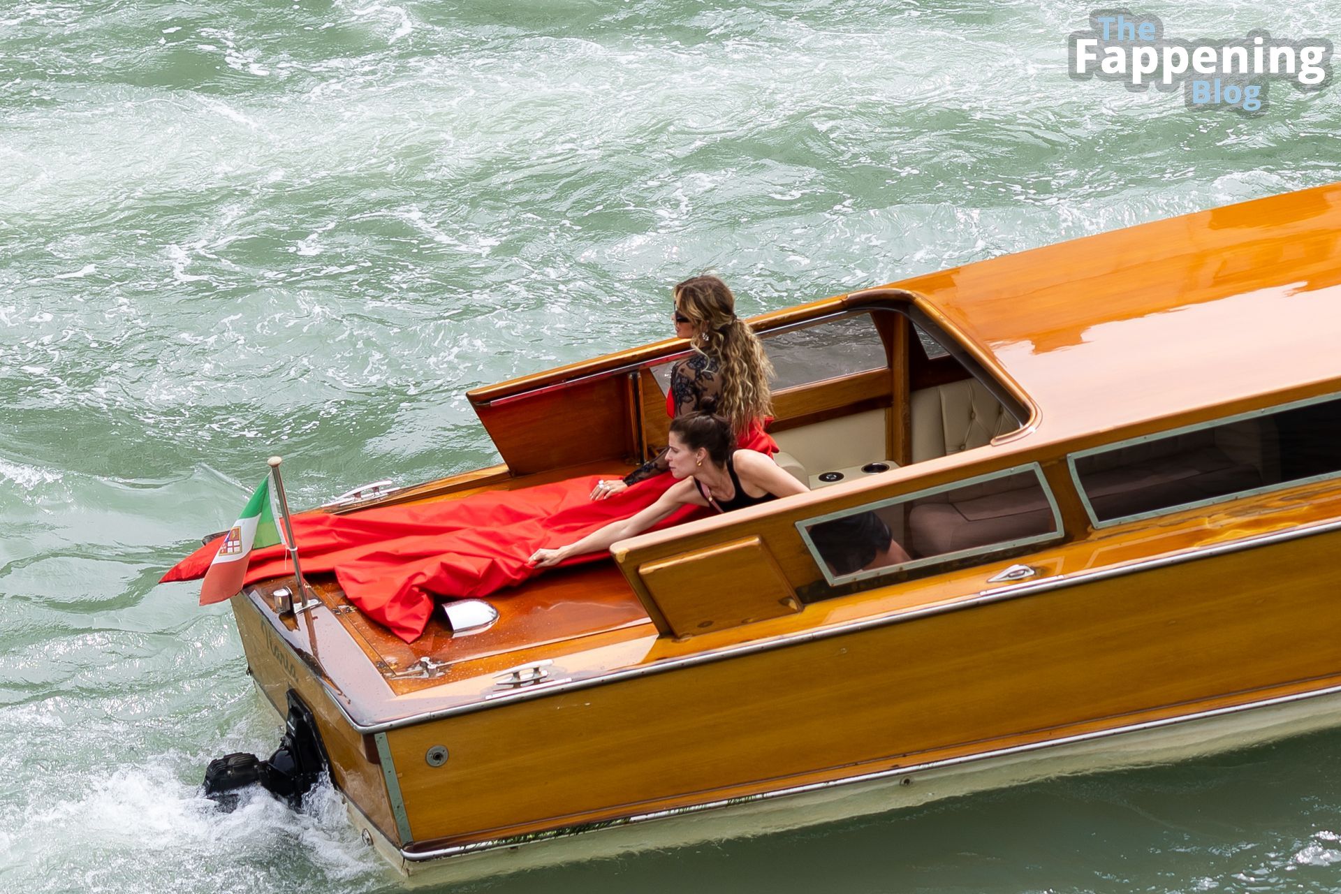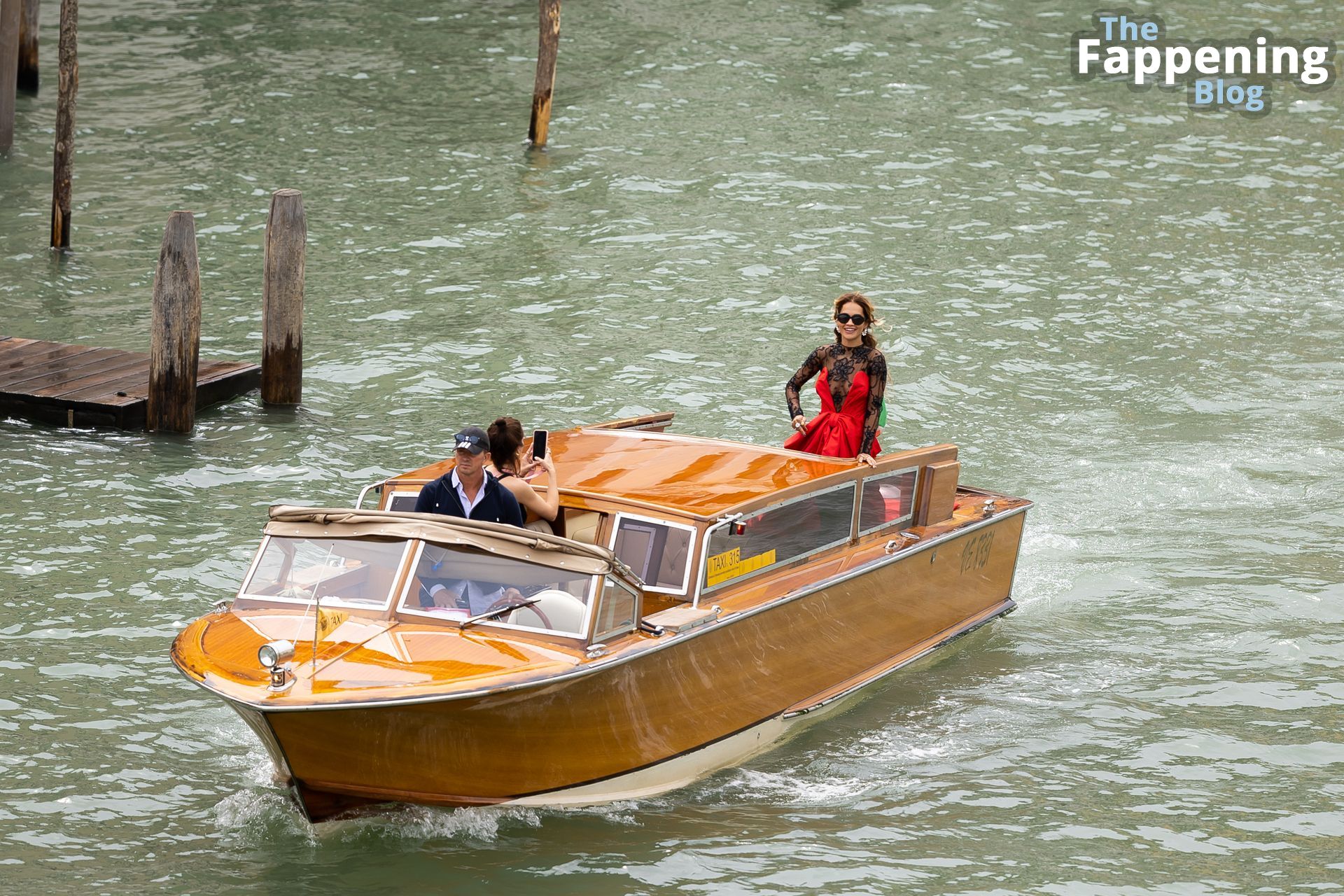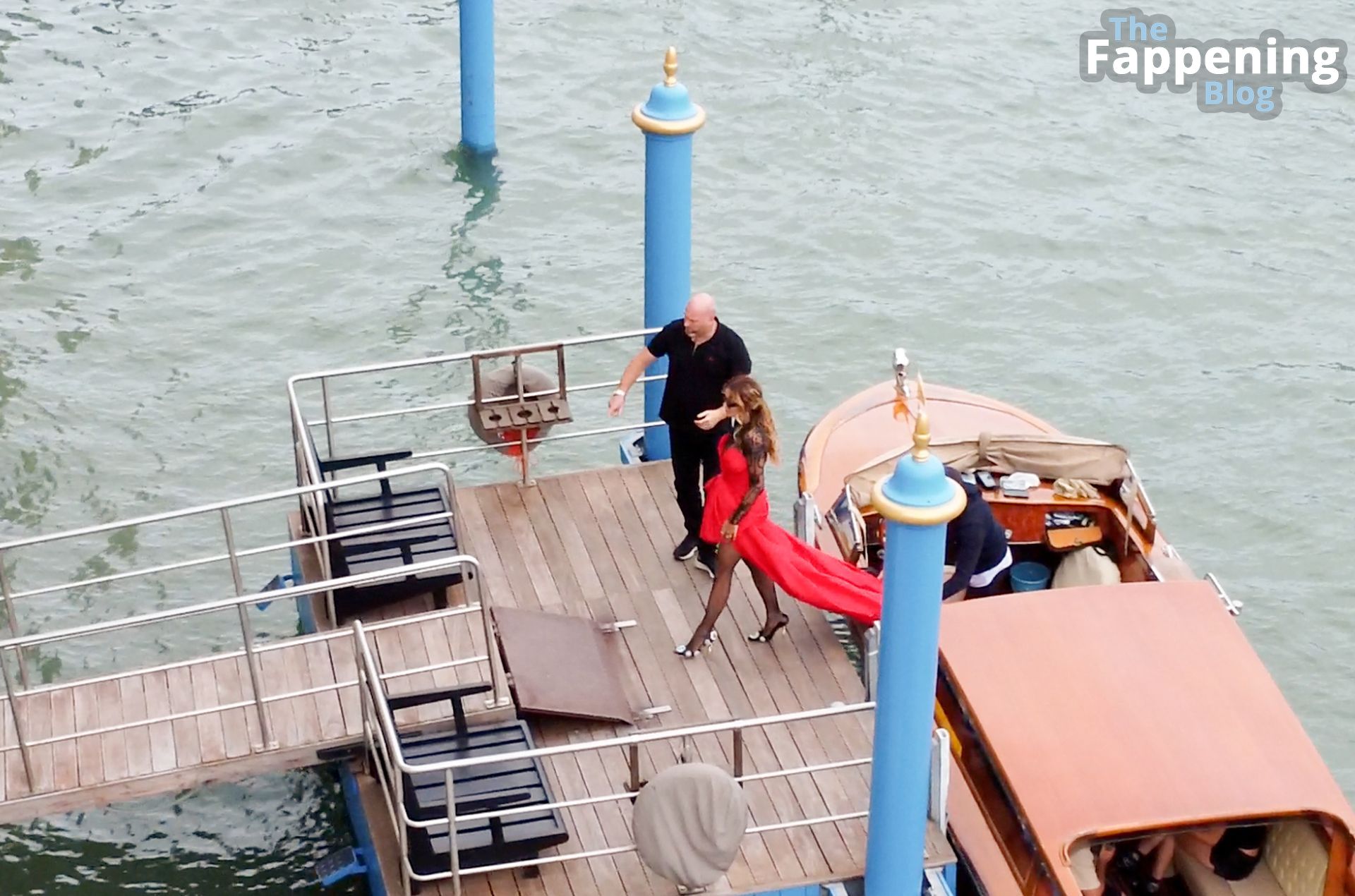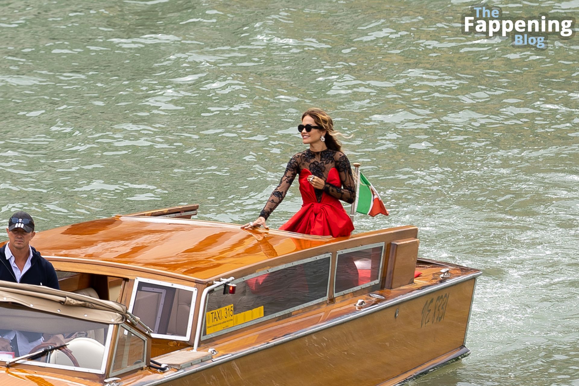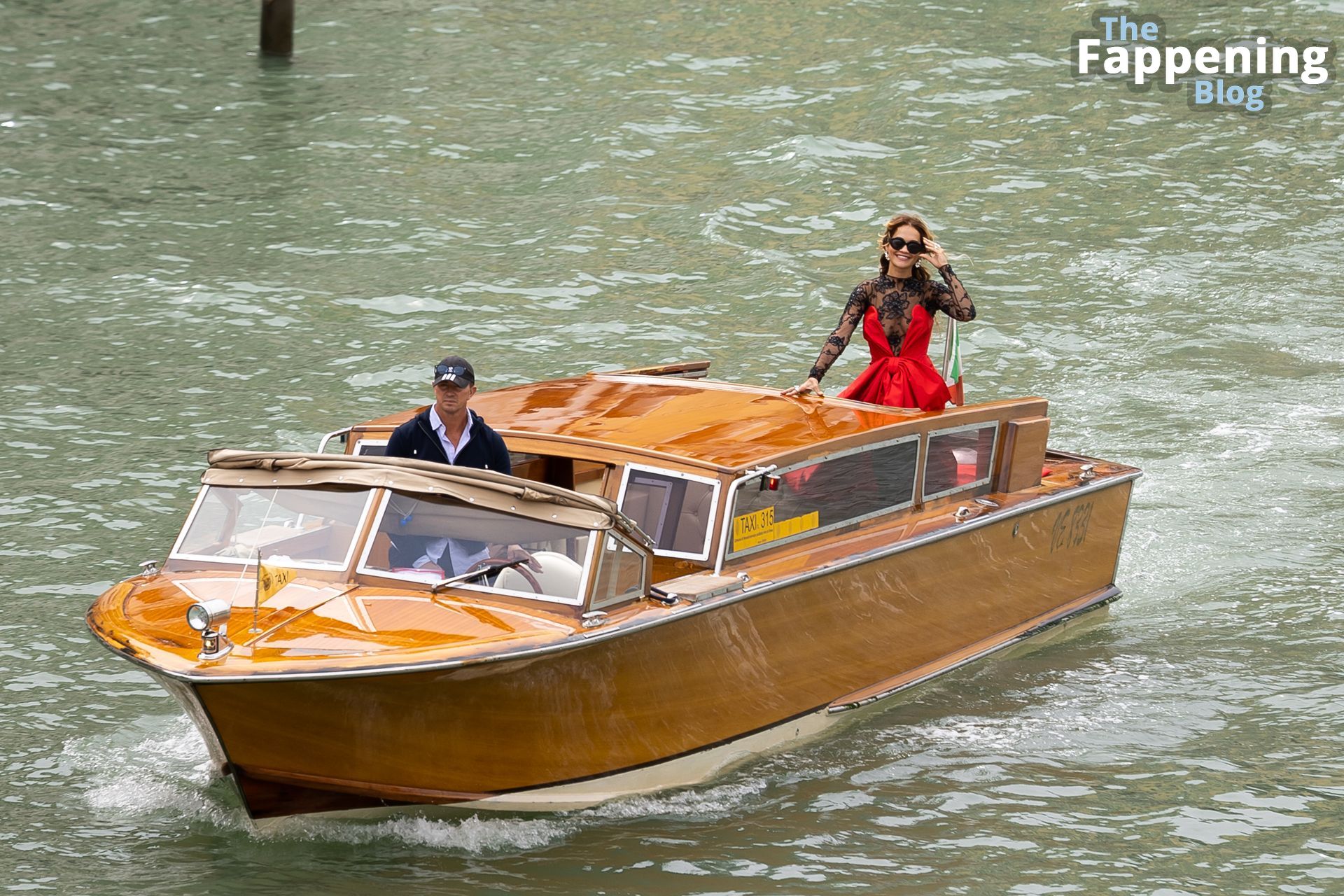 Rita Ora sfoggia un lungo abito rosso Moschino mentre si dirige verso una barca a Venezia, la sua stylist l’ha aiutata sulla barca e poi ha scattato alcune foto veloci, 30/08/2023.