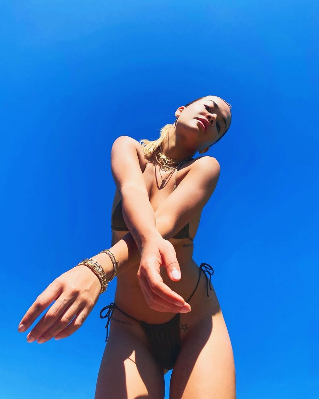 La cantante Rita Ora mostra il suo seno posando in un minuscolo bikini Inamorata per i suoi 16,2 milioni di follower su Instagram, 19/05/2020.