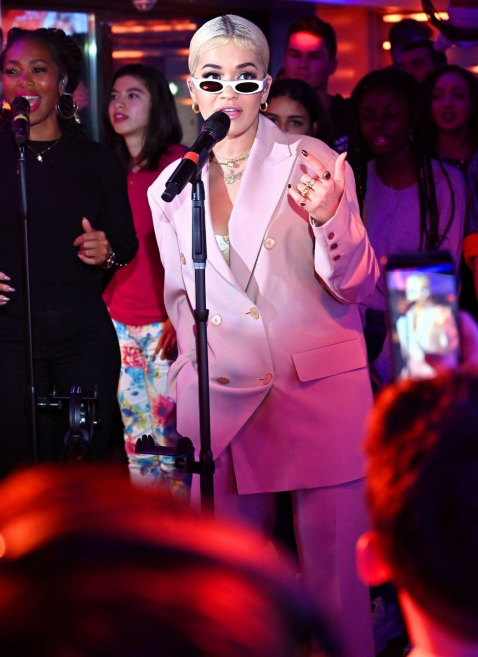 Rita Ora è volata a Parigi, dove la cantante ha rilasciato quasi ogni giorno interviste e si è dedicata alla promozione del suo album “Phoenix.” Per il C’Cauet Show nella capitale francese, la star ha scelto un look rosa spettacolare.