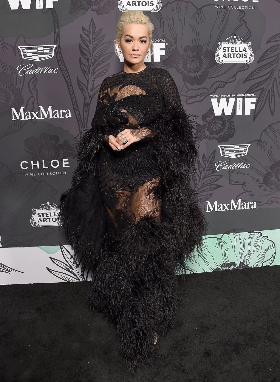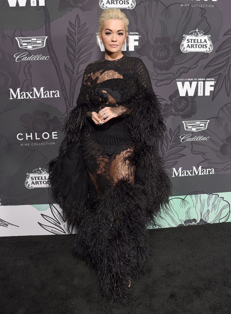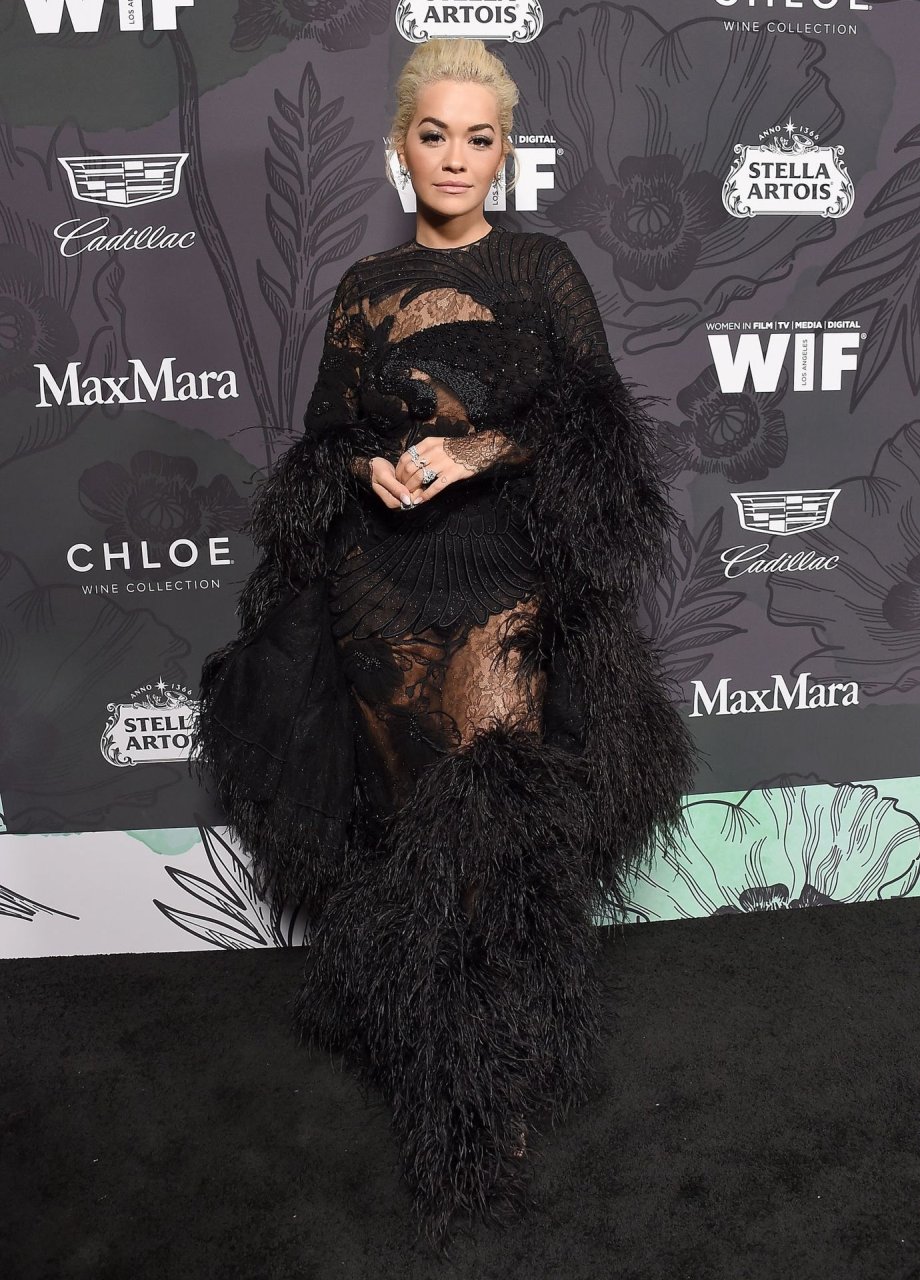 La cantante/attrice Rita Ora incanta con un vestito nero alla 12ª Festa Annuale Women In Film Oscar presso Spring Place a Los Angeles, California, 22/02/2019.