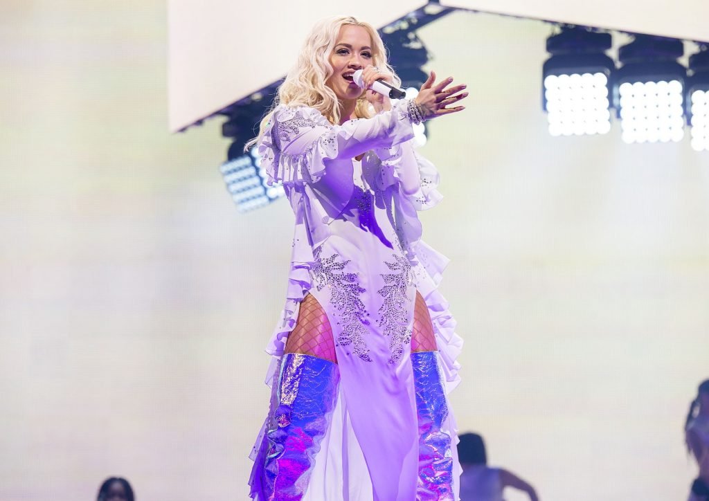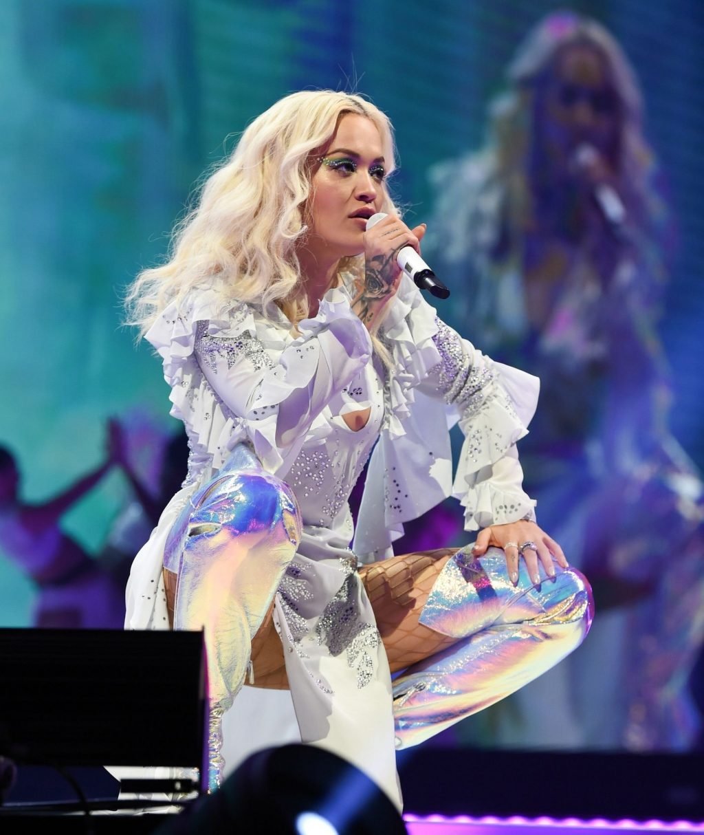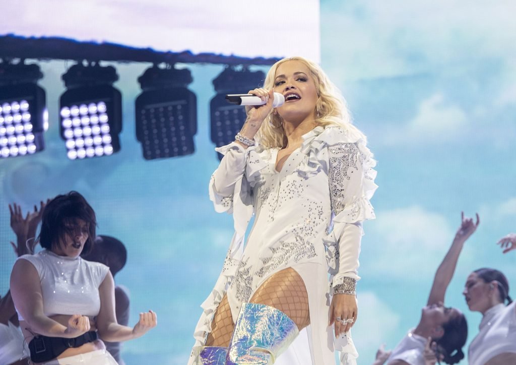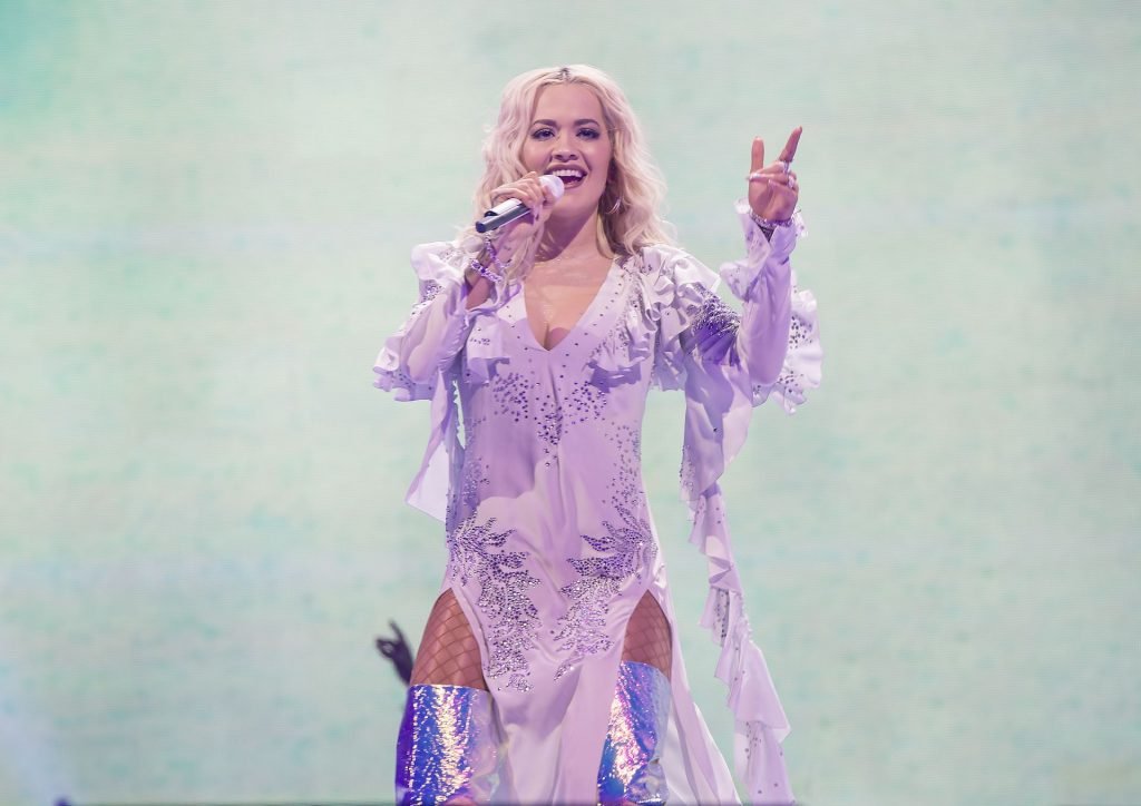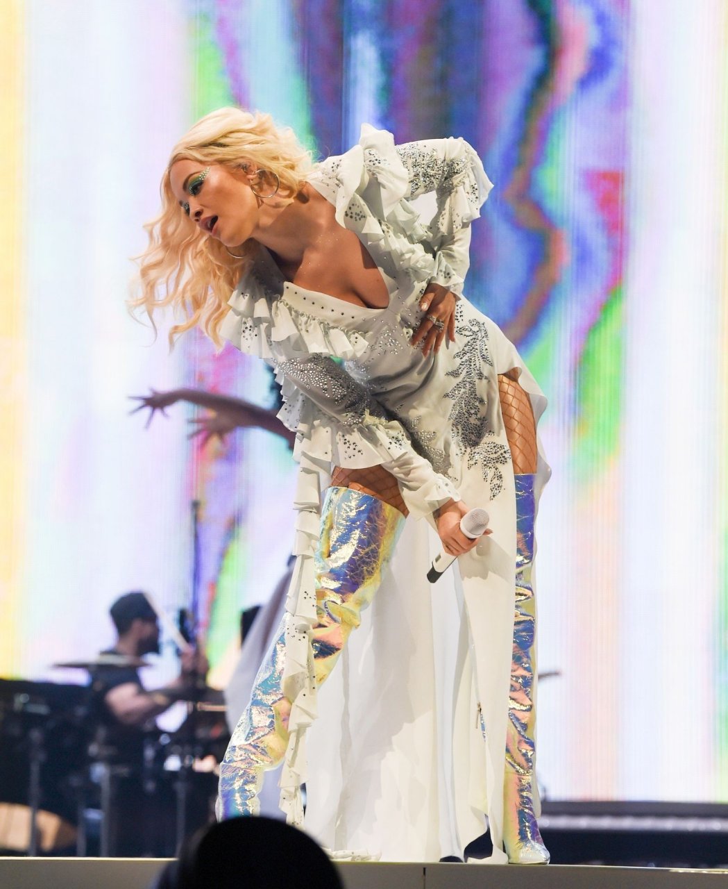 Singer Rita Ora è stata fotografata sul palco durante un concerto live alla Liverpool M & S Bank Arena di Liverpool, 28/05/2019.