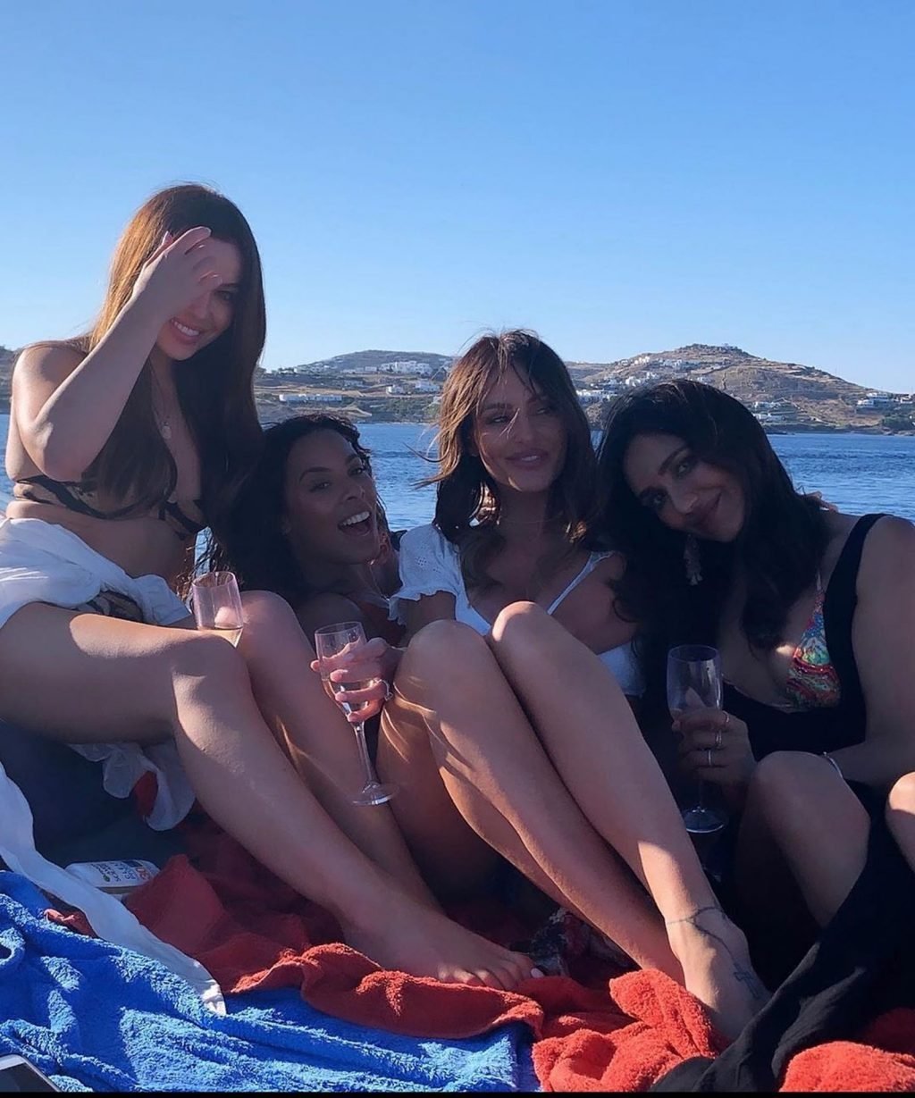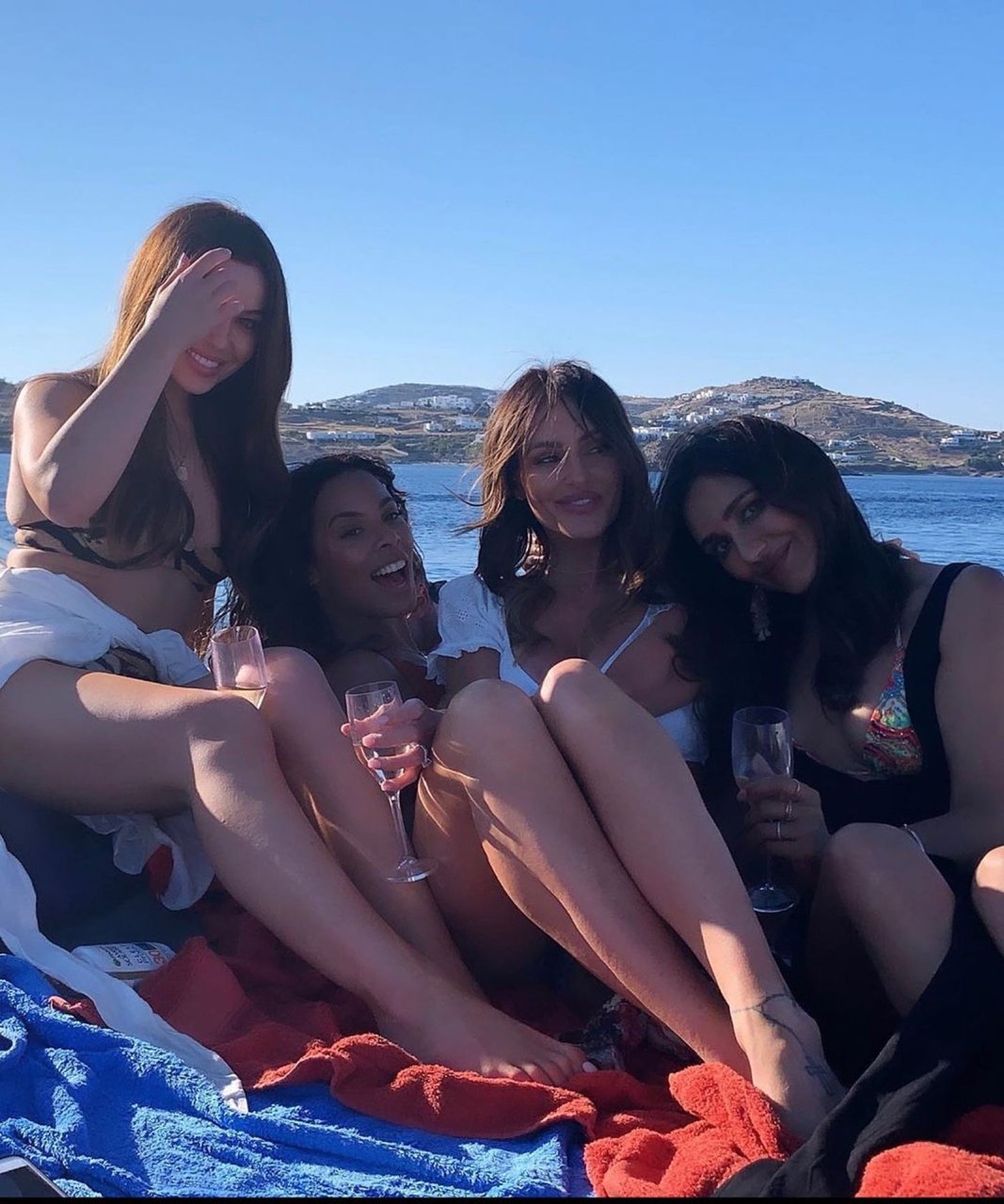 La cantante e presentatrice Rochelle Humes è stata fotografata con il marito Marvin Humes e la migliore amica Georgina Dorsett e il suo partner, il calciatore Tom Cleverley, in vacanza insieme nella splendida isola di Mykonos, 06/05/2019.