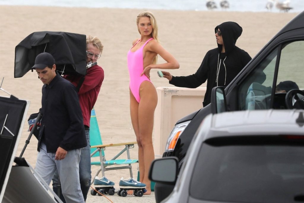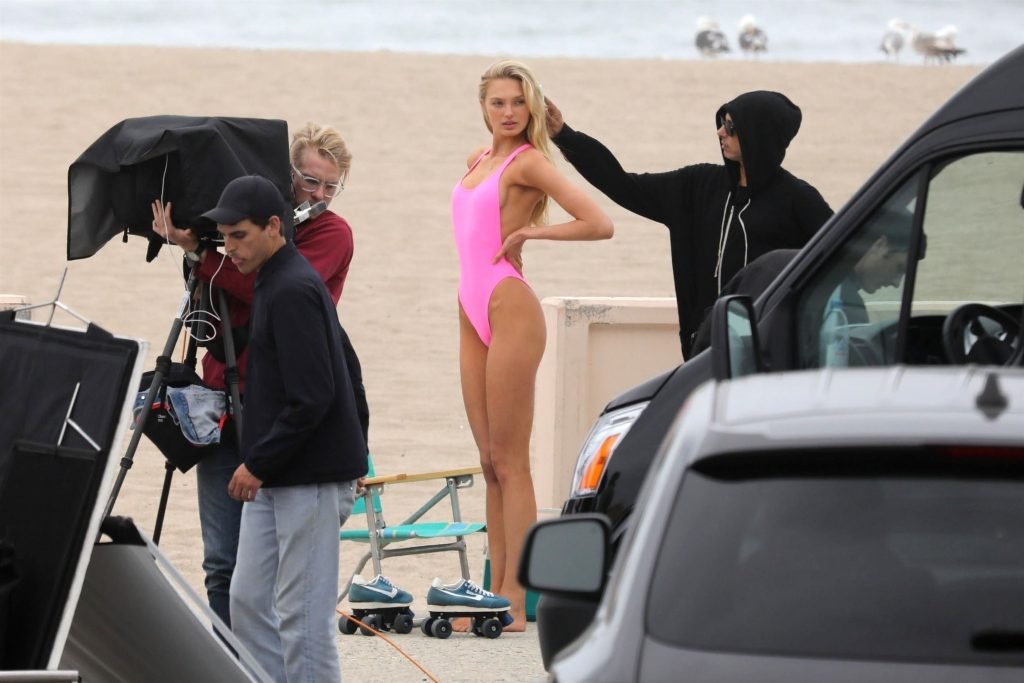 Dutch supermodel, Victoria’s Secret Angel Romee Van Strijd (22) è stata fotografata mentre posava sulla spiaggia per un servizio fotografico a Malibu, 13/05/2018. Romee mostrava il suo corpo tonico con un costume da bagno rosa.