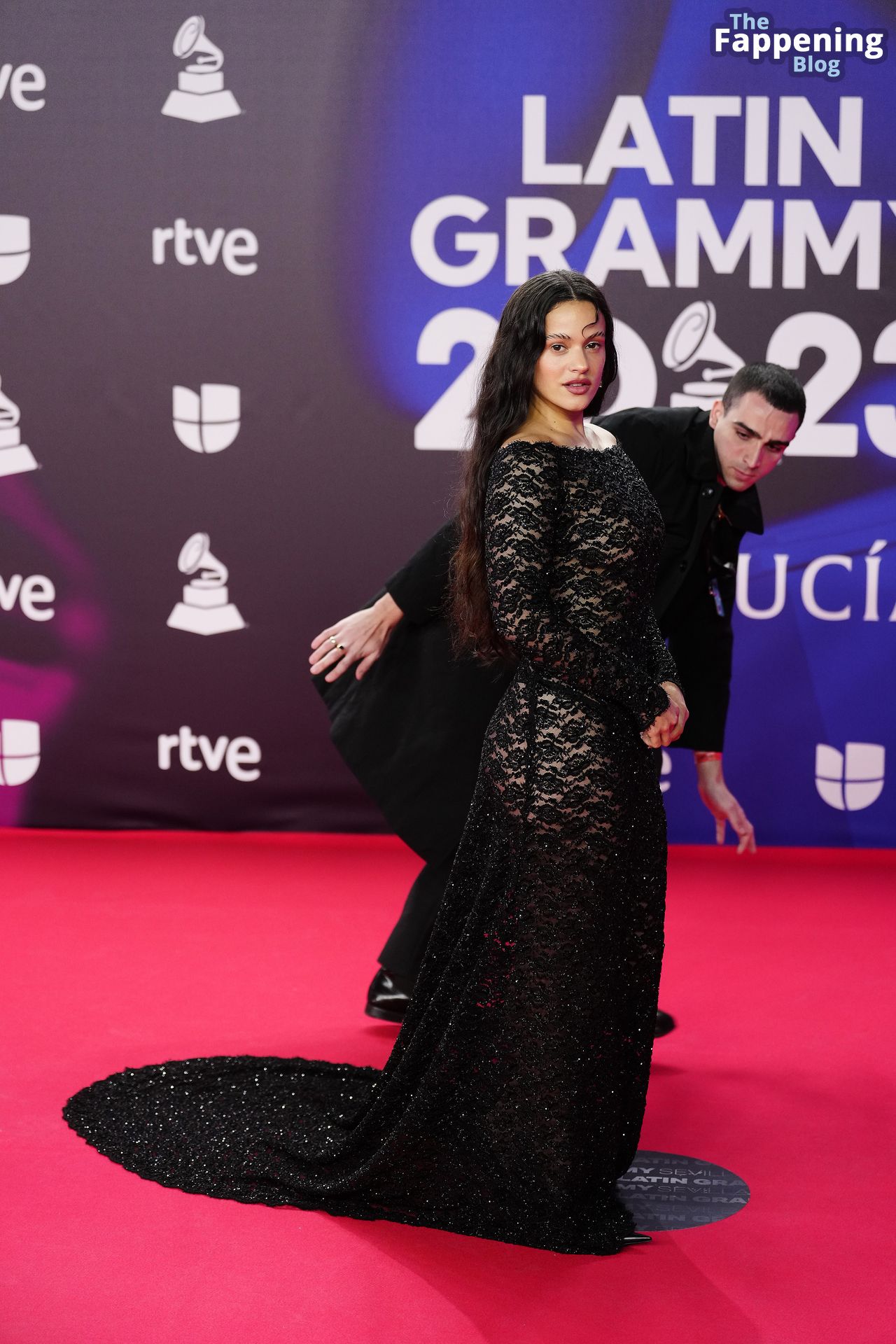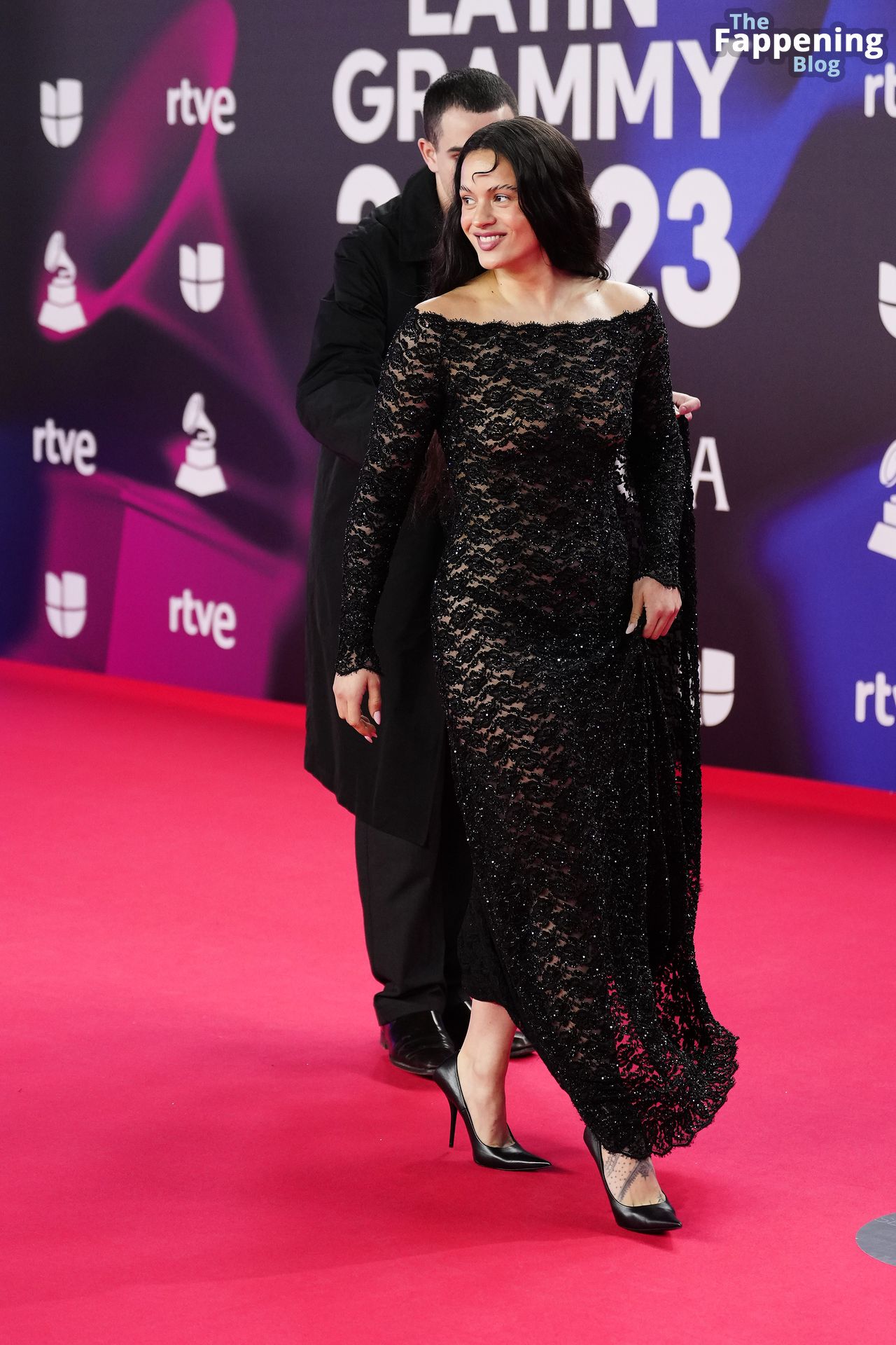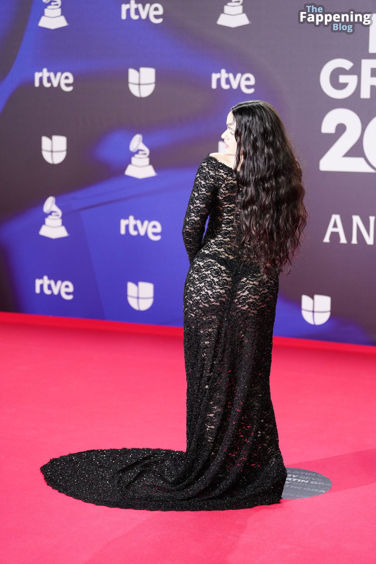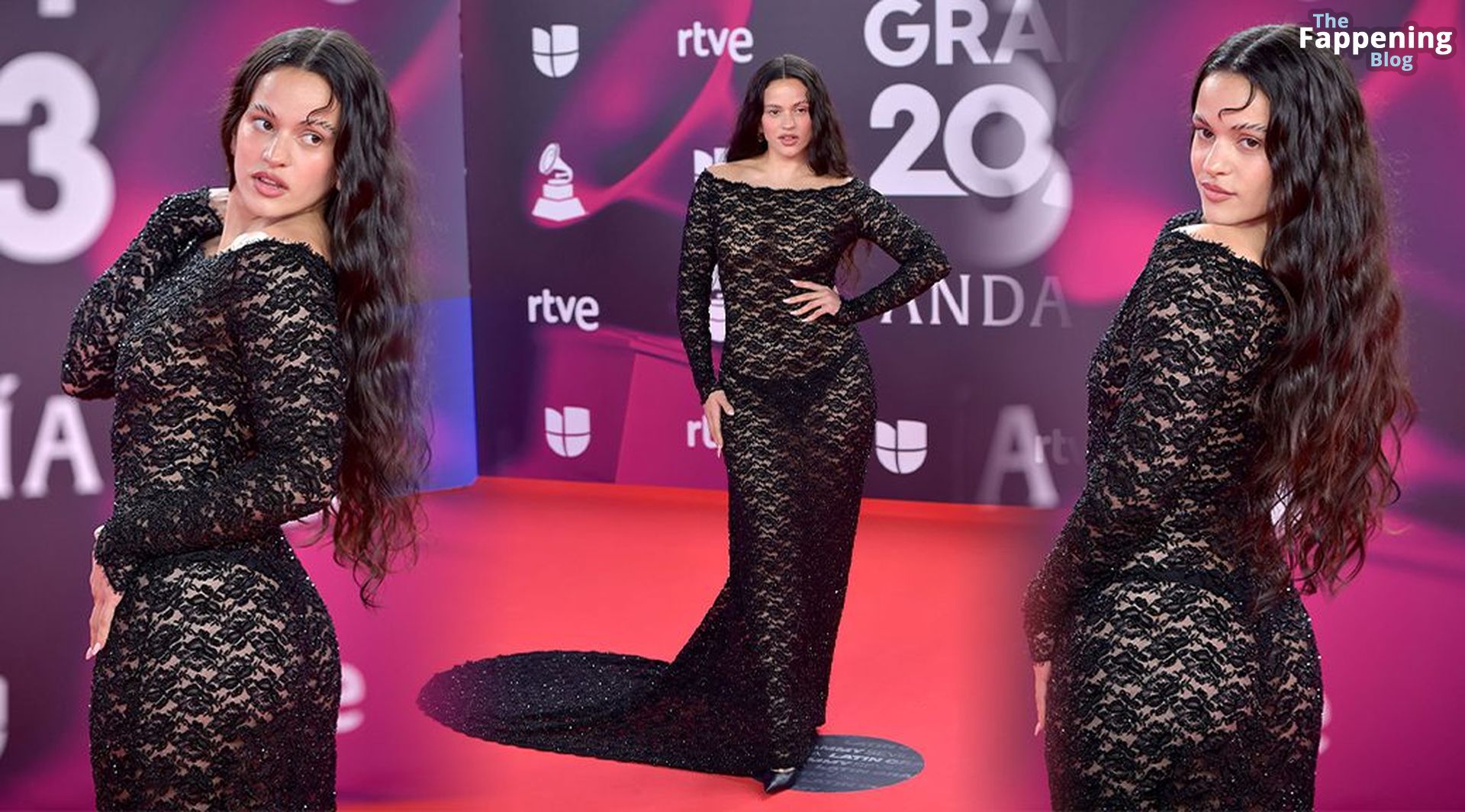 Preparati a rimanere sbalordito dallo stile killer di Rosalia ai Latin GRAMMY Awards a Siviglia. Indossa un vestito nero trasparente che mette in mostra un sexy perizoma nero e un sedere assolutamente da urlo. Il photocall all’ingresso dell’evento era pieno di celebrità che facevano sentire la loro presenza.