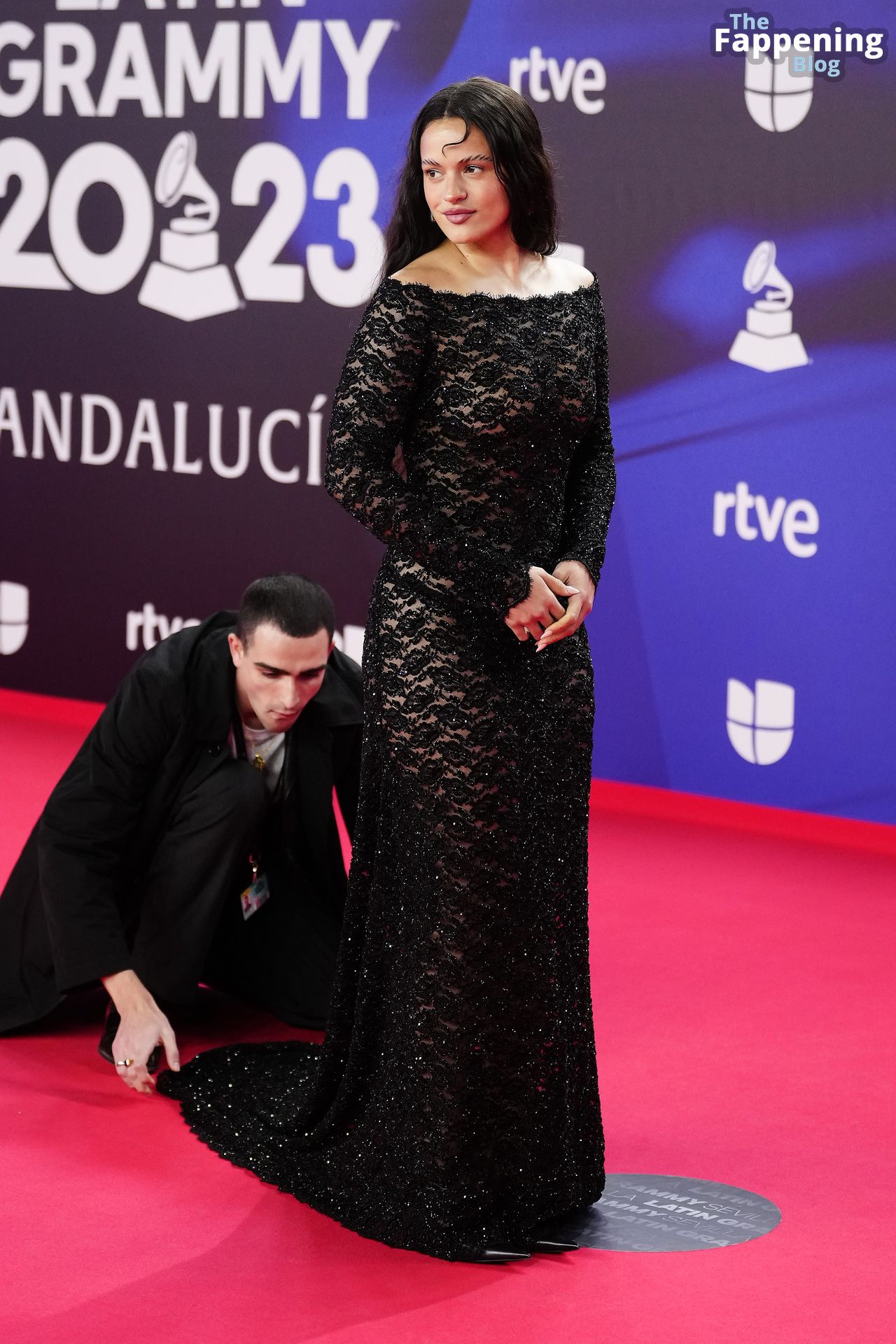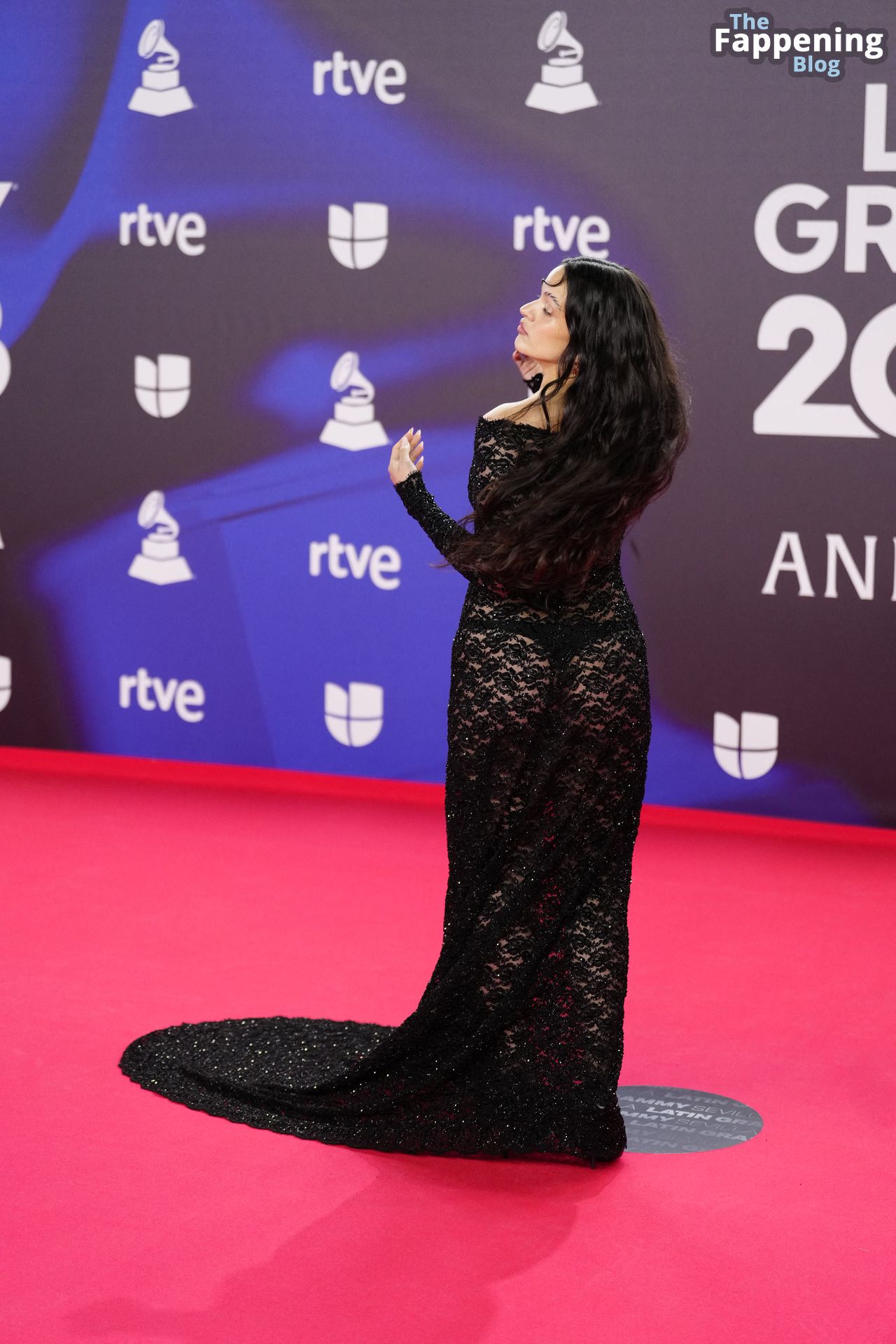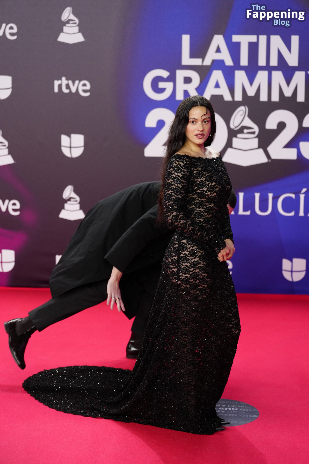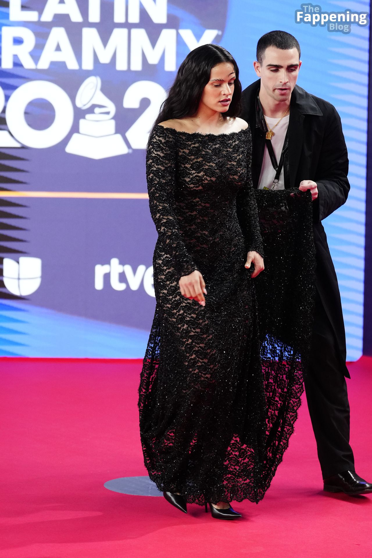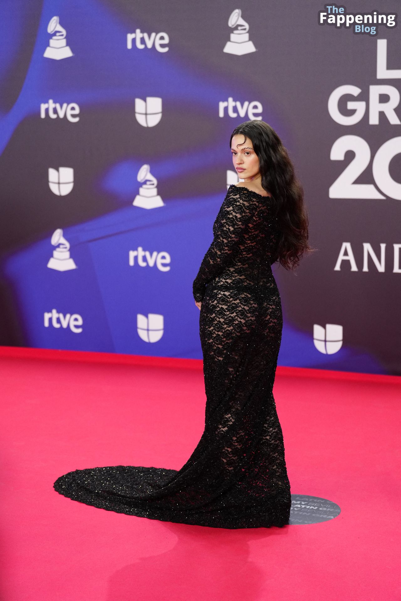 Preparati a rimanere sbalordito dallo stile killer di Rosalia ai Latin GRAMMY Awards a Siviglia. Indossa un vestito nero trasparente che mette in mostra un sexy perizoma nero e un sedere assolutamente da urlo. Il photocall all’ingresso dell’evento era pieno di celebrità che facevano sentire la loro presenza.