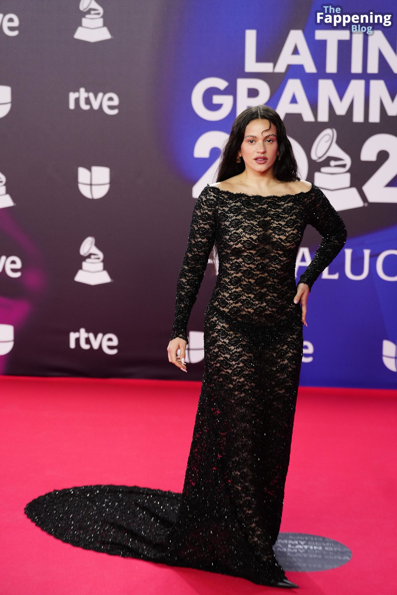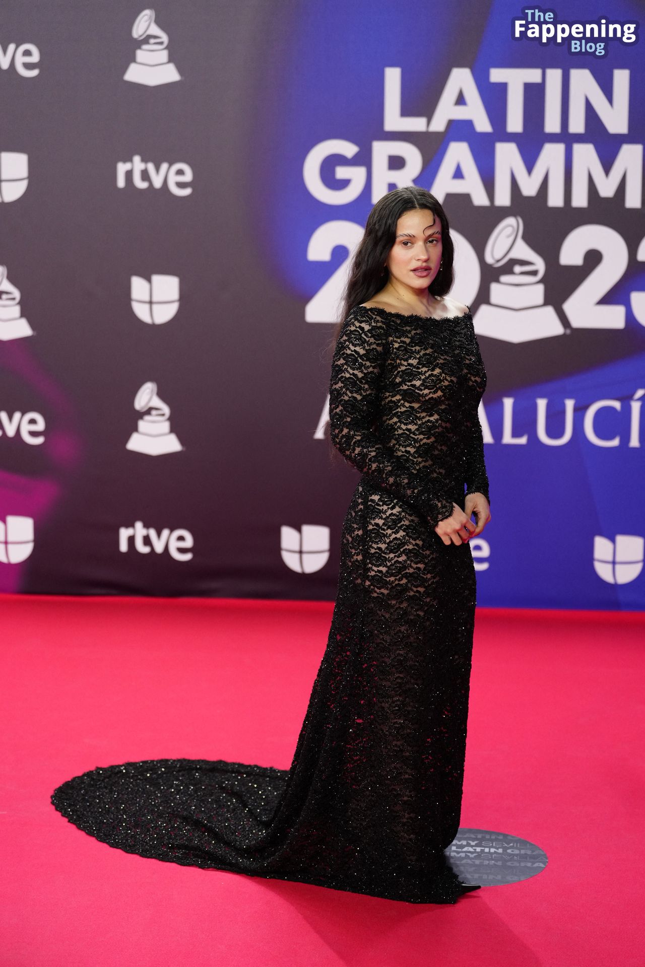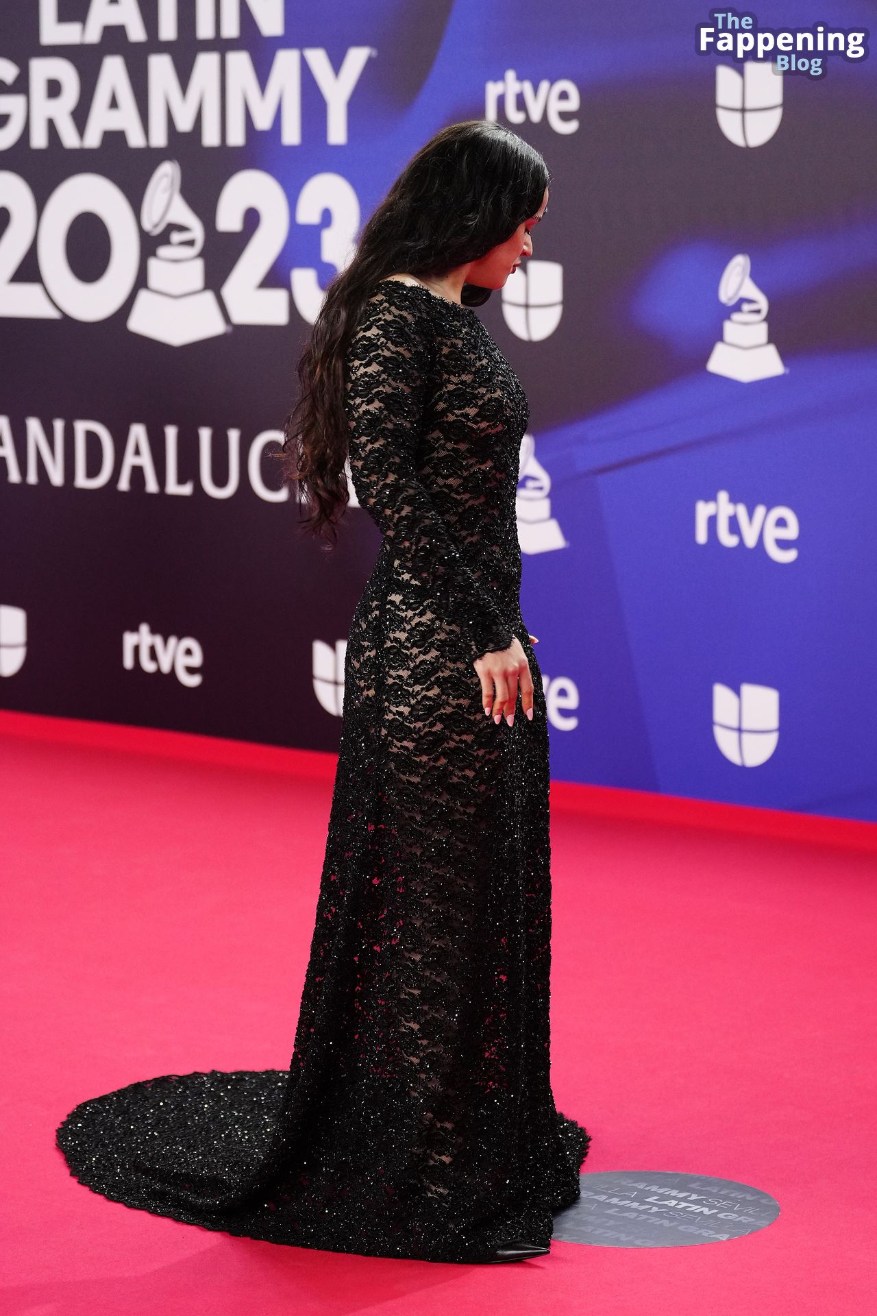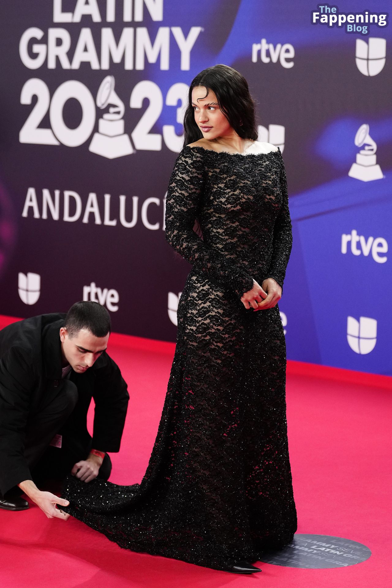 Preparati a rimanere sbalordito dallo stile killer di Rosalia ai Latin GRAMMY Awards a Siviglia. Indossa un vestito nero trasparente che mette in mostra un sexy perizoma nero e un sedere assolutamente da urlo. Il photocall all’ingresso dell’evento era pieno di celebrità che facevano sentire la loro presenza.