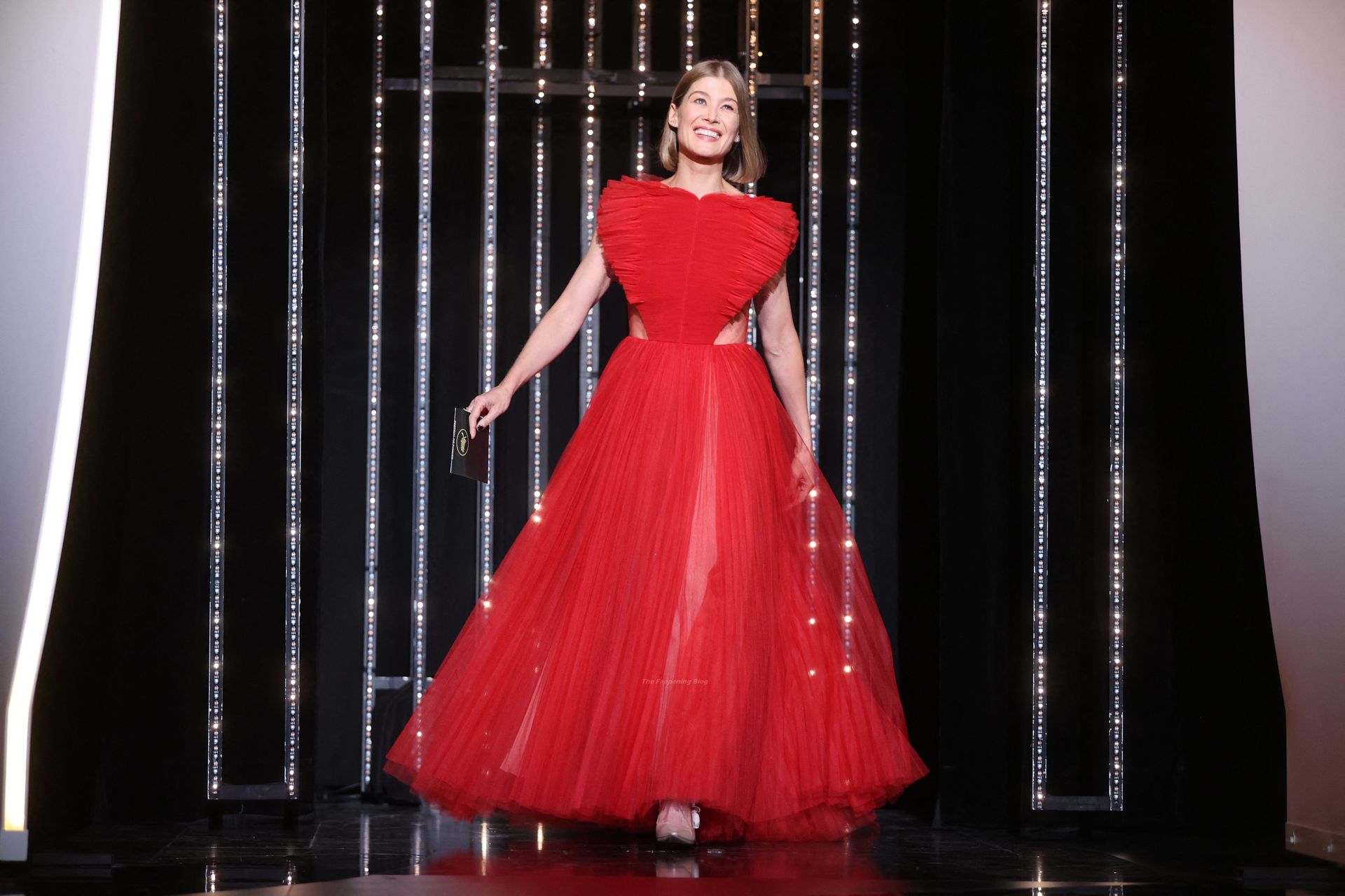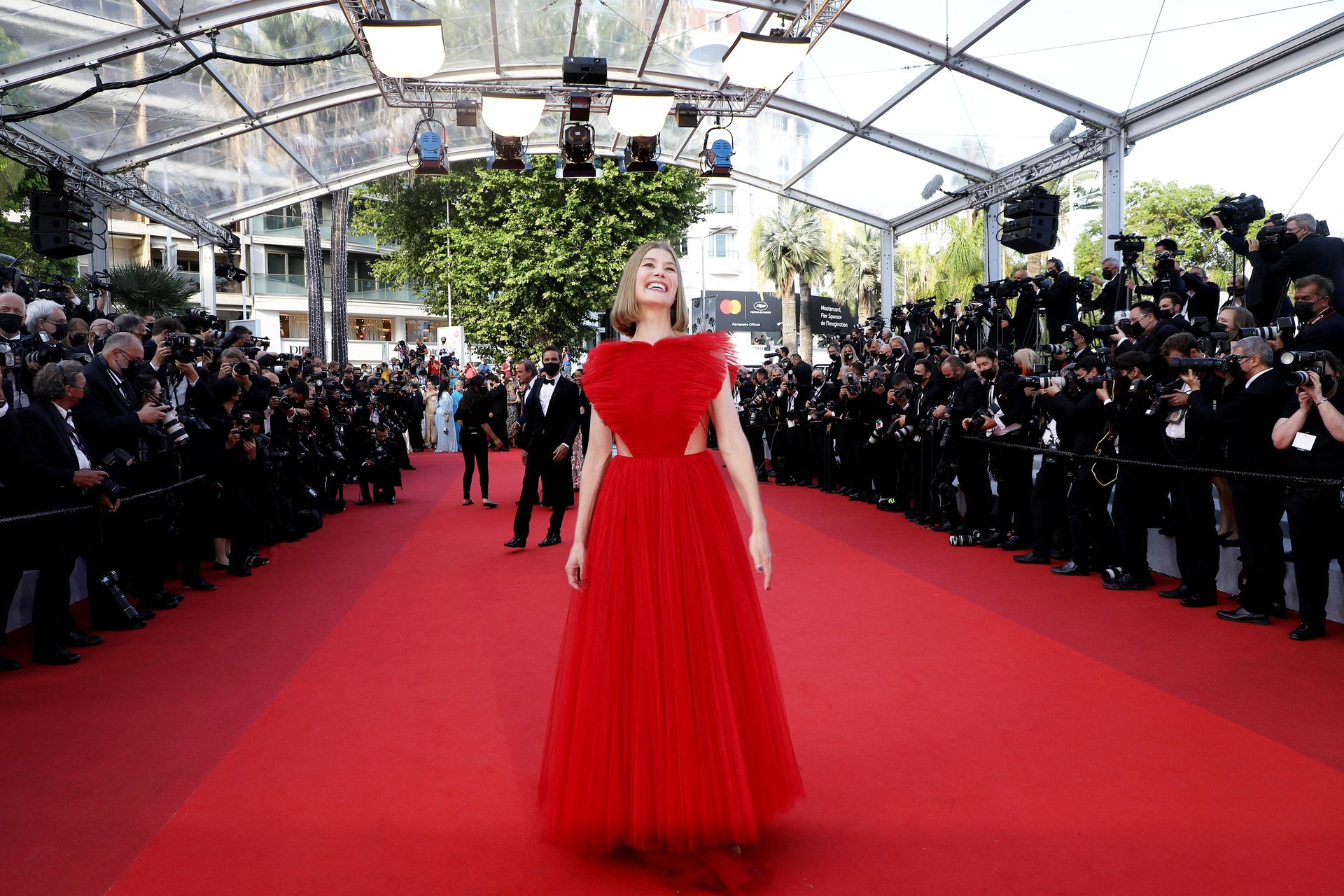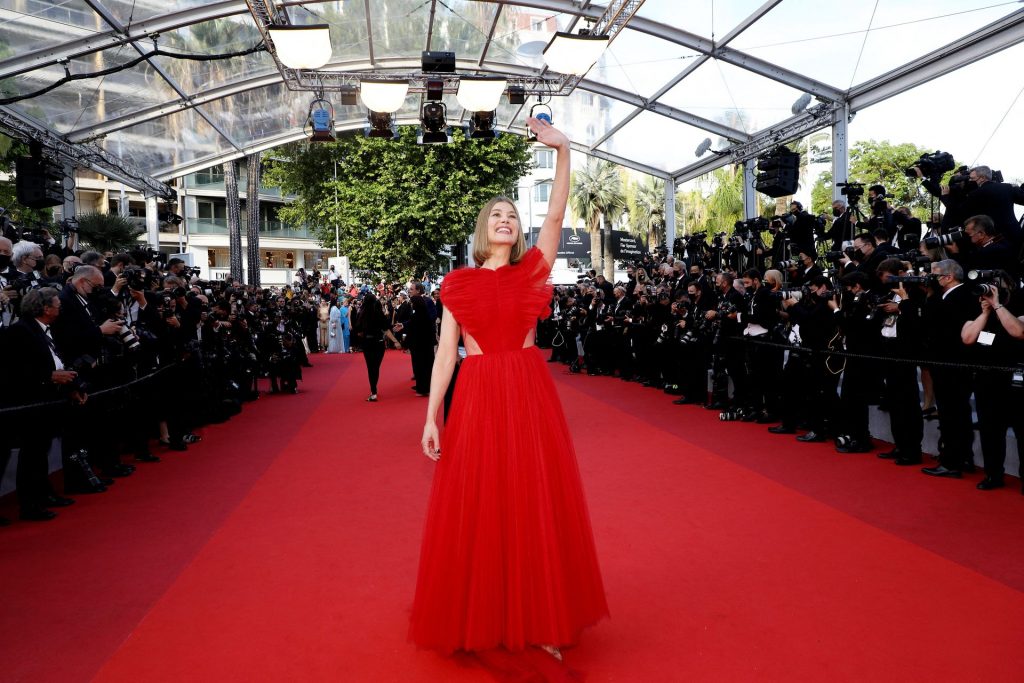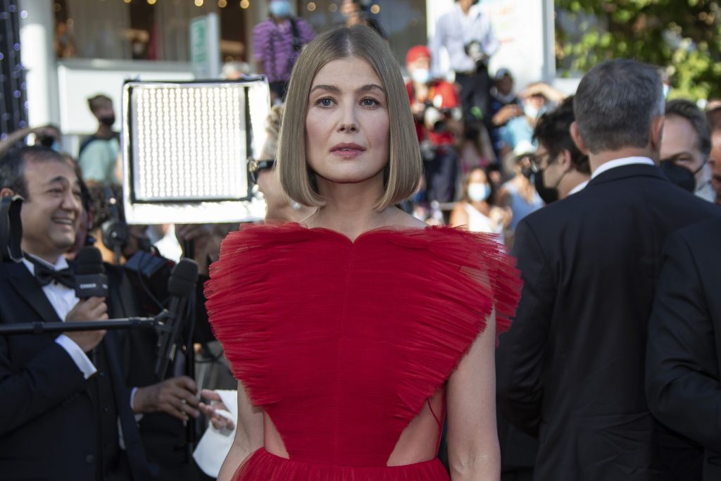 L’attrice Rosamund Pike arriva alla cerimonia di chiusura e alla proiezione del film “OSS 117: Alerte Rouge en Afrique Noire” (OSS 117: From Africa with Love) a Cannes, Francia, 18/07/2021.