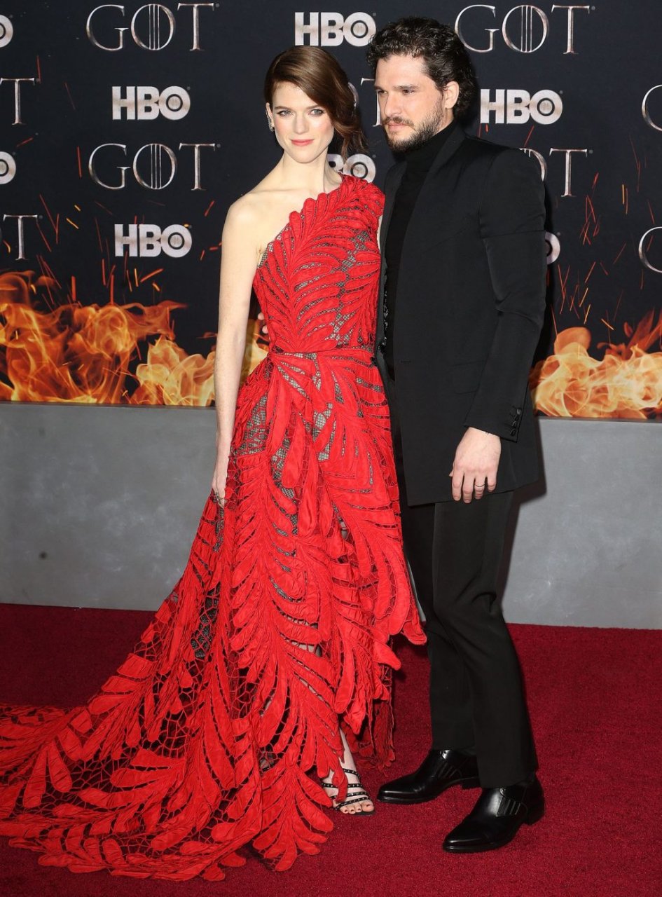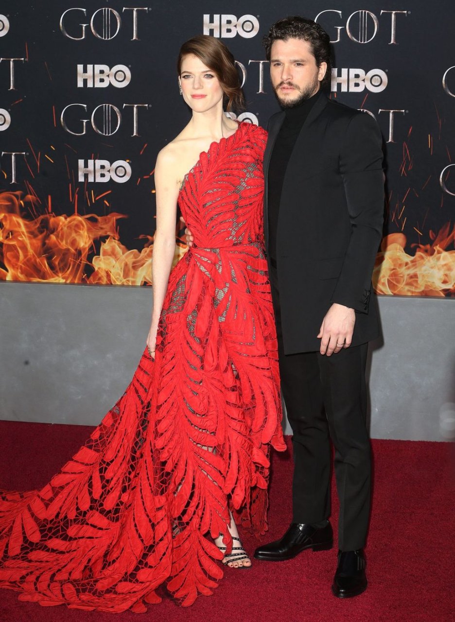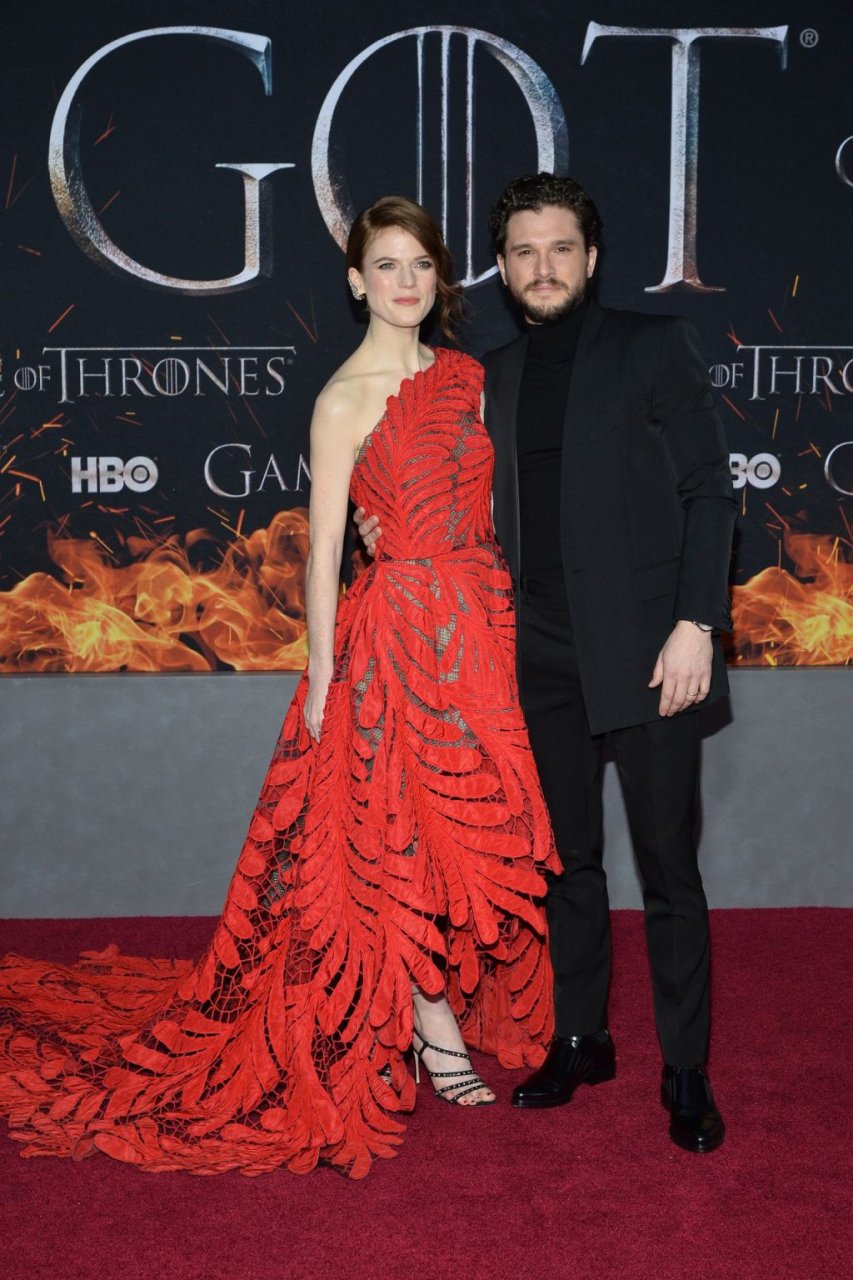 L’attrice scozzese Rose Leslie e l’attore inglese Kit Harington, marito e moglie, partecipano alla prima della stagione 8 di “Game Of Thrones” a New York City. 04/03/2019.