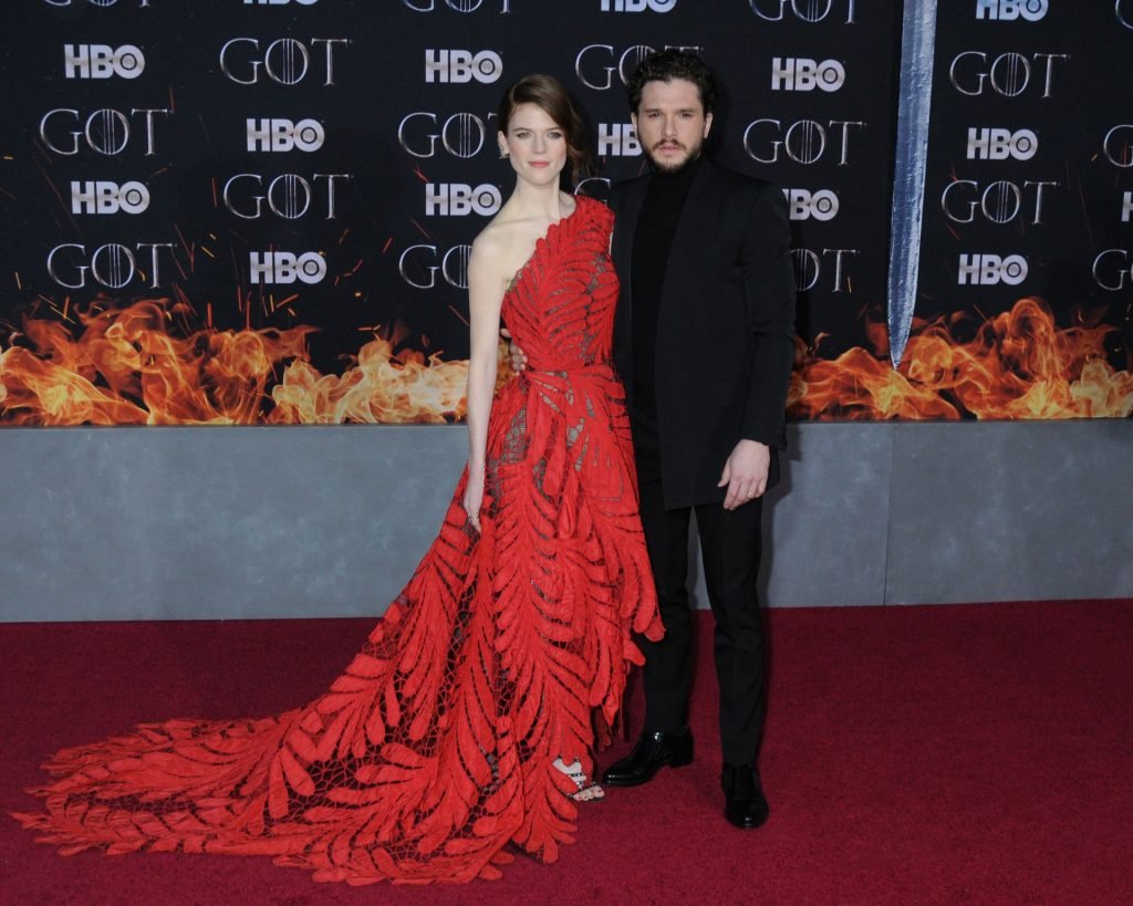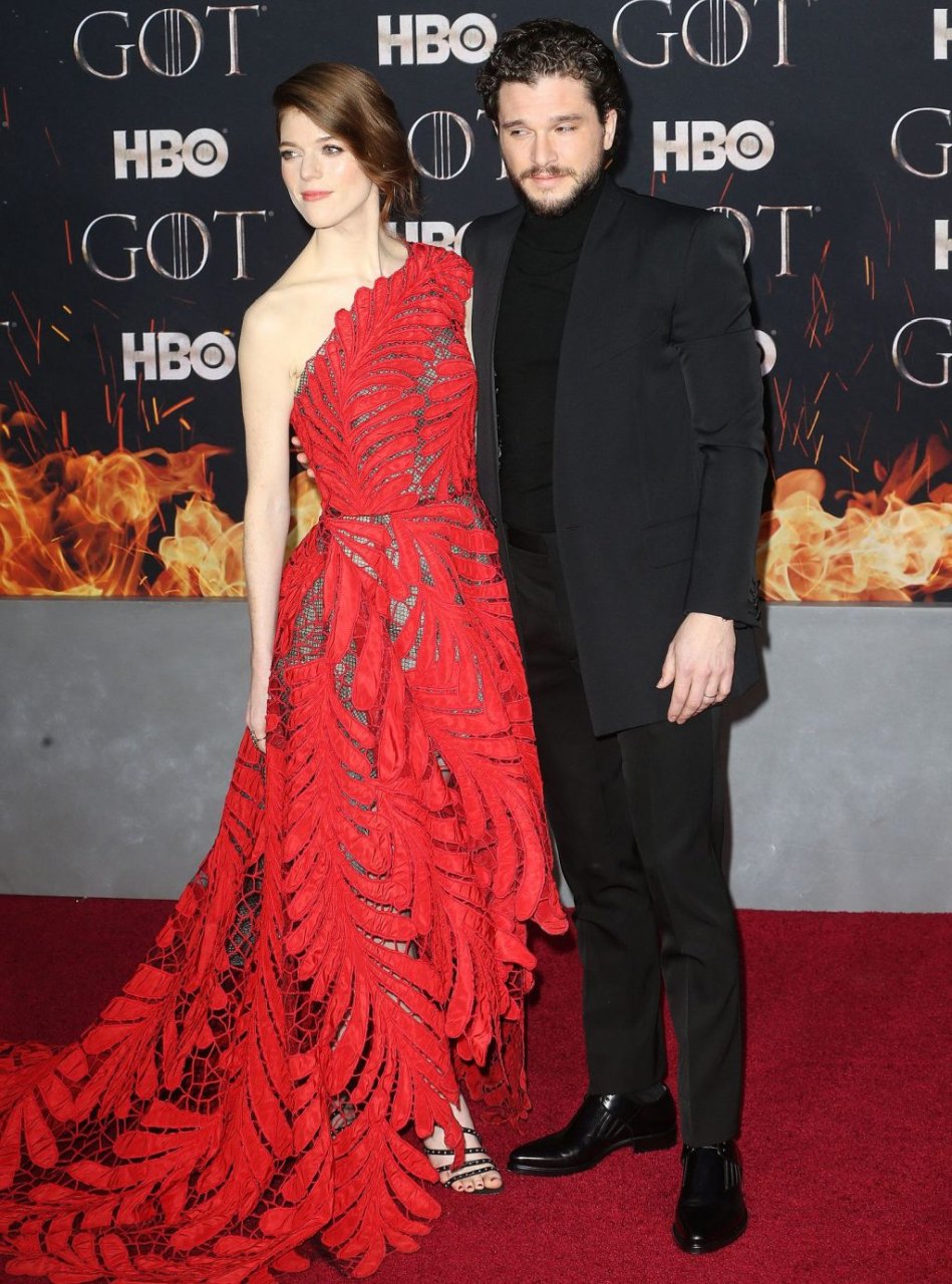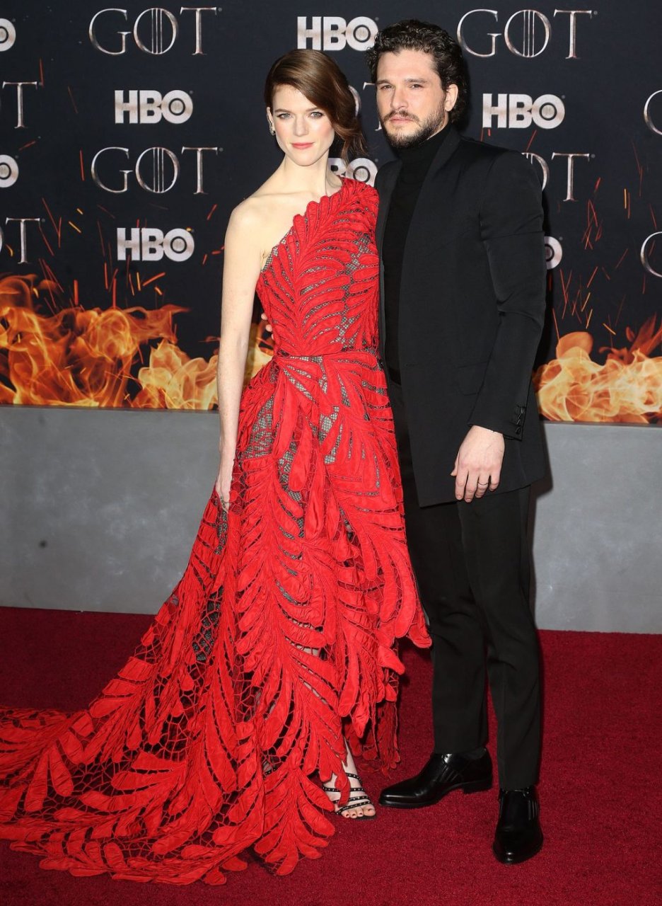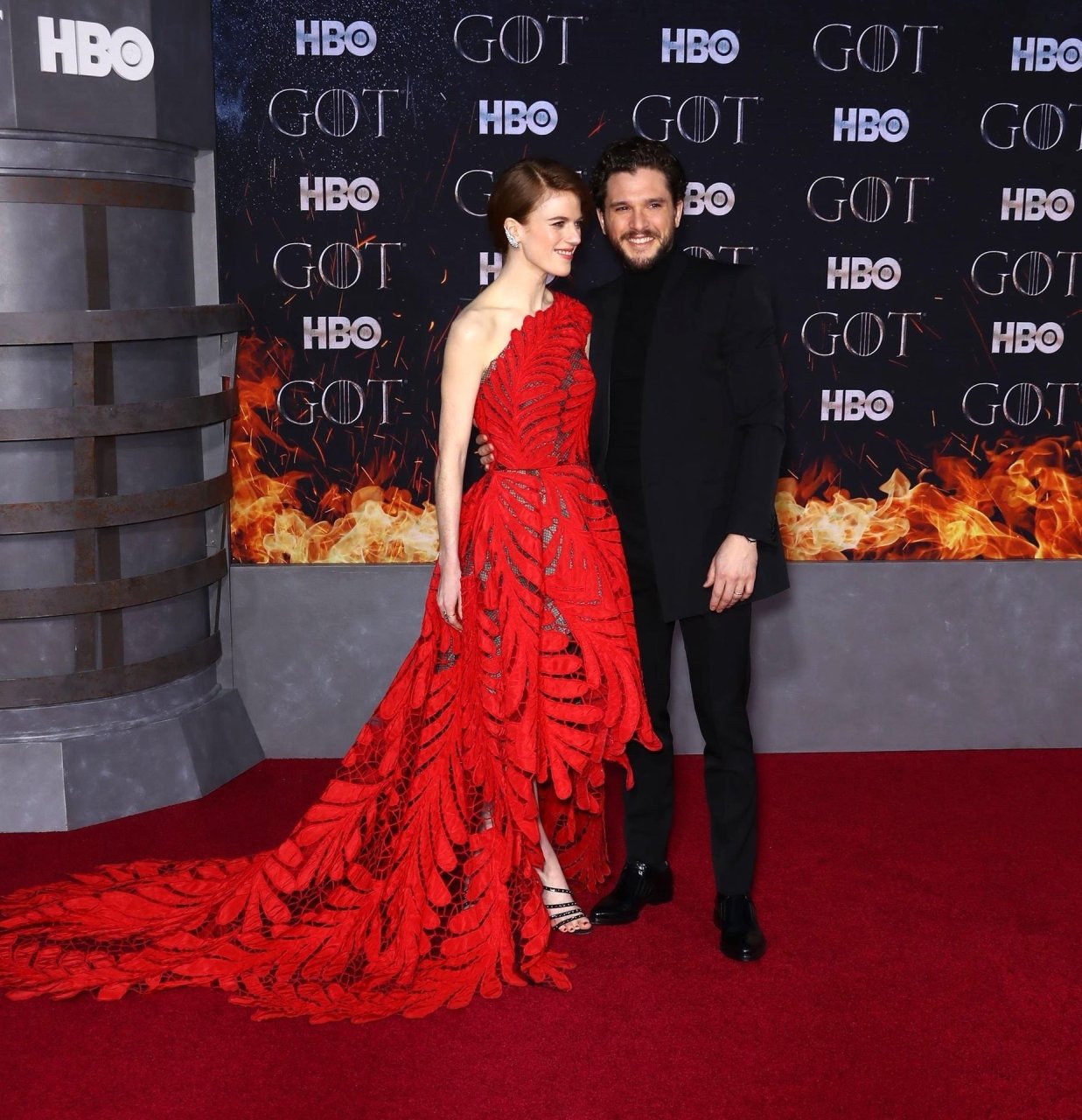 L’attrice scozzese Rose Leslie e l’attore inglese Kit Harington, marito e moglie, partecipano alla prima della stagione 8 di “Game Of Thrones” a New York City. 04/03/2019.