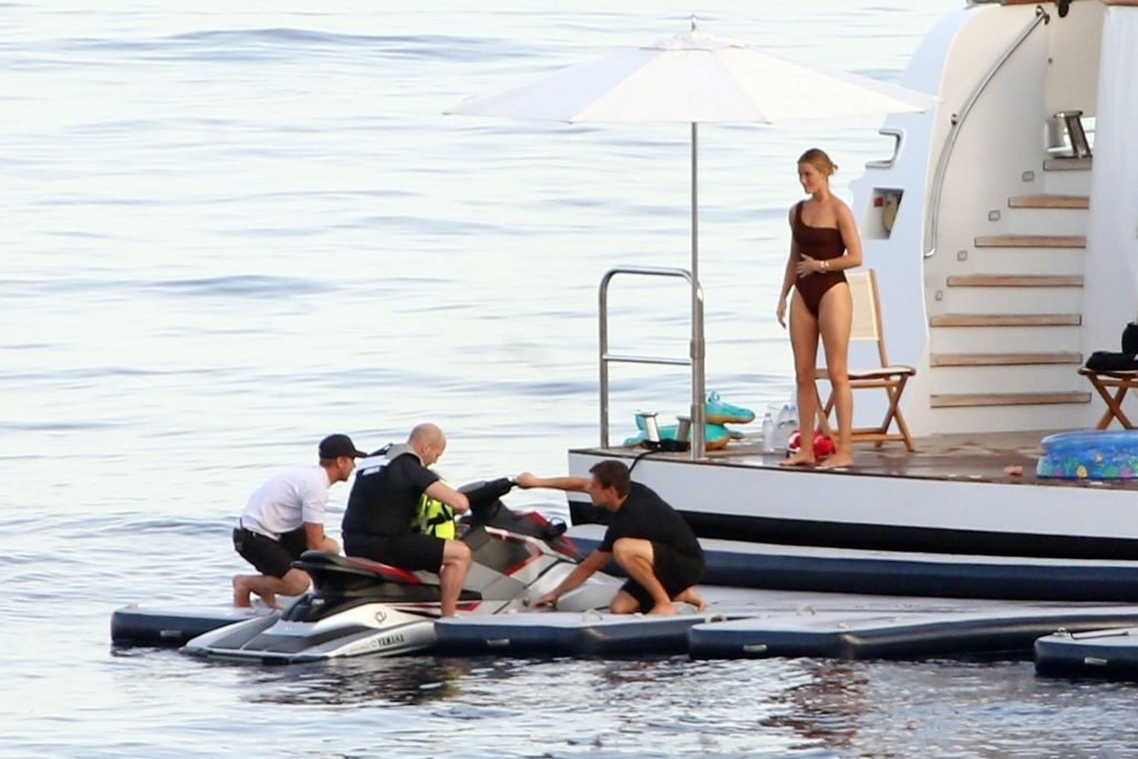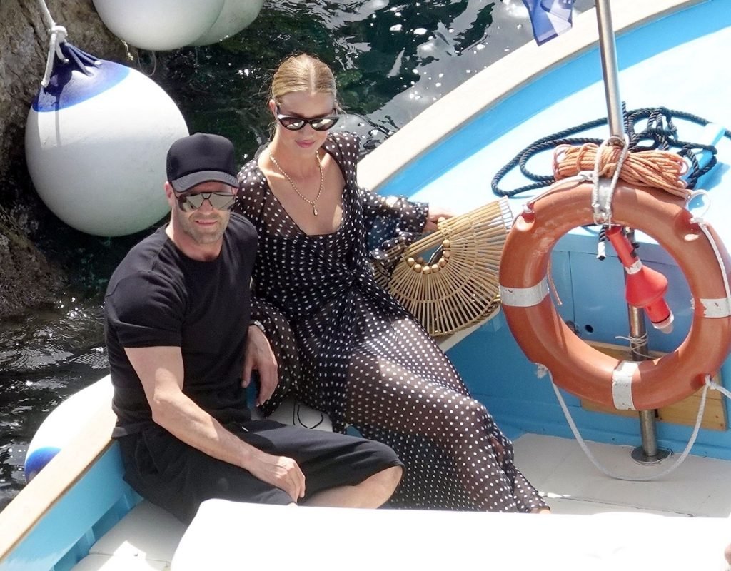 L’attrice e modella britannica Rosie Huntington-Whiteley e il marito attore Jason Statham sono stati fotografati mentre si godevano la loro vacanza a Capri, 12/06/2019. La felice coppia è stata immortalata a bordo del loro mega yacht mentre Action Man Jason portava suo figlio a fare un giro sul jetski mentre la orgogliosa mamma Rosie osservava scattando alcune foto dalla barca.