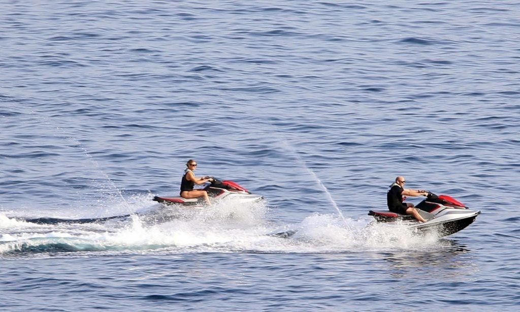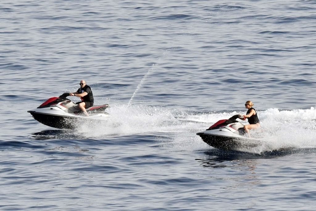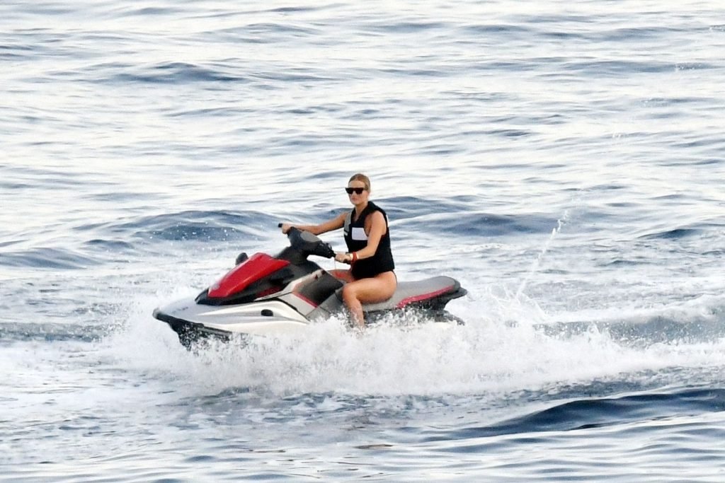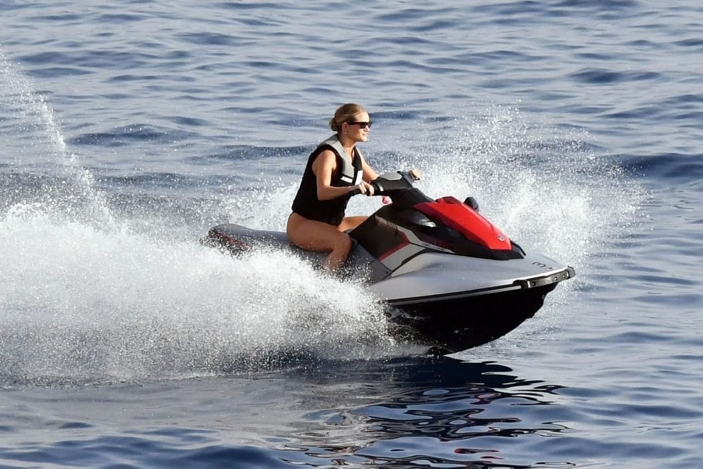 Successivamente mamma e papà sono usciti insieme per un giro sulle onde divertendosi a cavalcare i jet ski lungo la splendida costa di Capri. La famiglia poi ha lasciato il loro yacht di lusso ed è andata a terra per pranzare insieme, dove Rosie si è cambiata indossando una tuta in chiffon a pois!